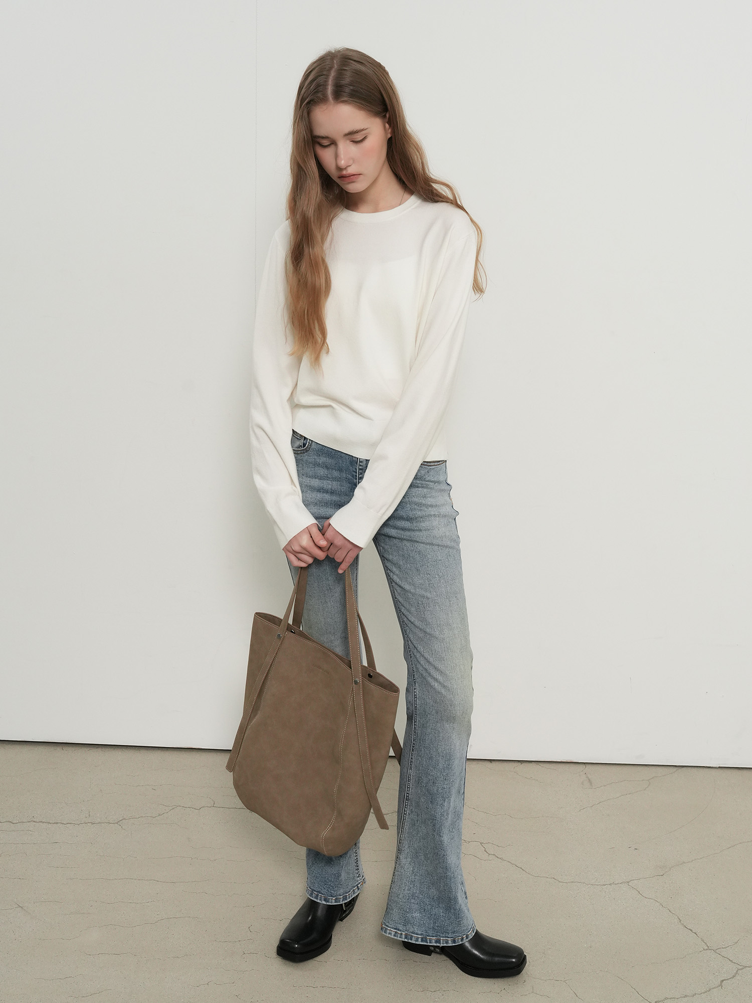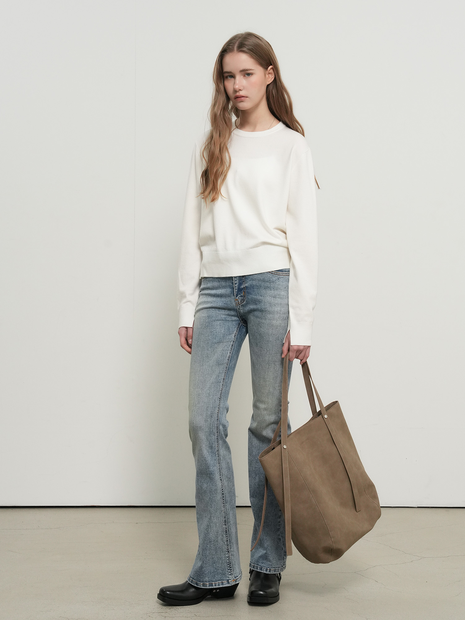 bootcut washing denim pants
