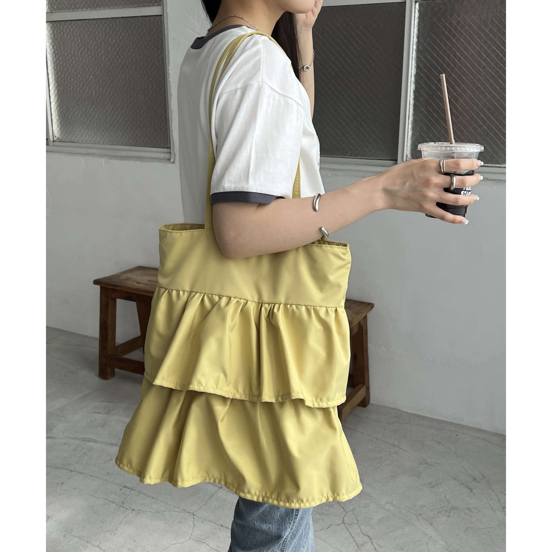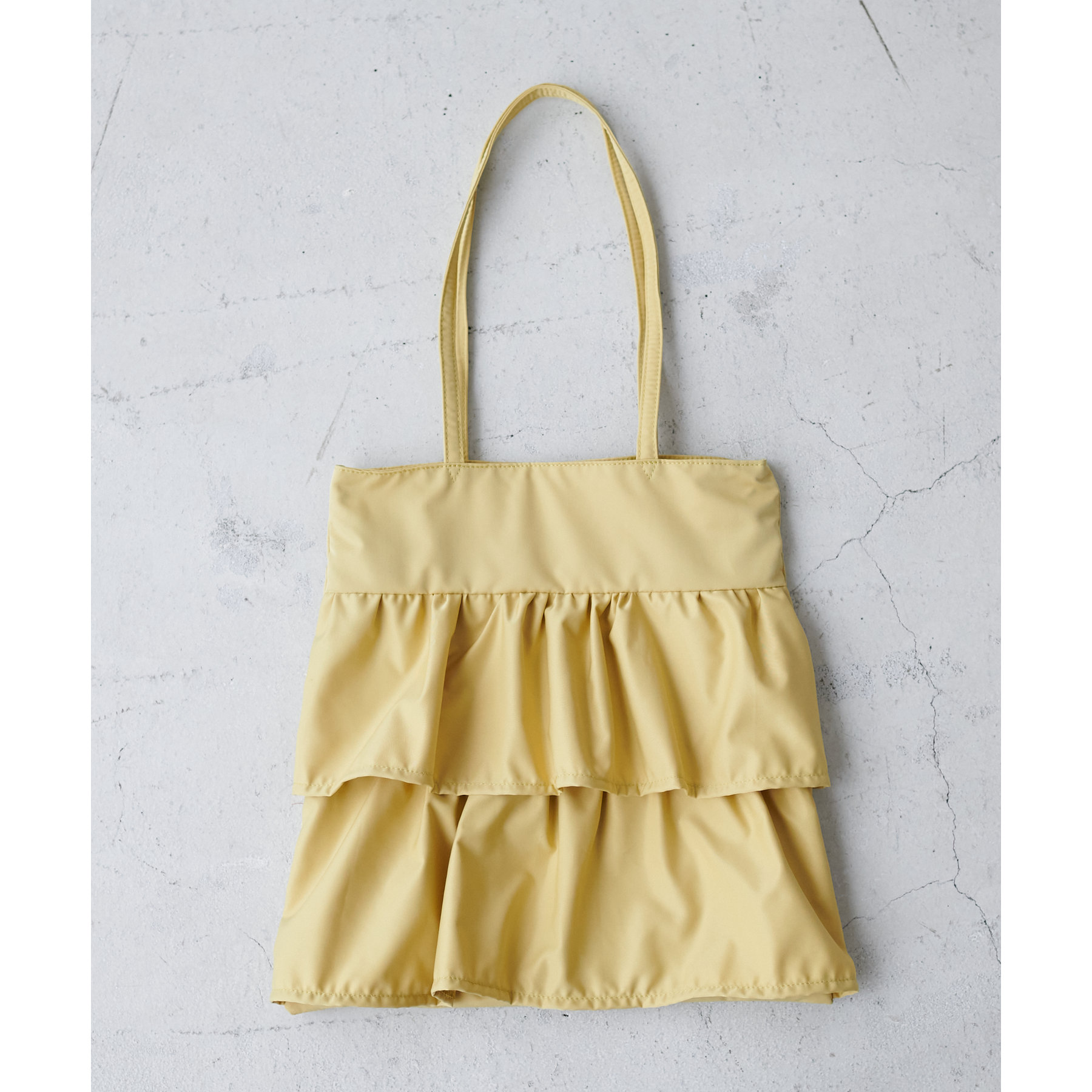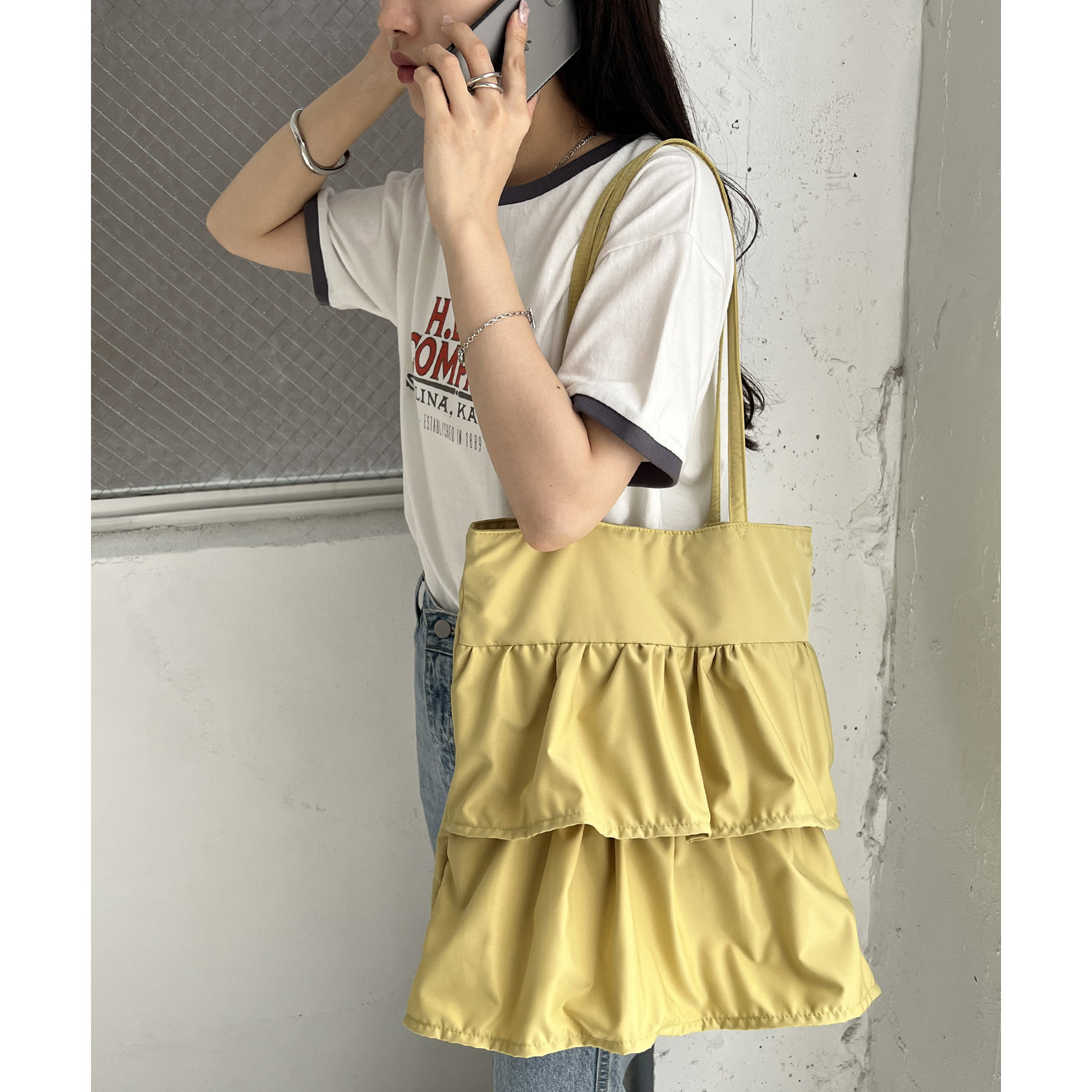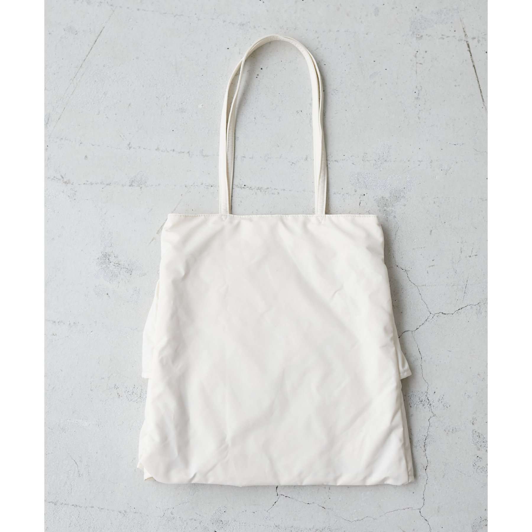 大ぶりなフリルが、華やかさをプラスするトートバッグ。A4サイズもしっかりと入る大きさで、デイリーにお使い頂きやすいサイズ感です。内側には携帯や鍵などを収納できるポケットも備え、収納力も抜群◎カジュアルなスタイリングに持つだけで、女性らしい印象に仕上げてくれるアイテムです。メインバッグとしてはもちろん、サブバッグとしても活躍間違いなしです♪