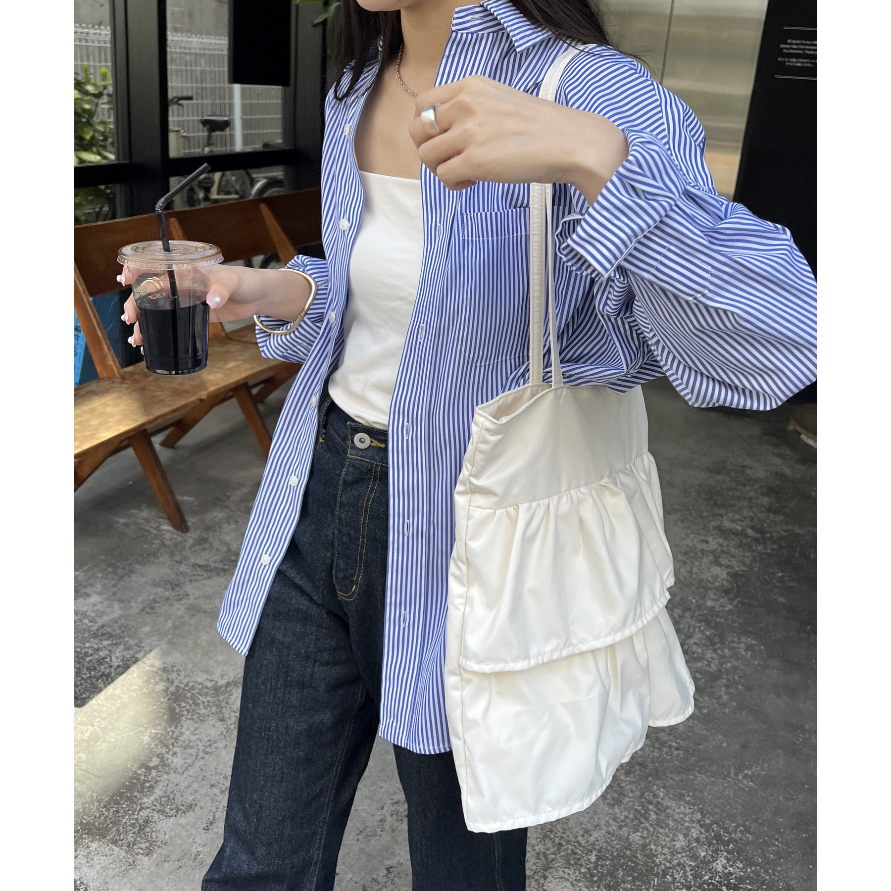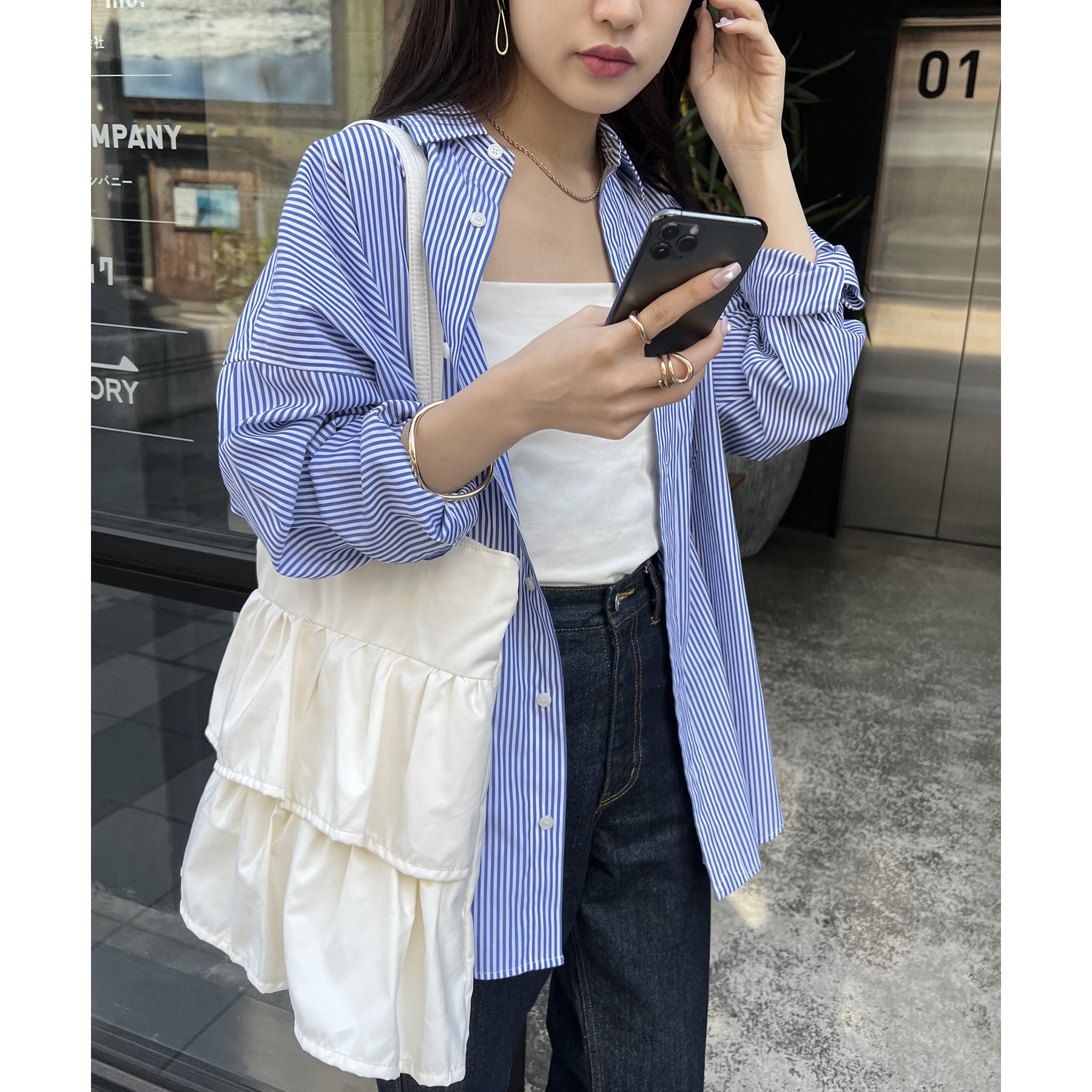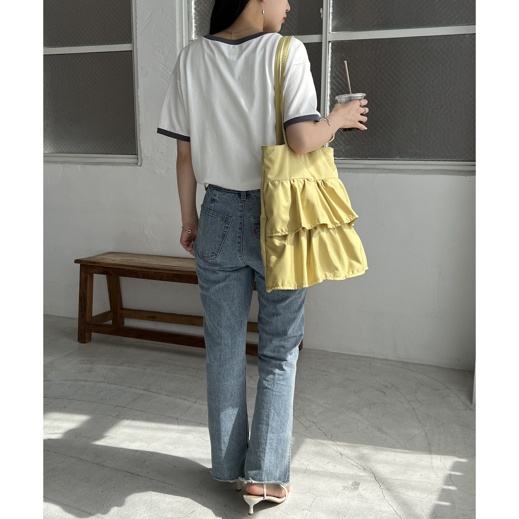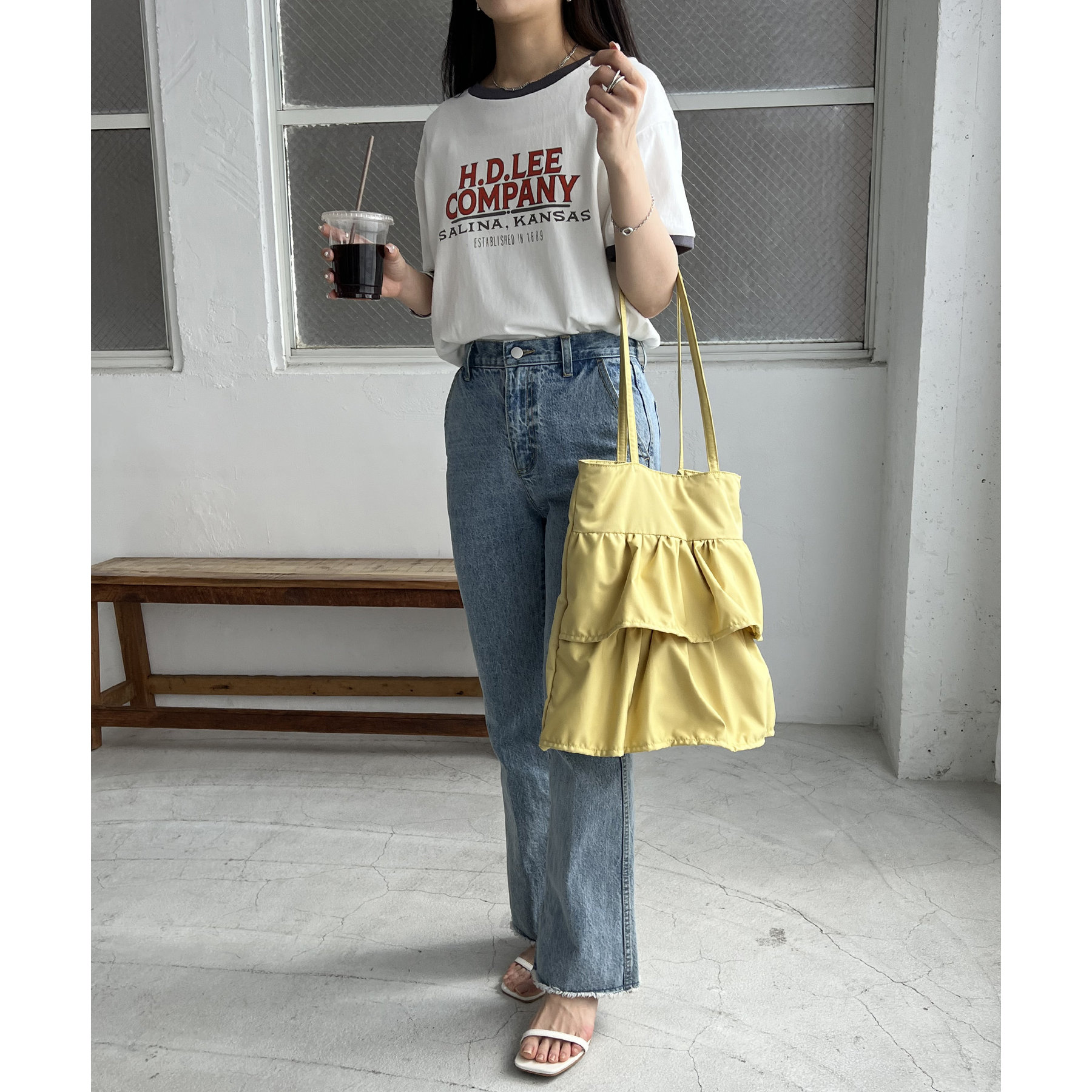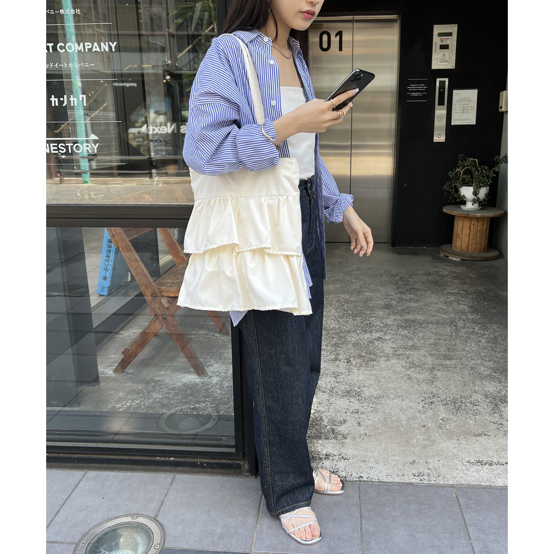 大ぶりなフリルが、華やかさをプラスするトートバッグ。A4サイズもしっかりと入る大きさで、デイリーにお使い頂きやすいサイズ感です。内側には携帯や鍵などを収納できるポケットも備え、収納力も抜群◎カジュアルなスタイリングに持つだけで、女性らしい印象に仕上げてくれるアイテムです。メインバッグとしてはもちろん、サブバッグとしても活躍間違いなしです♪