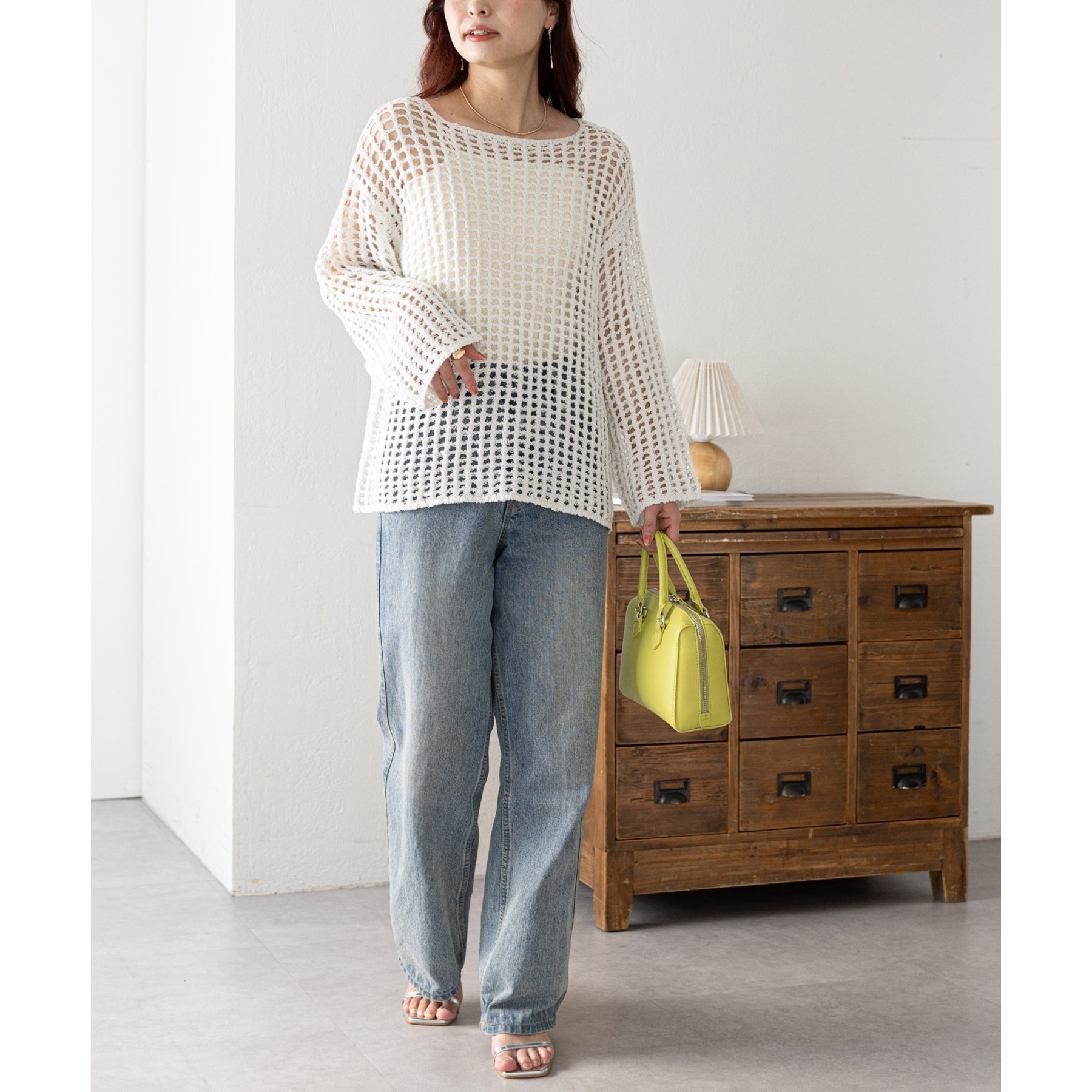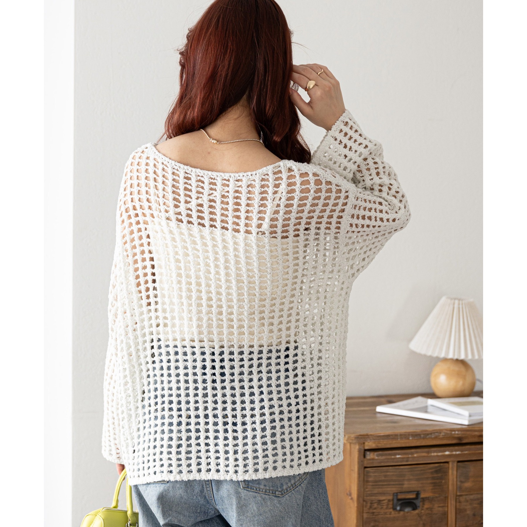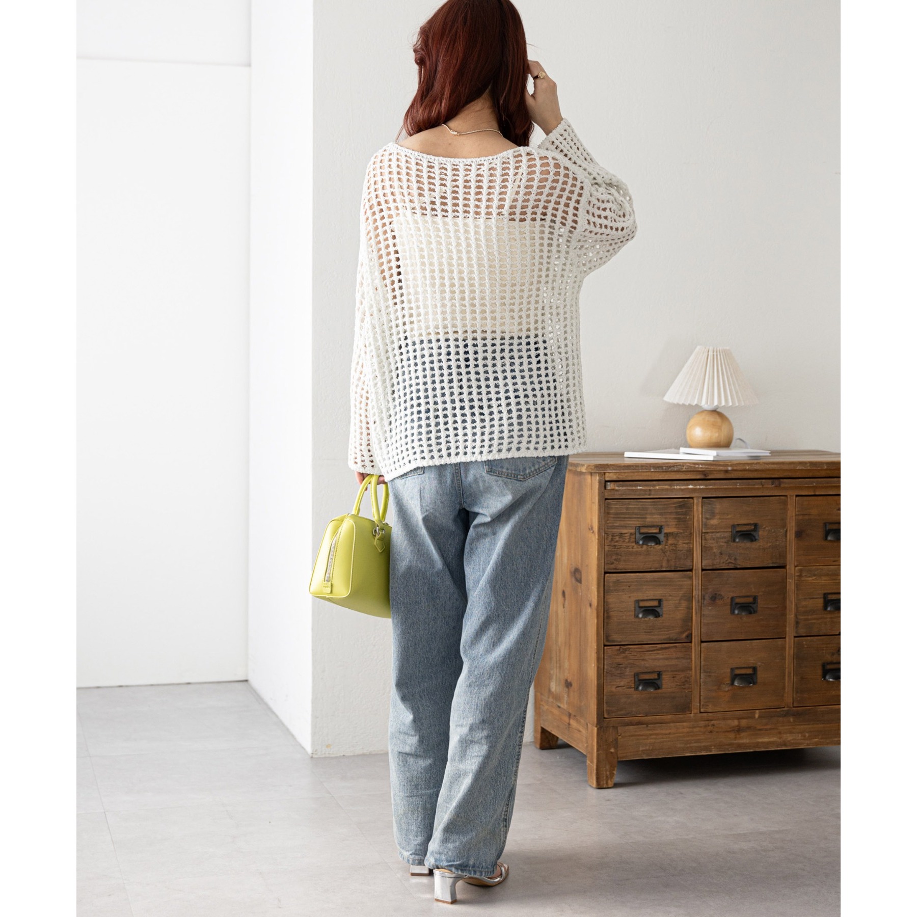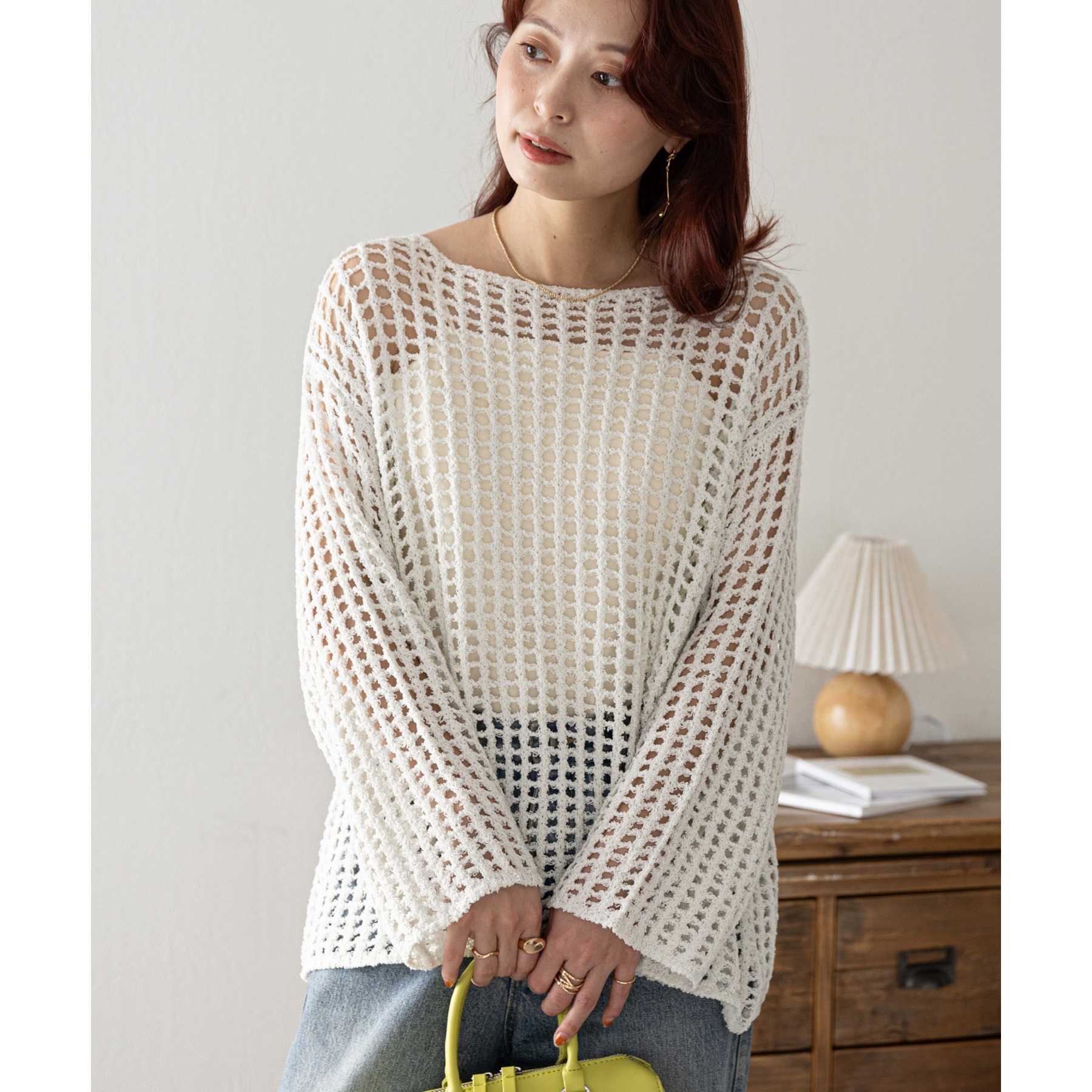 程よい透け感でヘルシーな肌見せが叶うラメスパンコールスカシプルオーバー。多色のスパンコールがさりげなく輝きコーデのアクセントになります♪ゆるっとしたサイズ感がトレンド感のあるアイテムです◎様々なレイヤードコーデを楽しめ、インナー次第でロングシーズン着用可能。カラーはベーシックなオフホワイトと春に映えるグリーン・オレンジの3色ご用意いたしました。