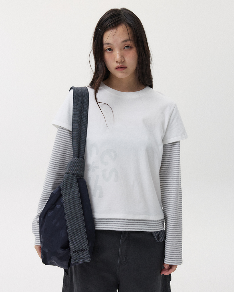 CURVED STRIPE HOBO BAG, NAVY