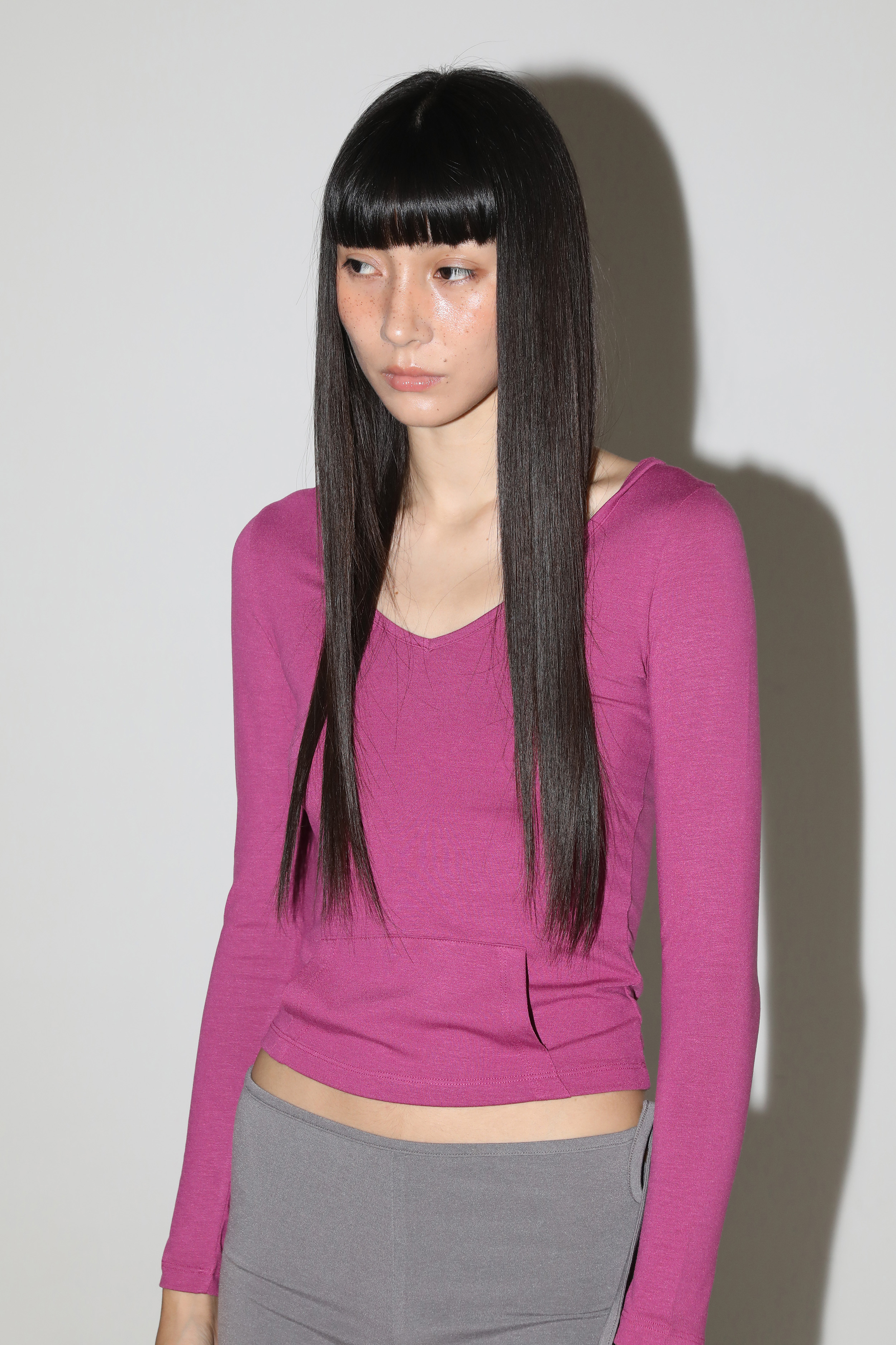 ビビッドカラーポイントのスリムフィットフードトップ。 33cm