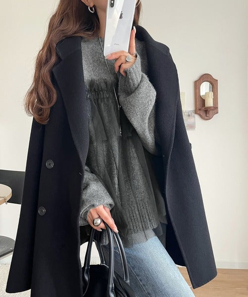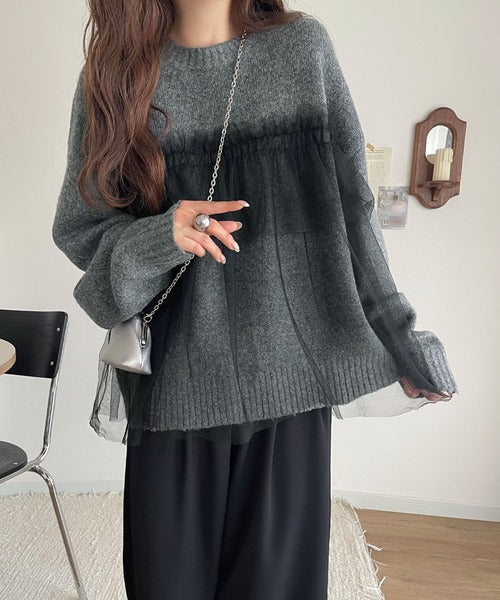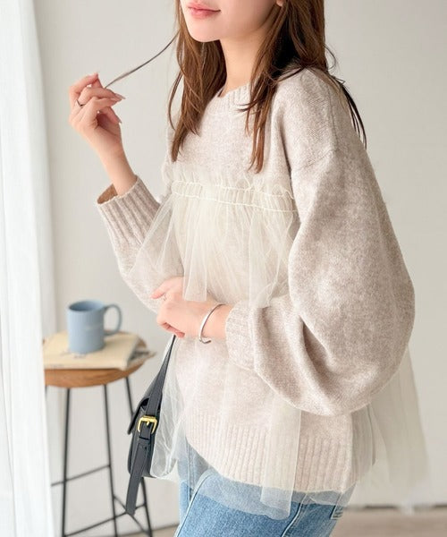 大人の女性にぴったり!チュールドッキングボリュームスリーブニット(長袖) ce1260441