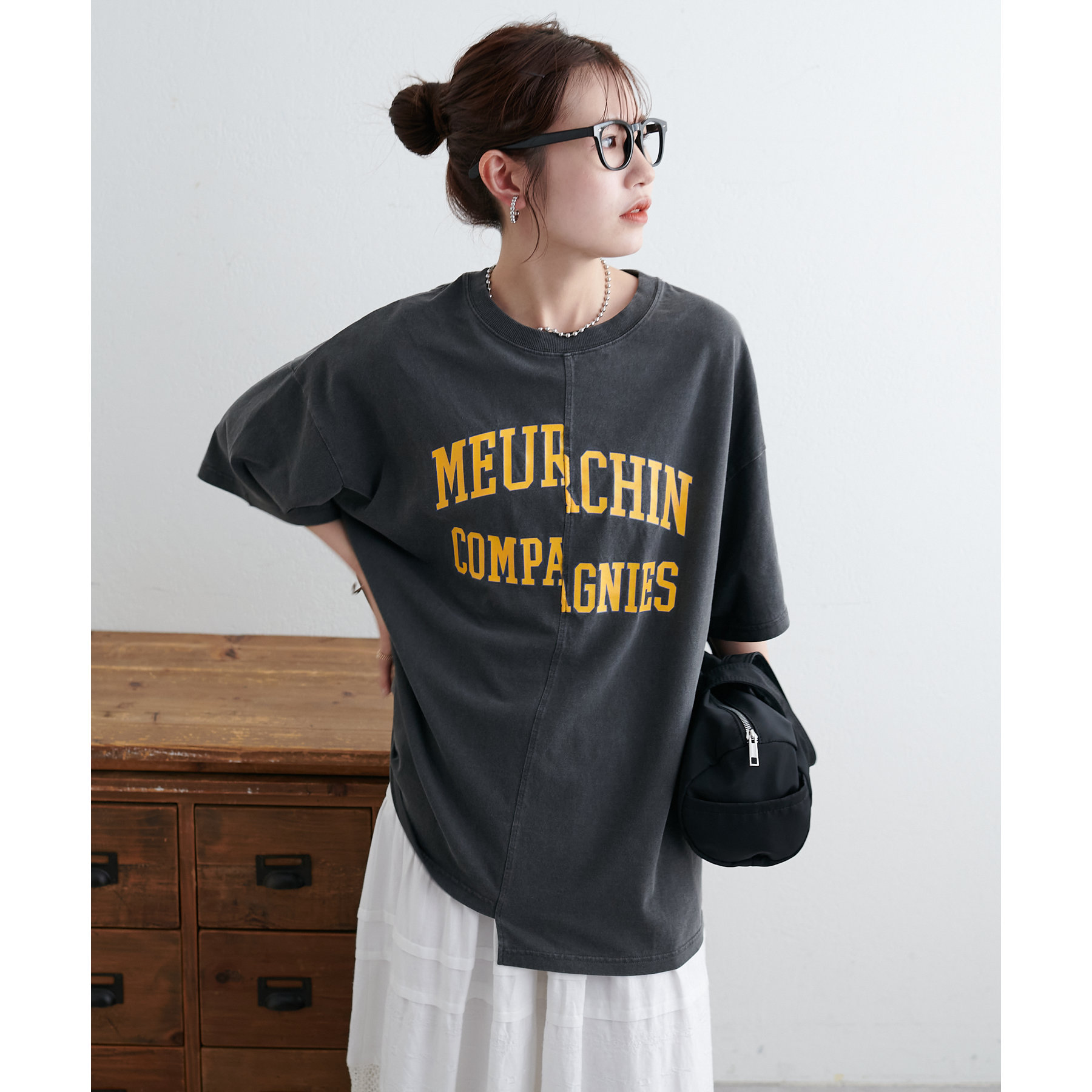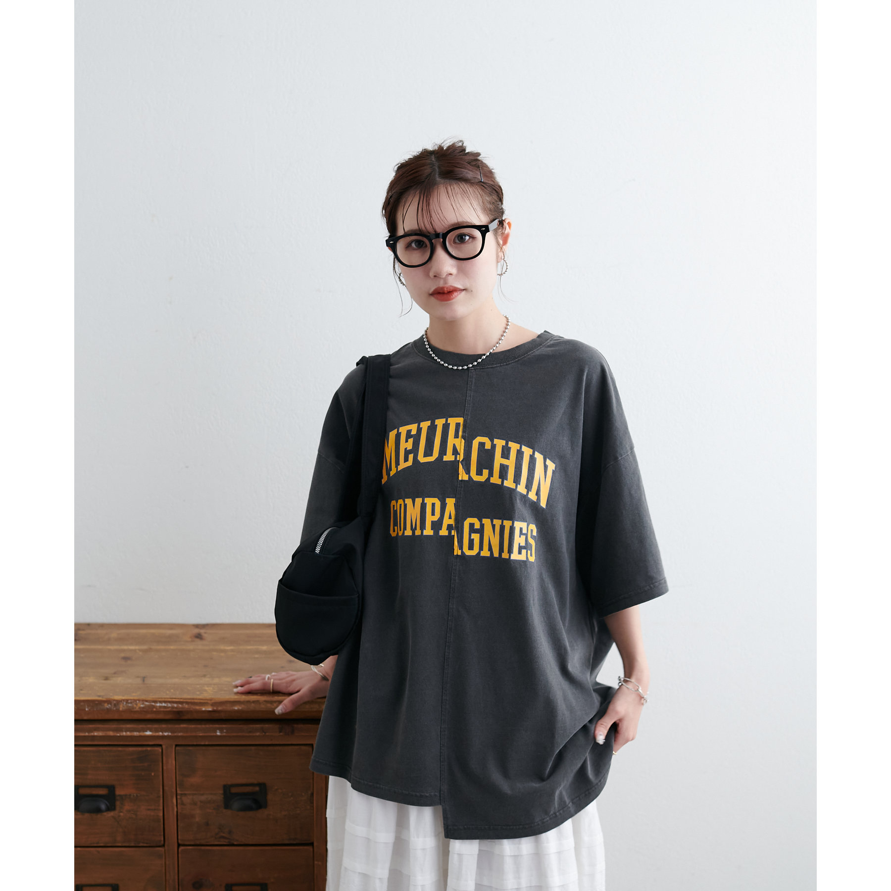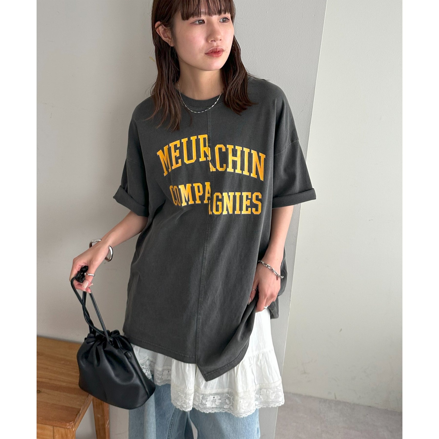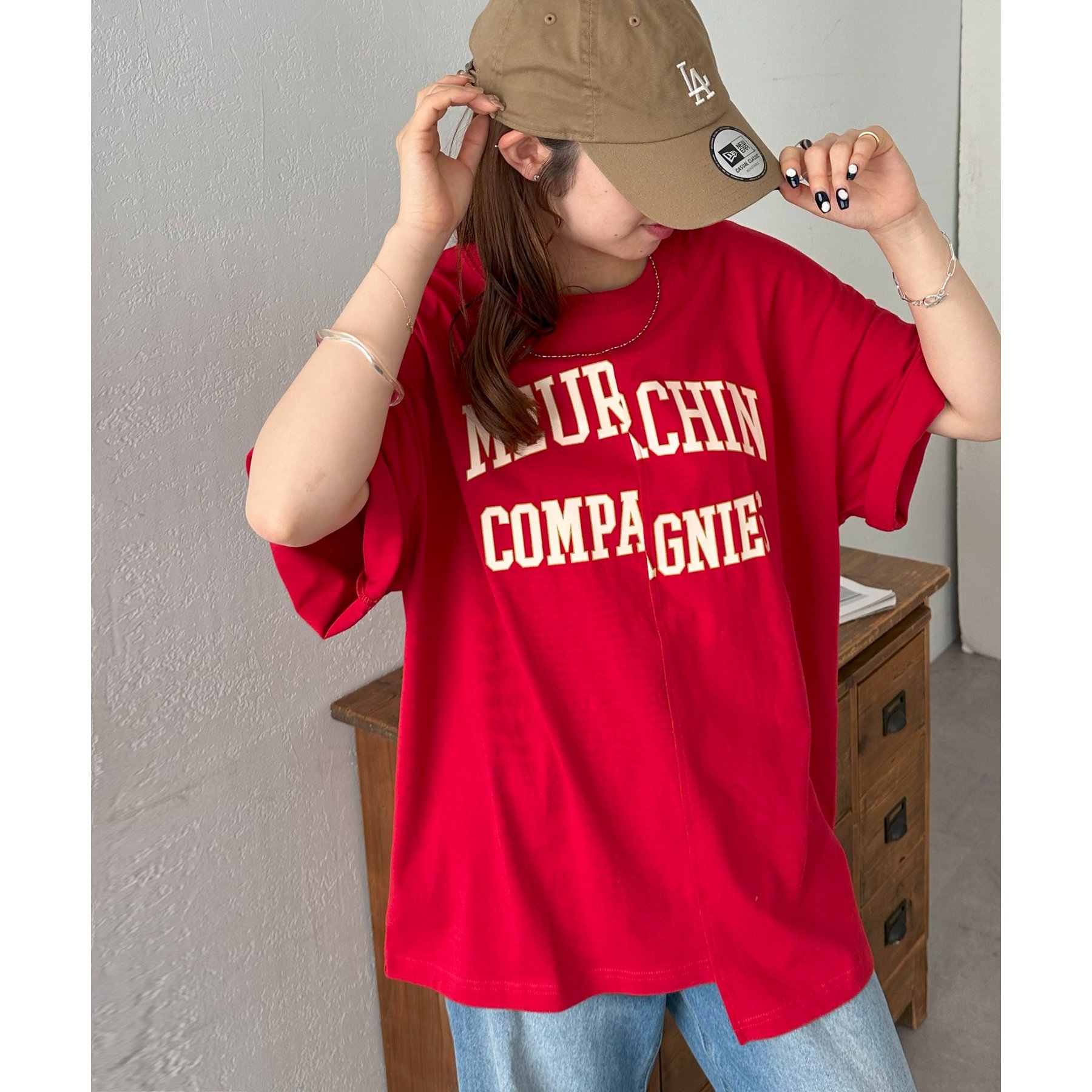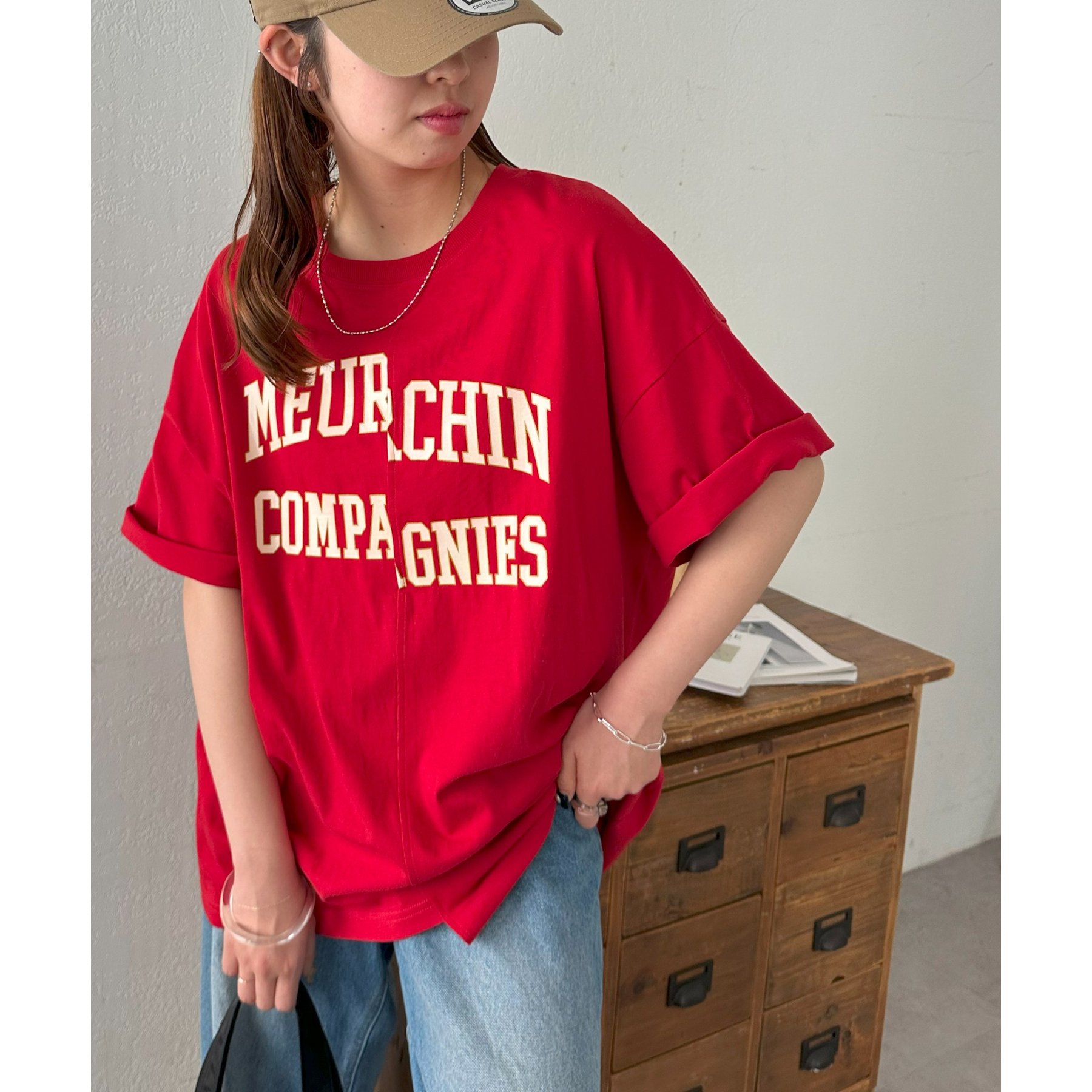 157cmスタッフ:袖をロールアップするとよりこなれ感のある着こなしに!遊び心とデザイン性のある主役級Tシャツです!