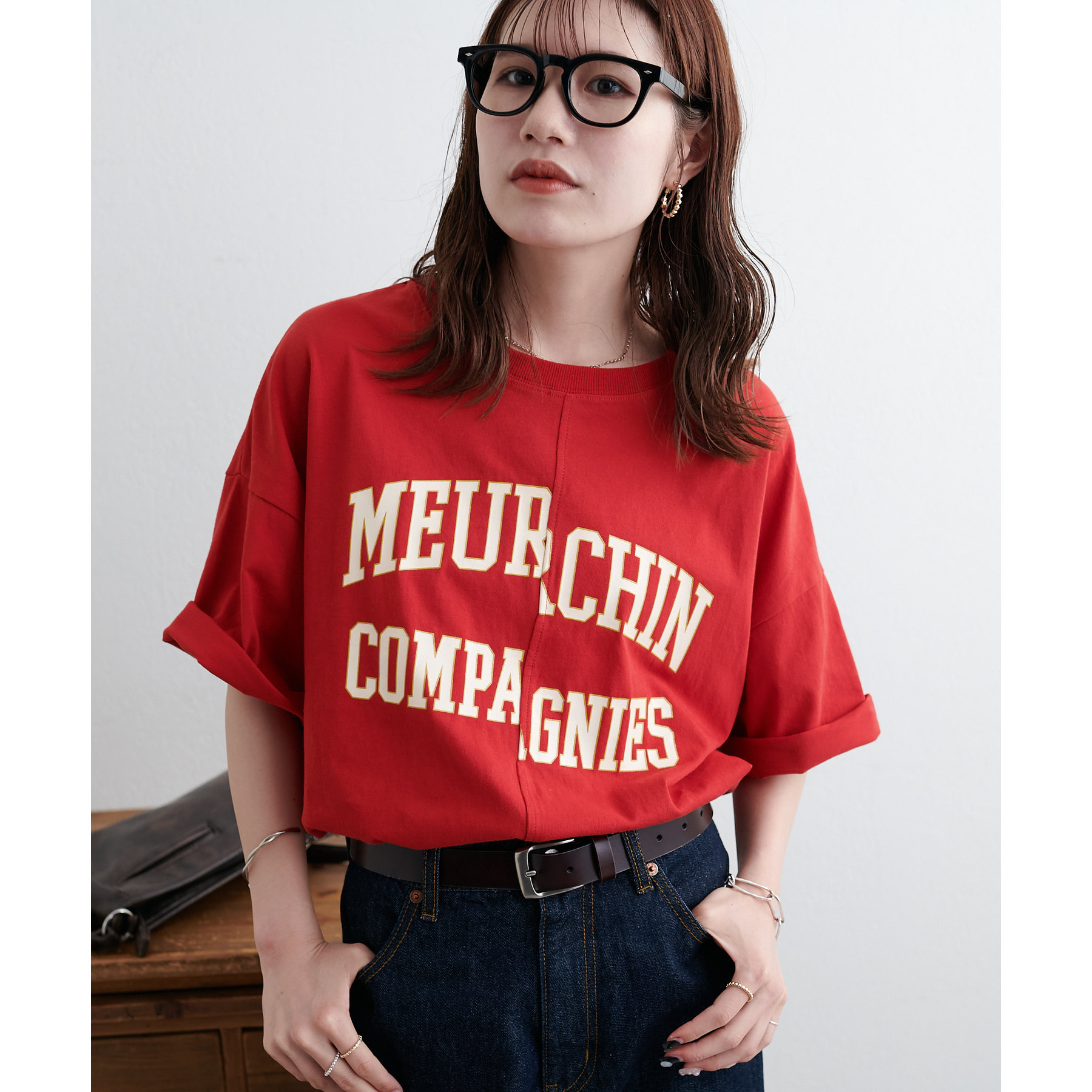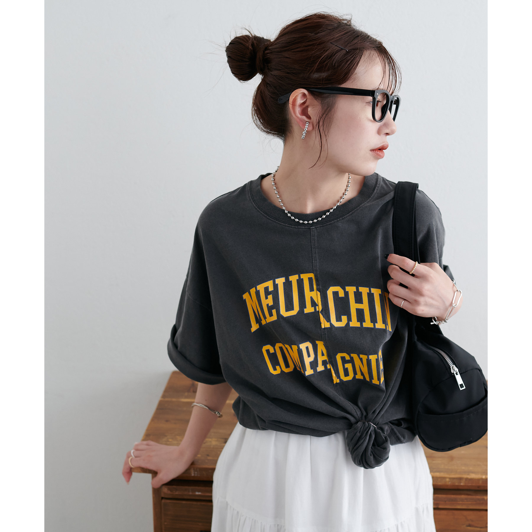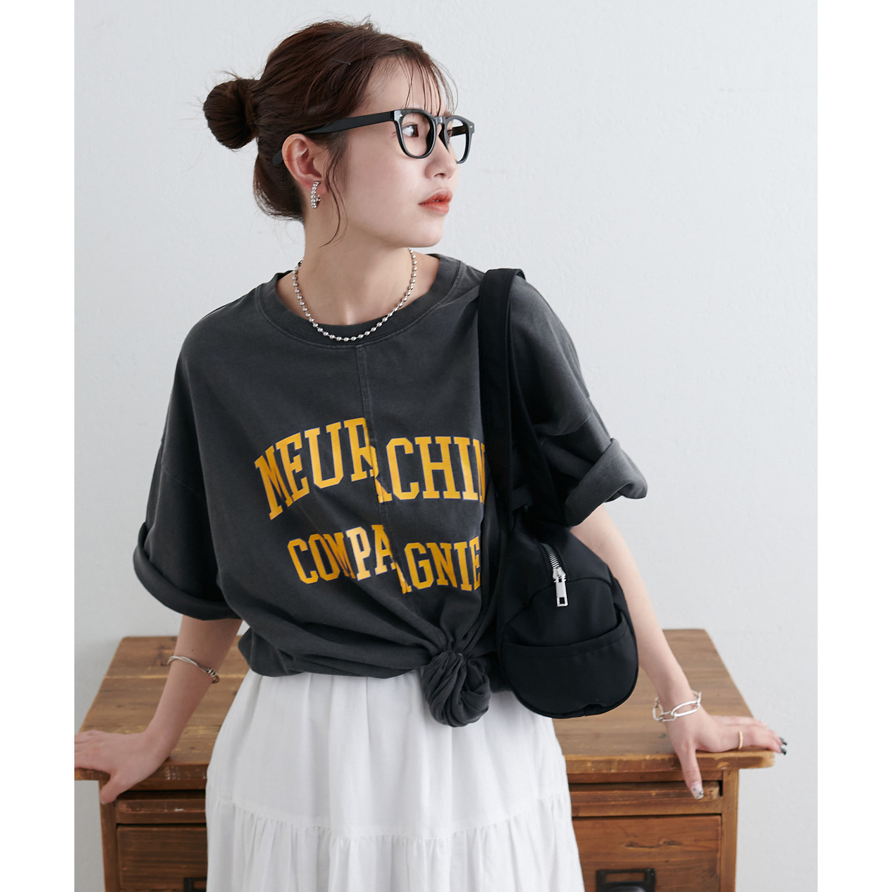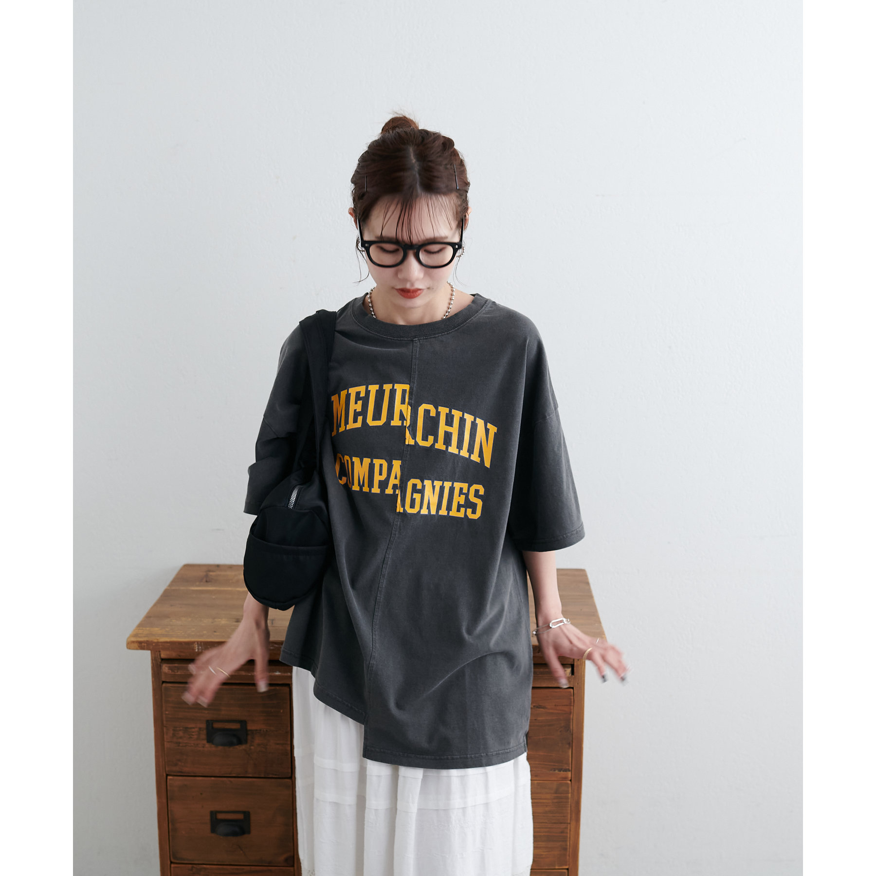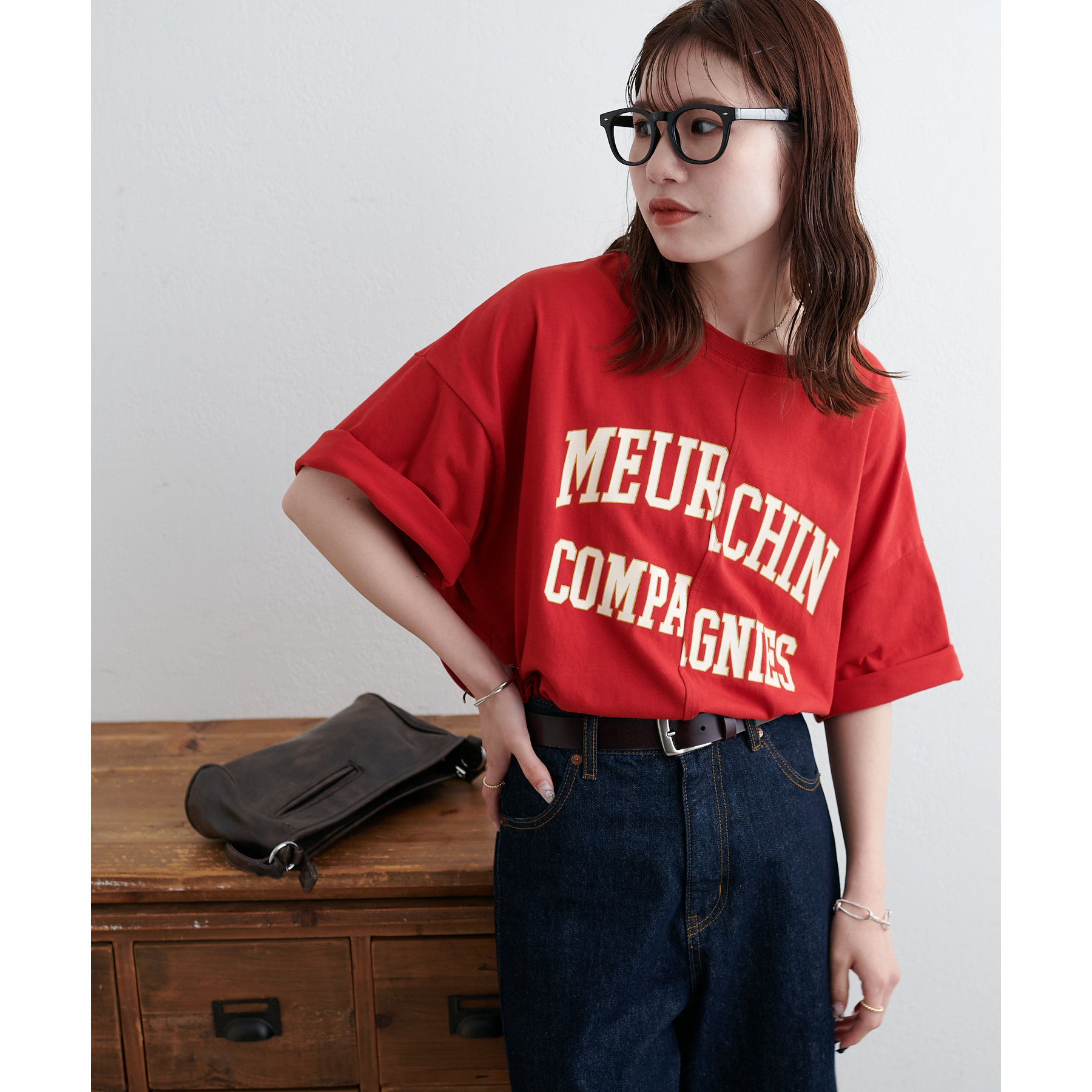157cmスタッフ:袖をロールアップするとよりこなれ感のある着こなしに!遊び心とデザイン性のある主役級Tシャツです!