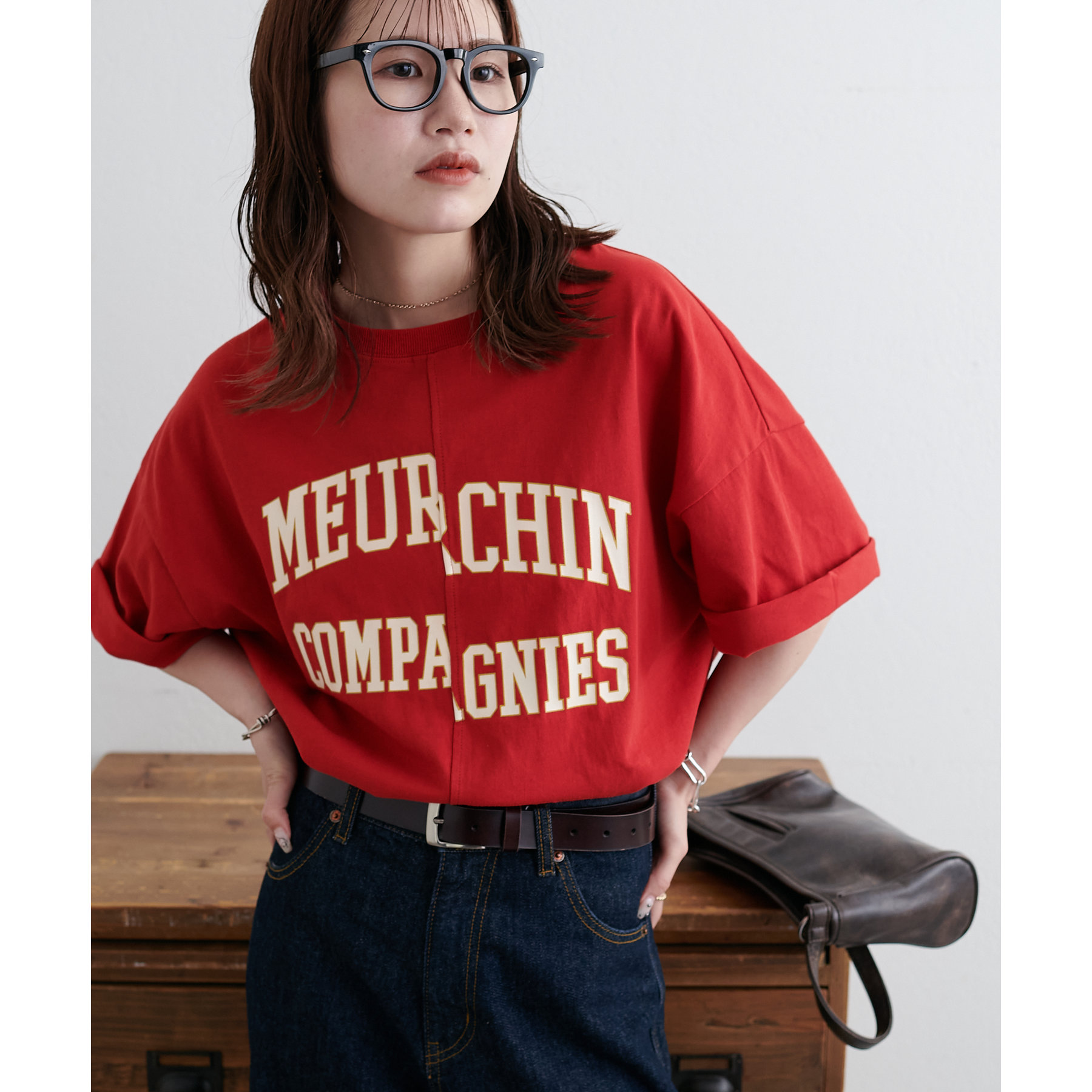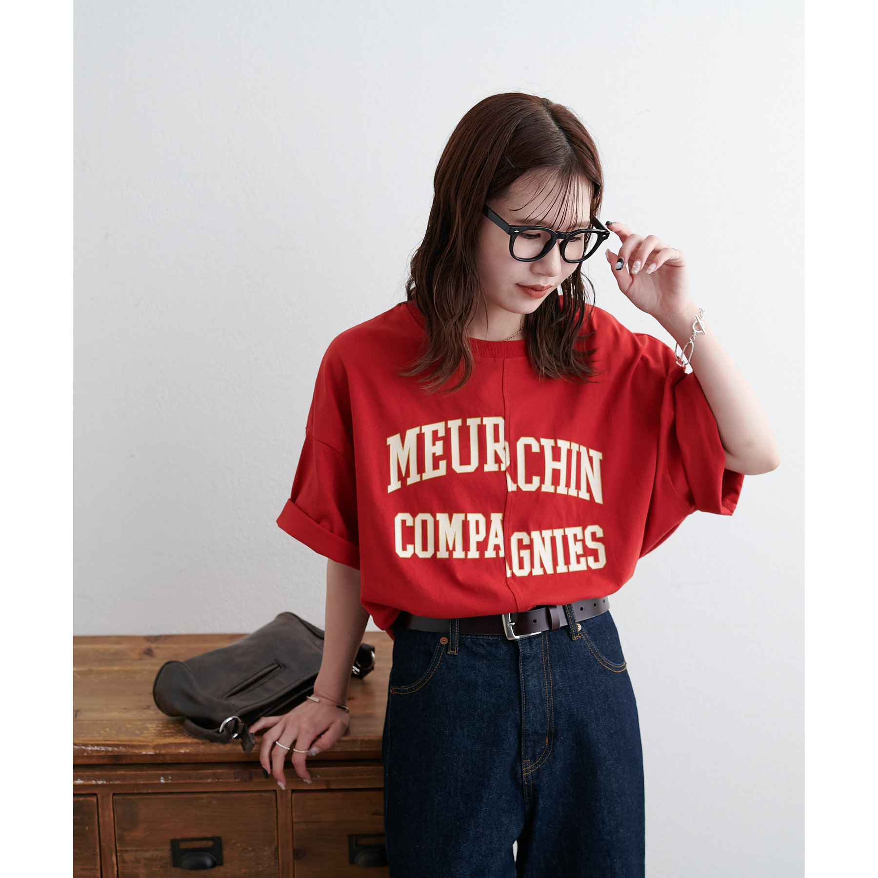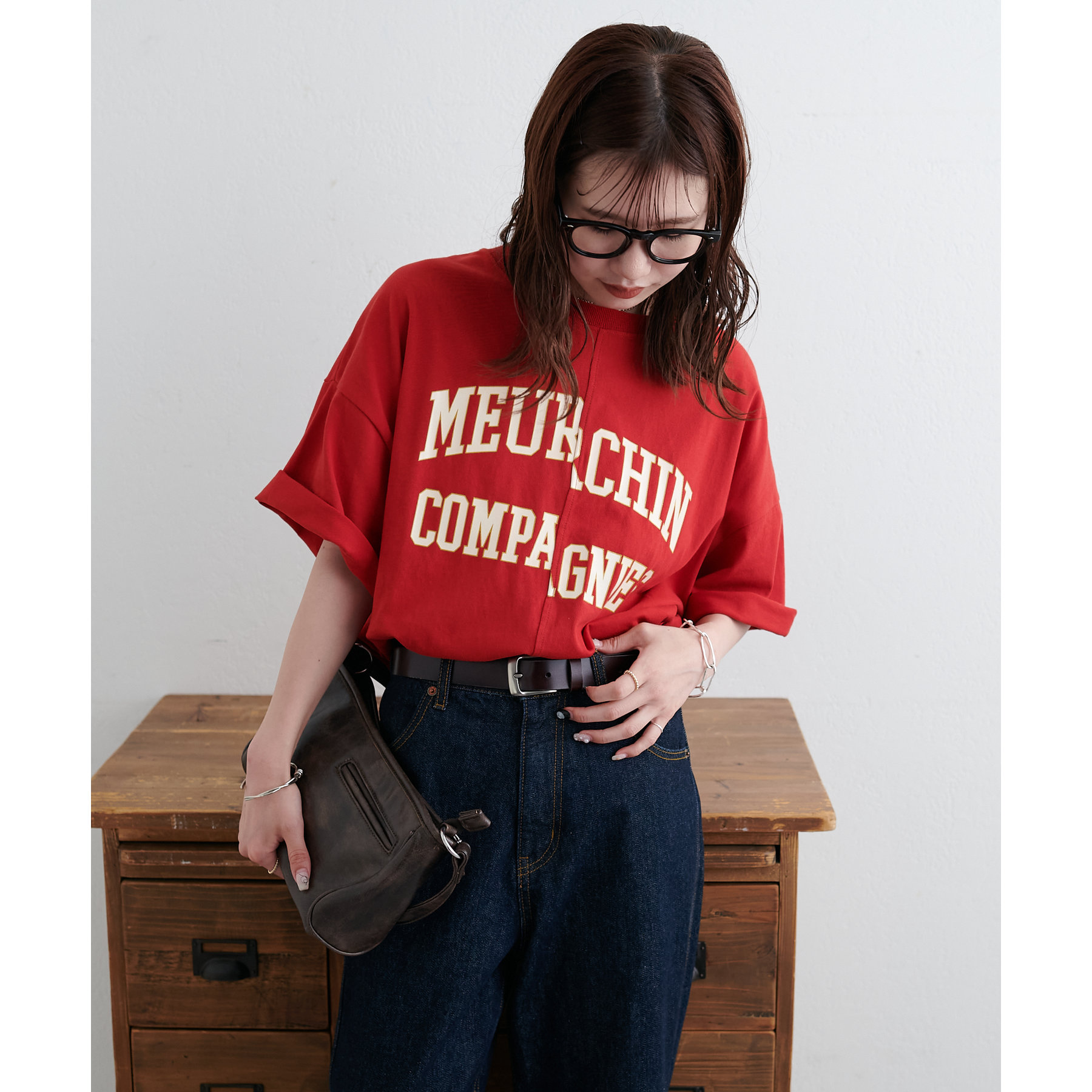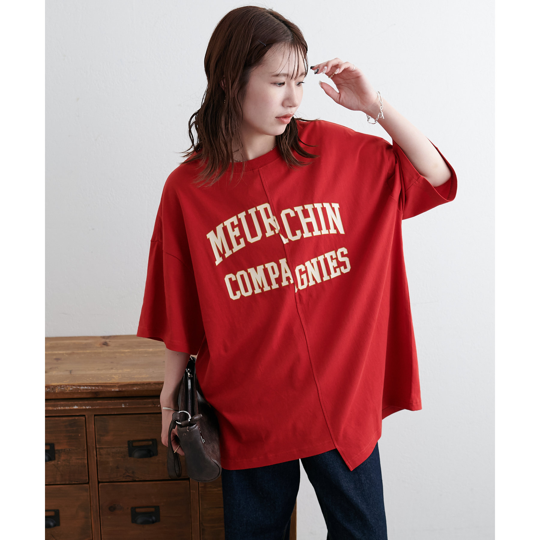 157cmスタッフ:袖をロールアップするとよりこなれ感のある着こなしに!遊び心とデザイン性のある主役級Tシャツです!