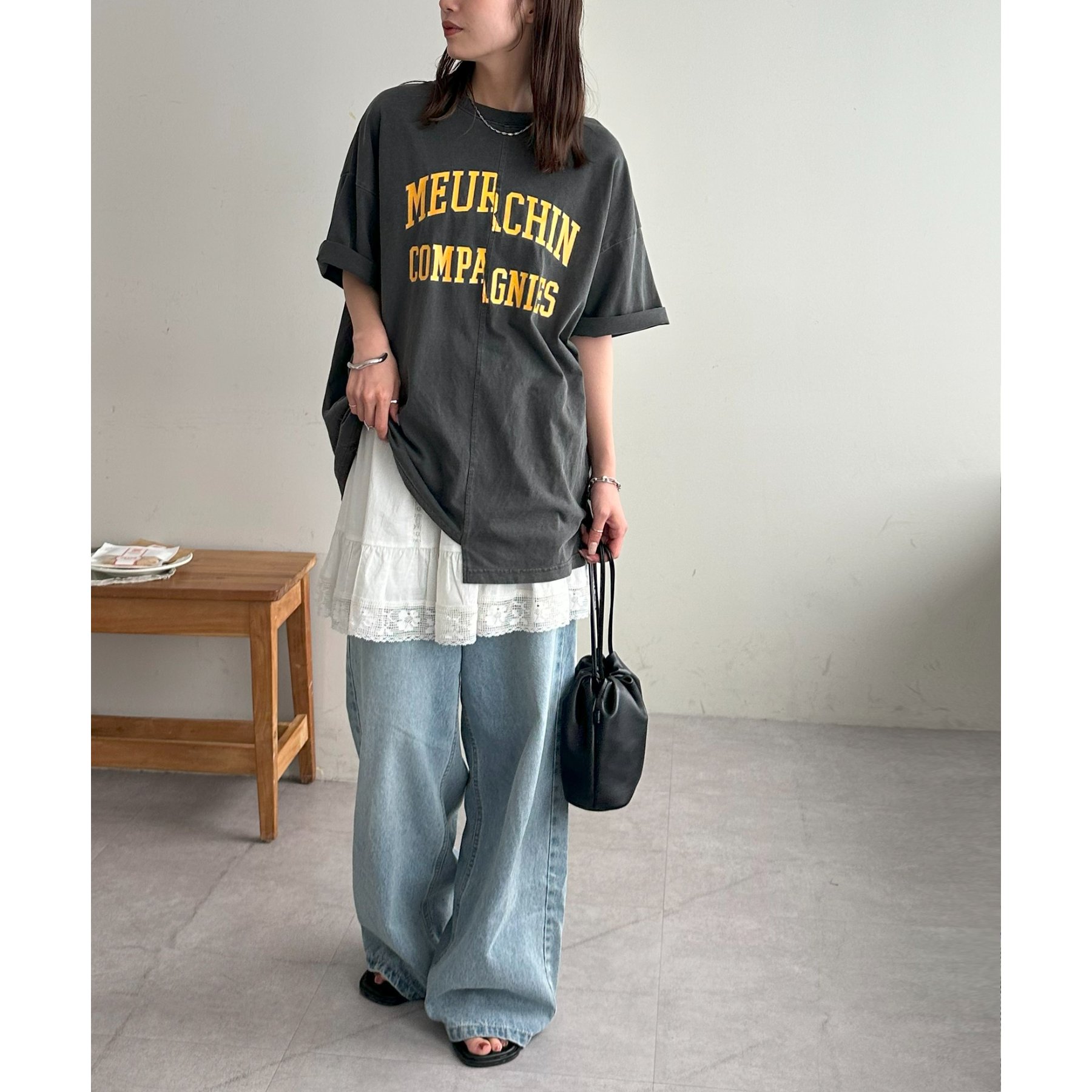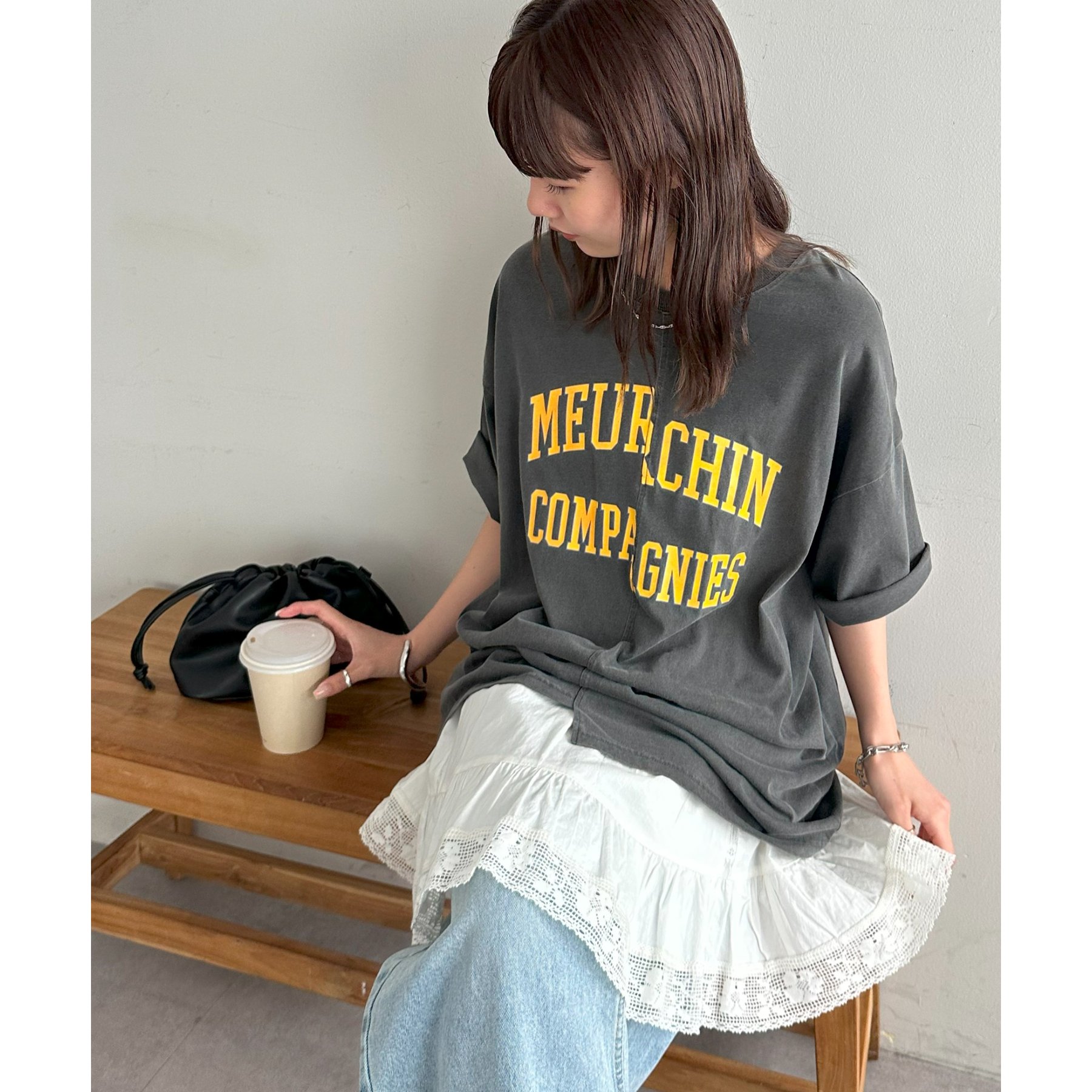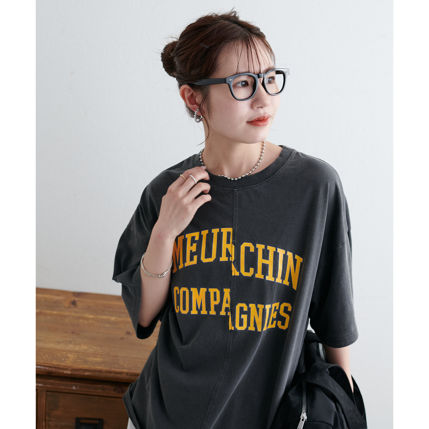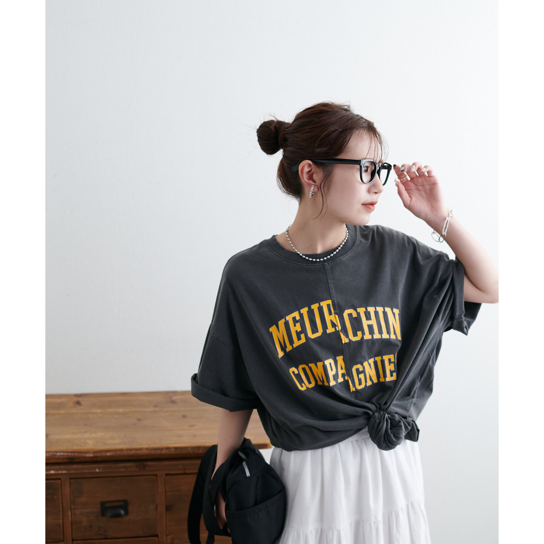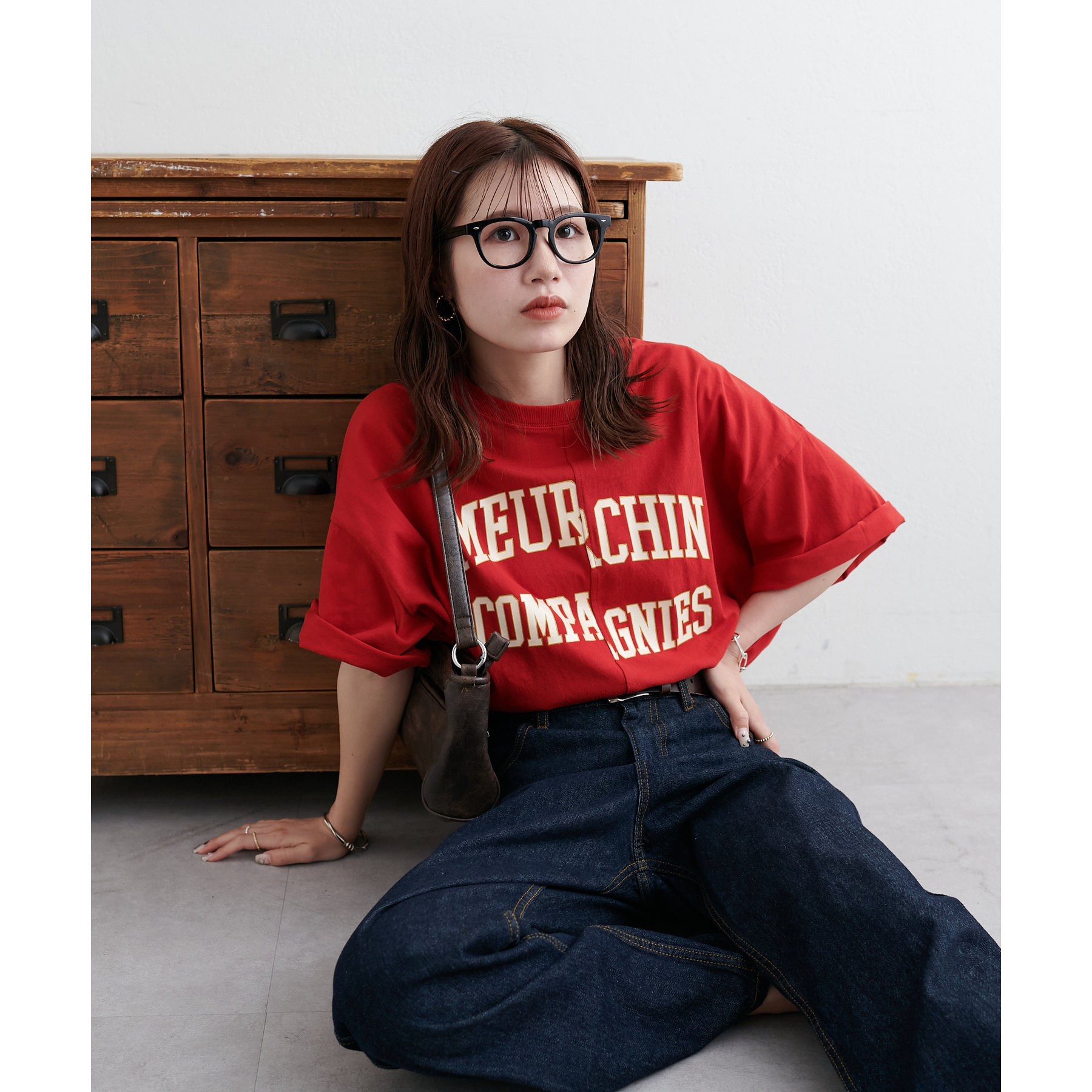 157cmスタッフ:袖をロールアップするとよりこなれ感のある着こなしに!遊び心とデザイン性のある主役級Tシャツです!