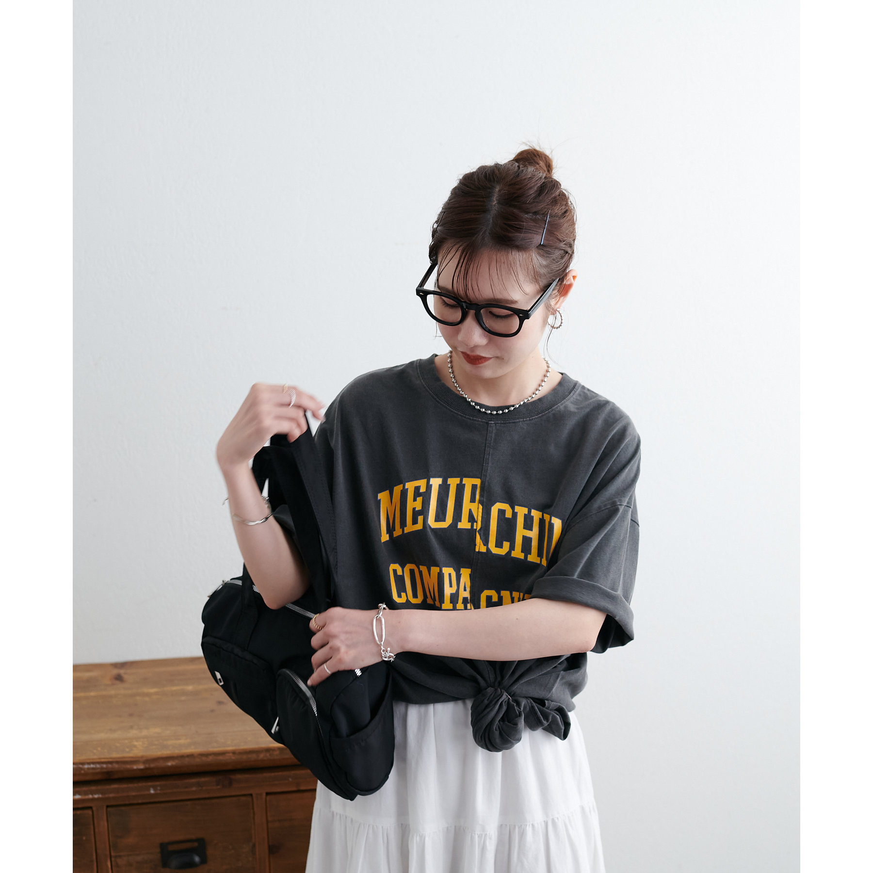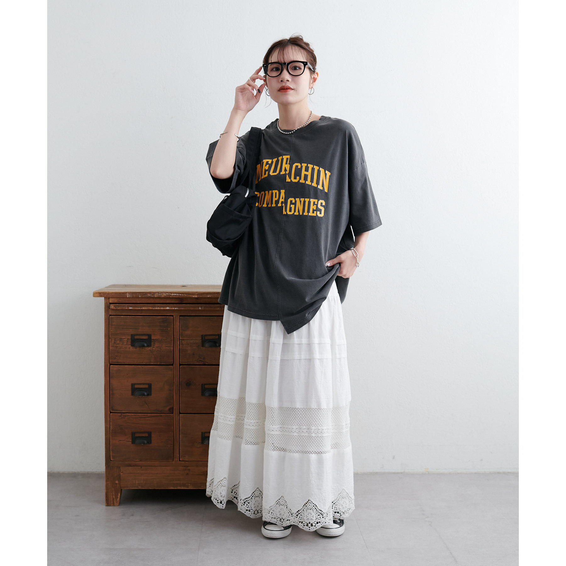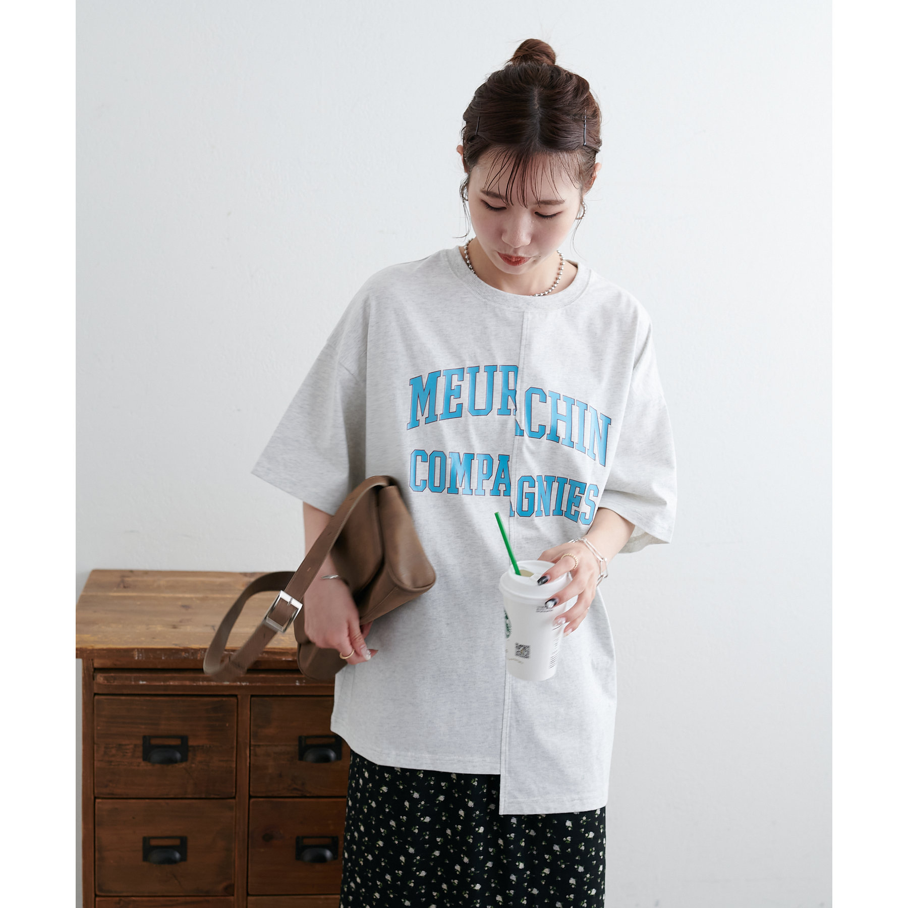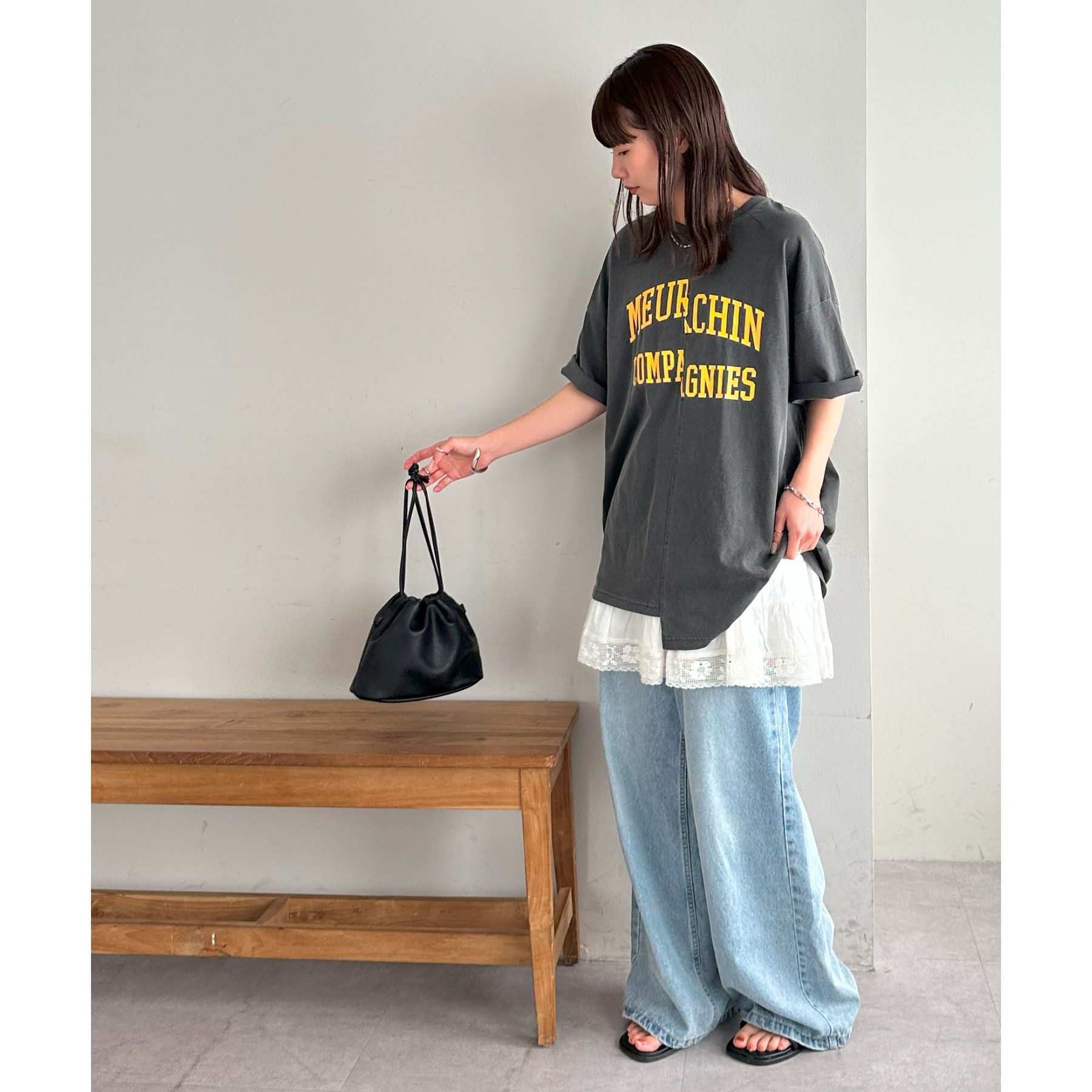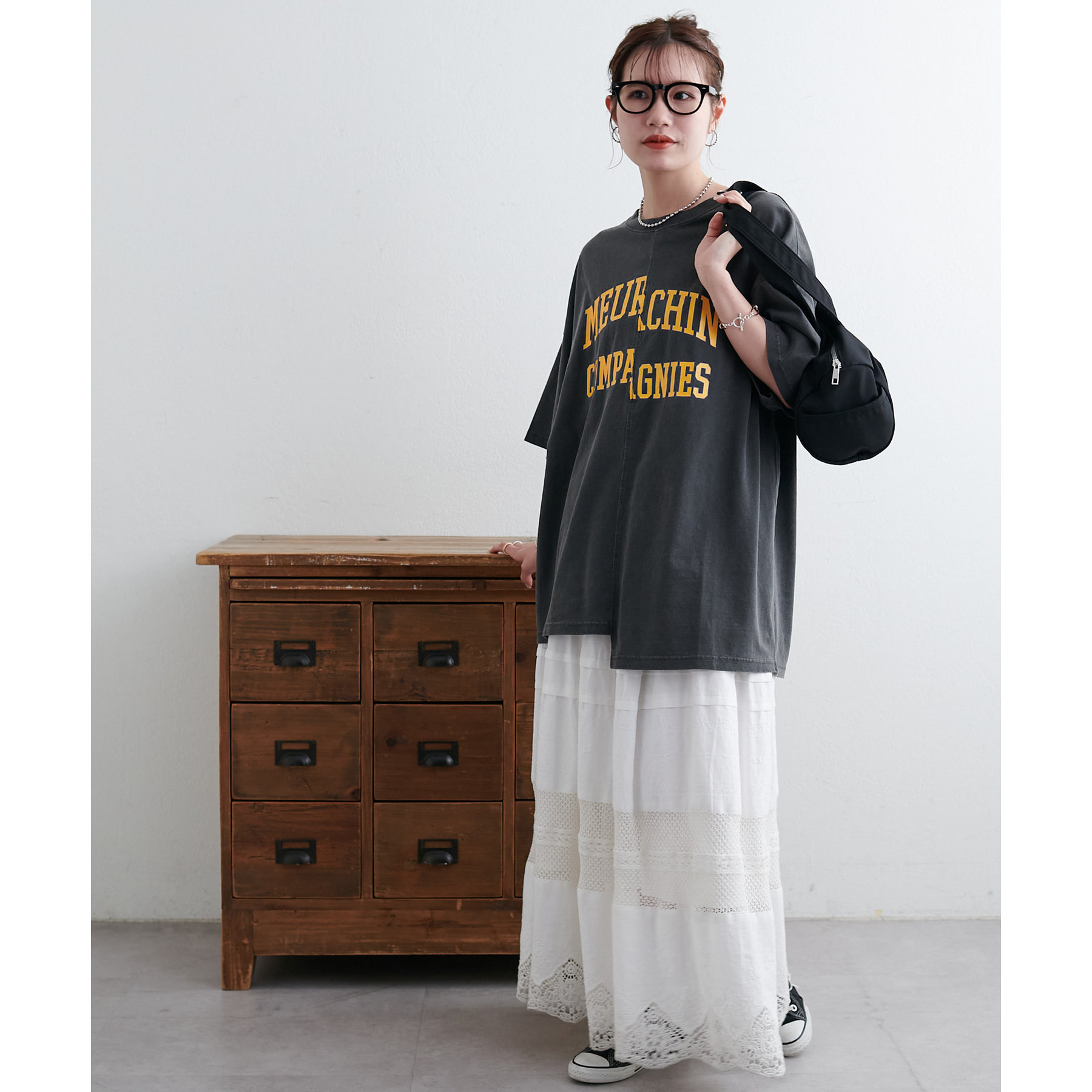 157cmスタッフ:袖をロールアップするとよりこなれ感のある着こなしに!遊び心とデザイン性のある主役級Tシャツです!