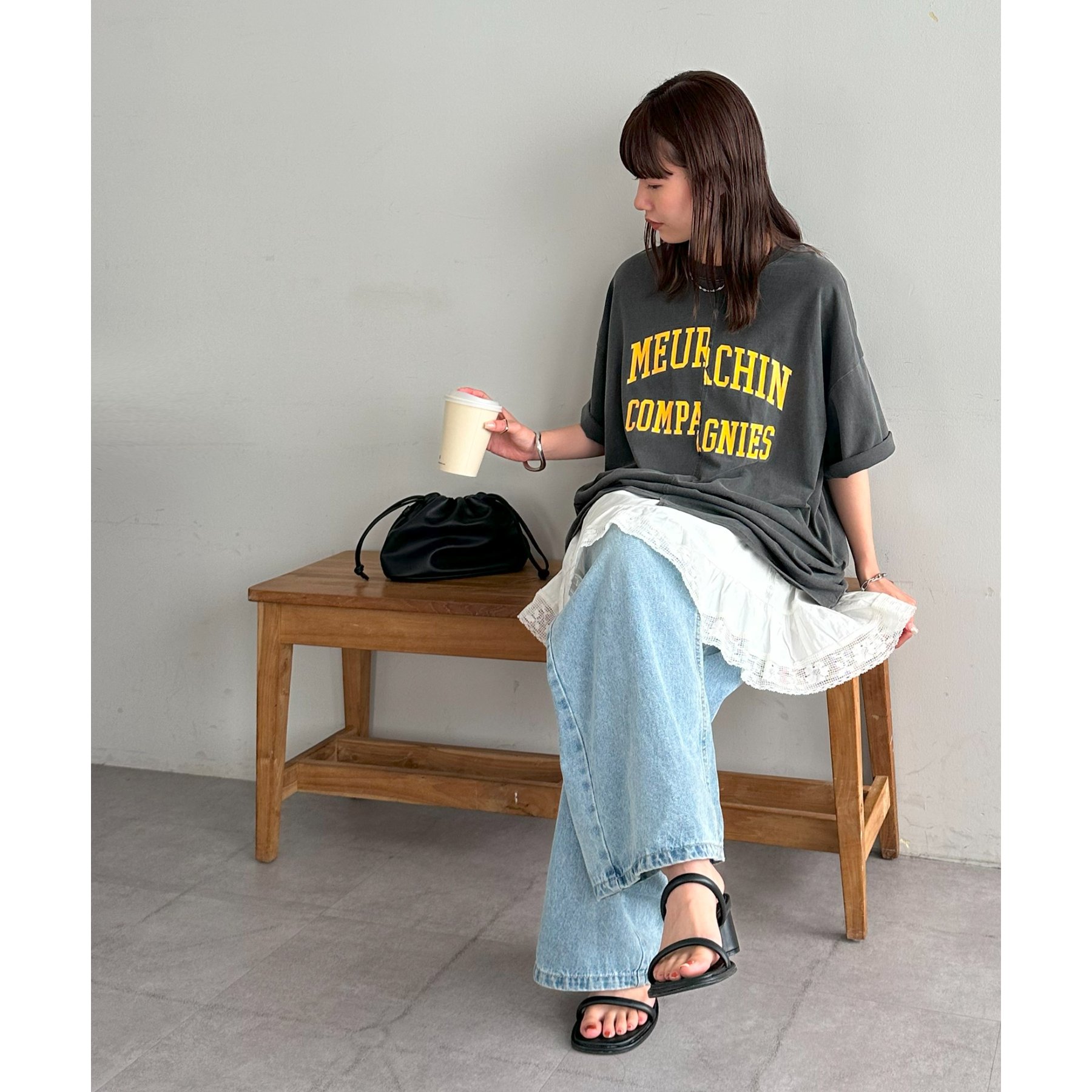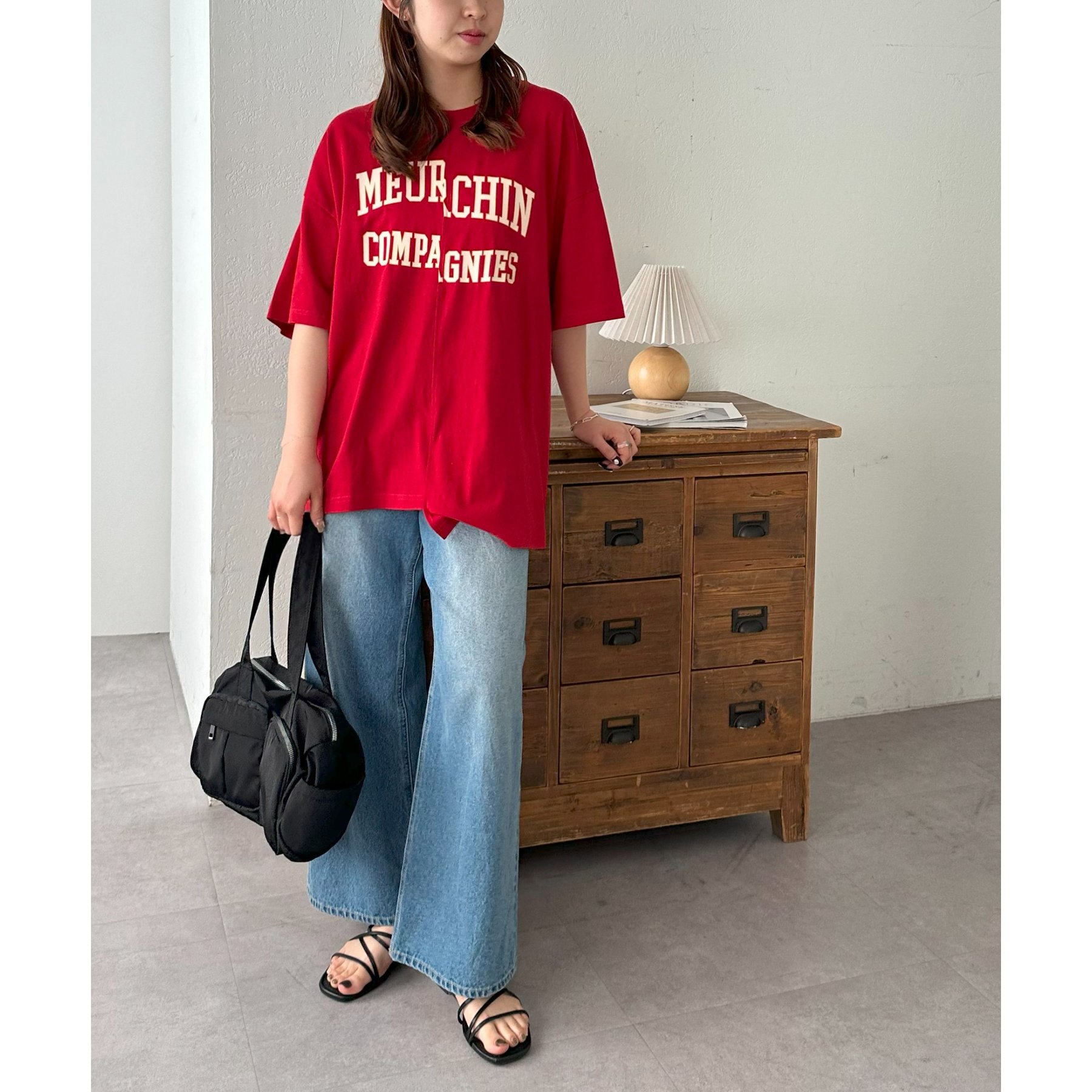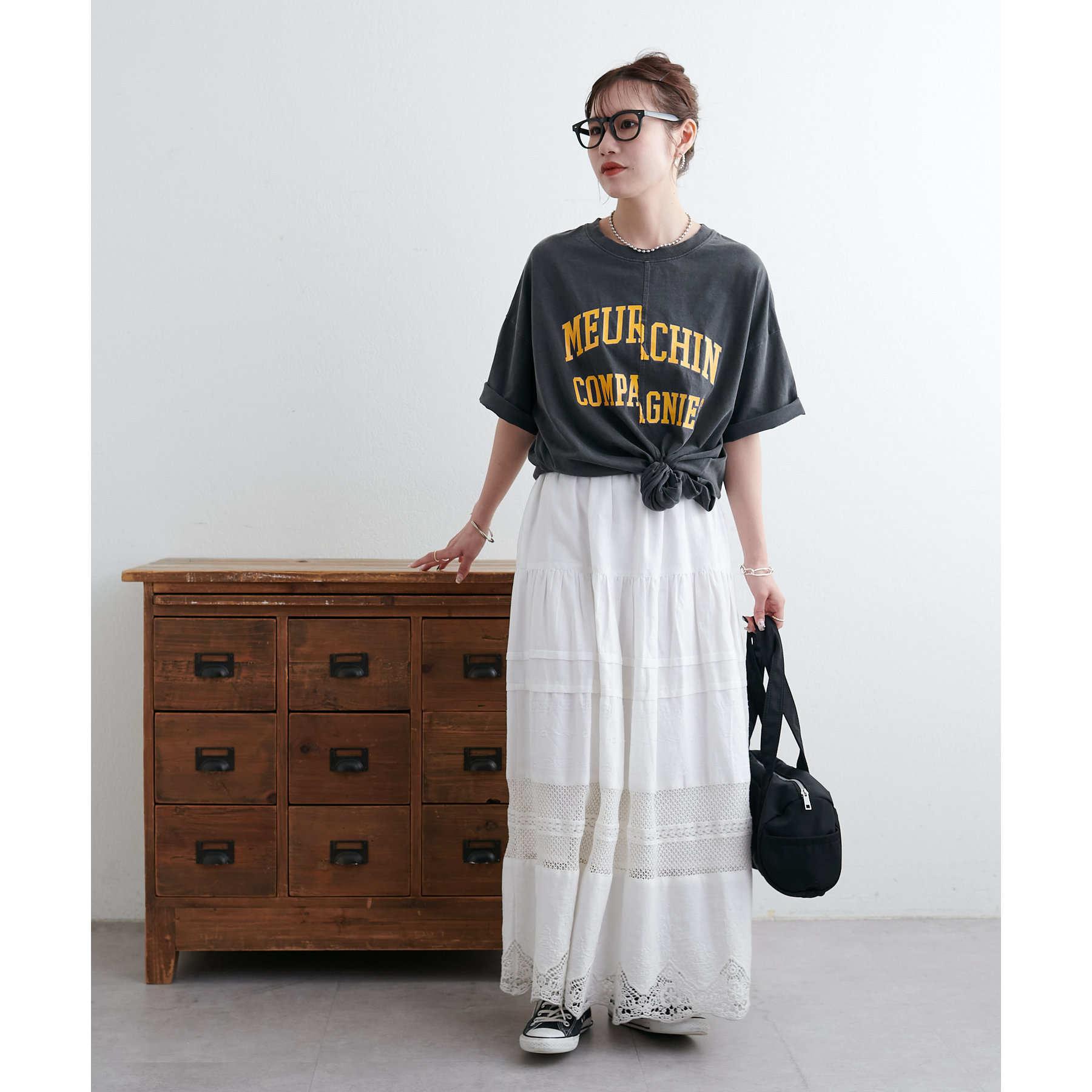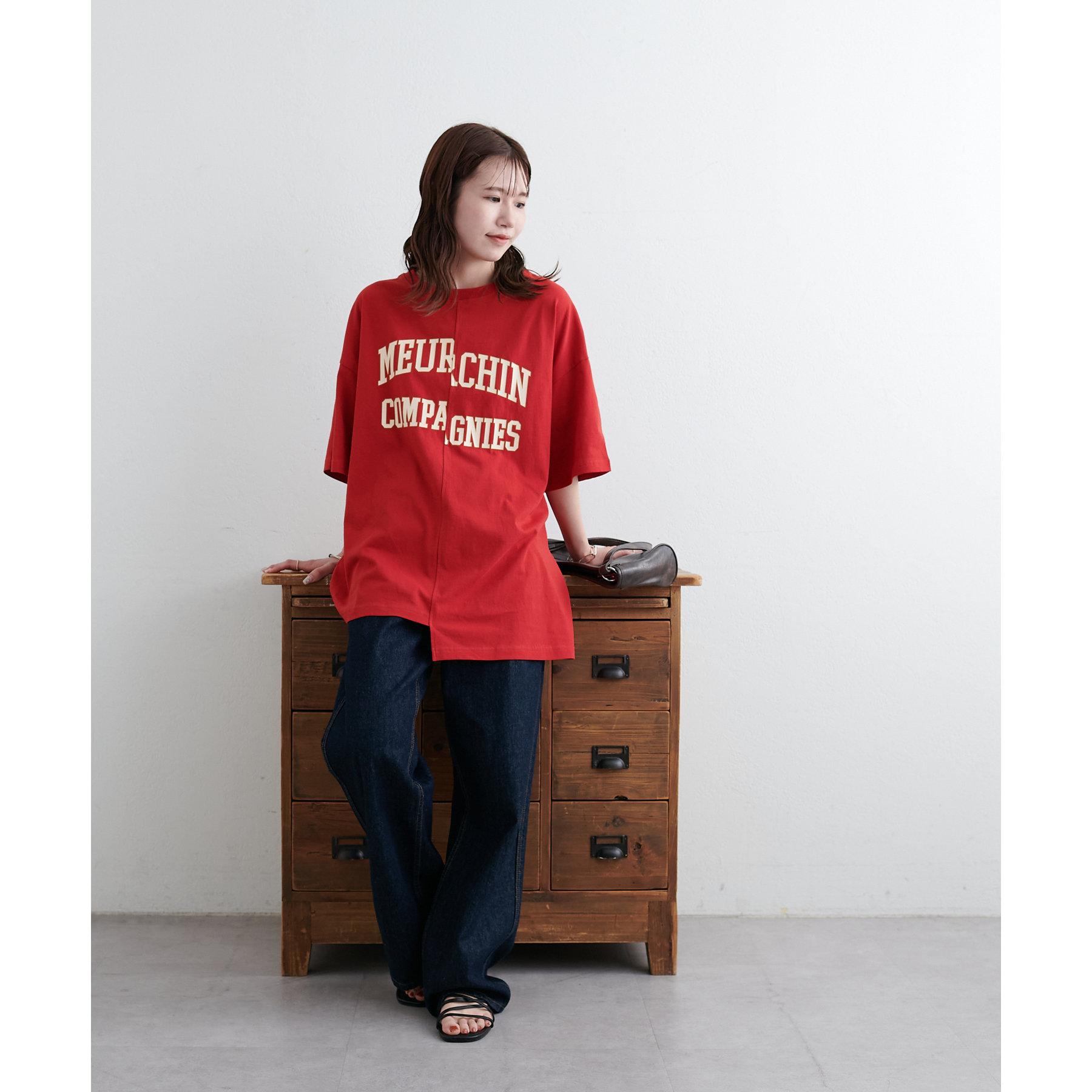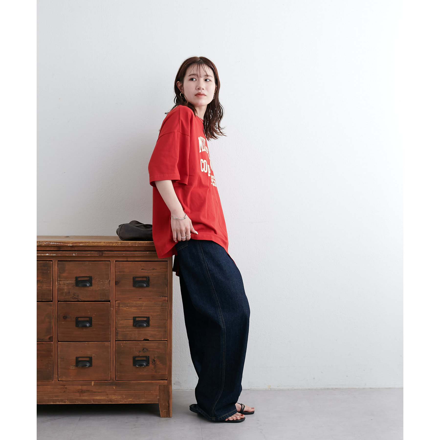 157cmスタッフ:袖をロールアップするとよりこなれ感のある着こなしに!遊び心とデザイン性のある主役級Tシャツです!