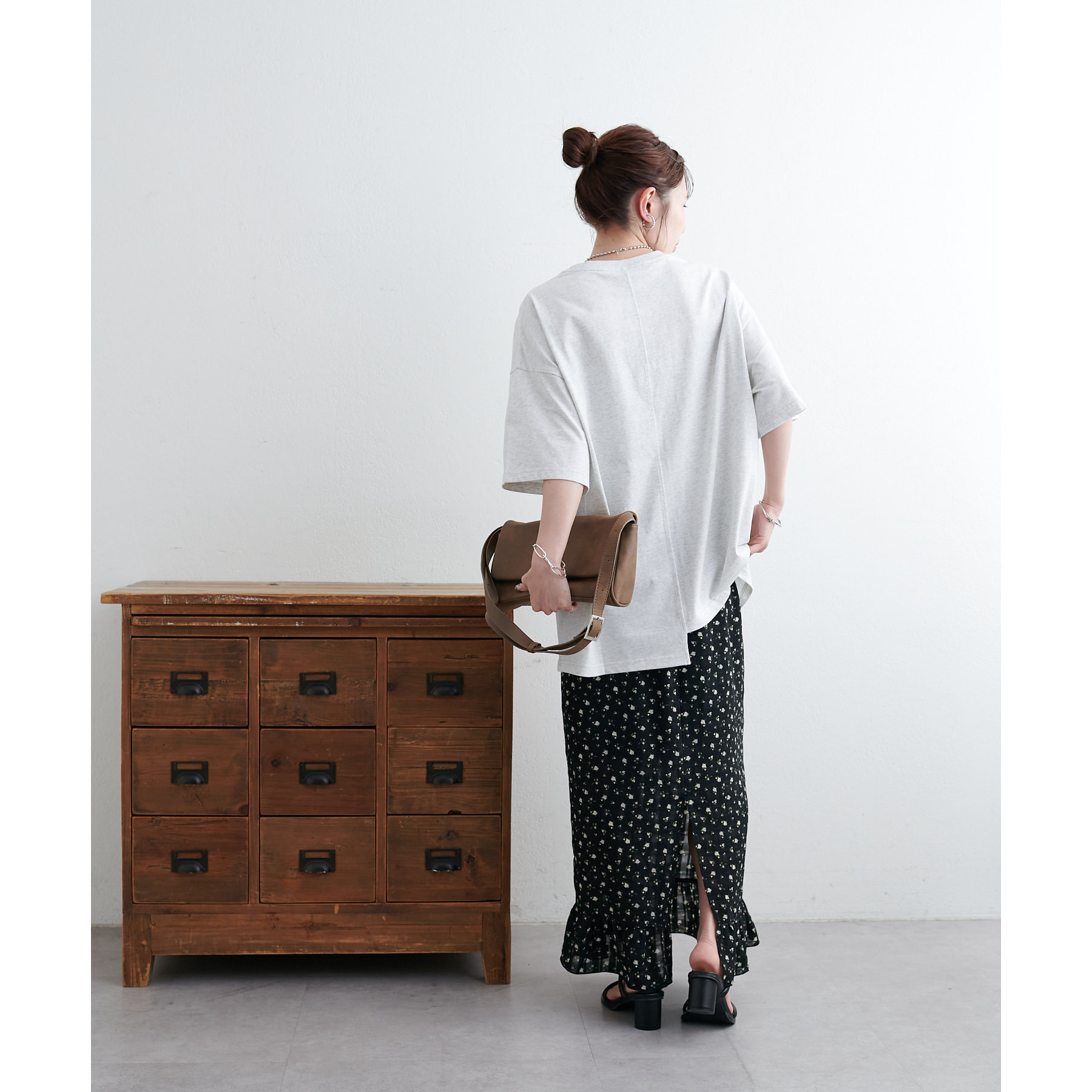 あえて花柄スカートやティアードスカートなど、甘めのアイテムとミックスすることで、程よく力の抜けた大人のこなれフェミニンスタイルも楽しめます♪