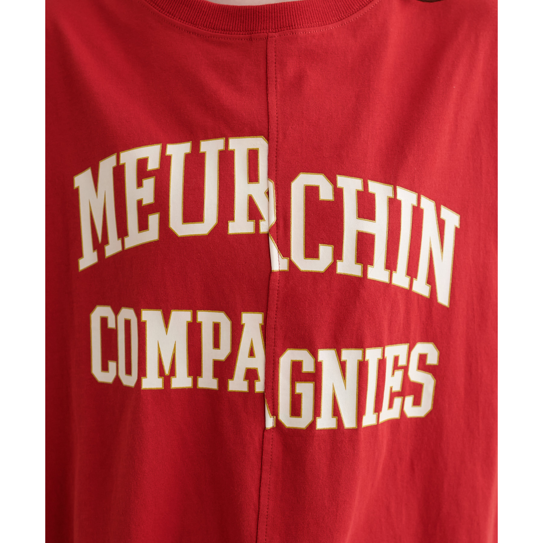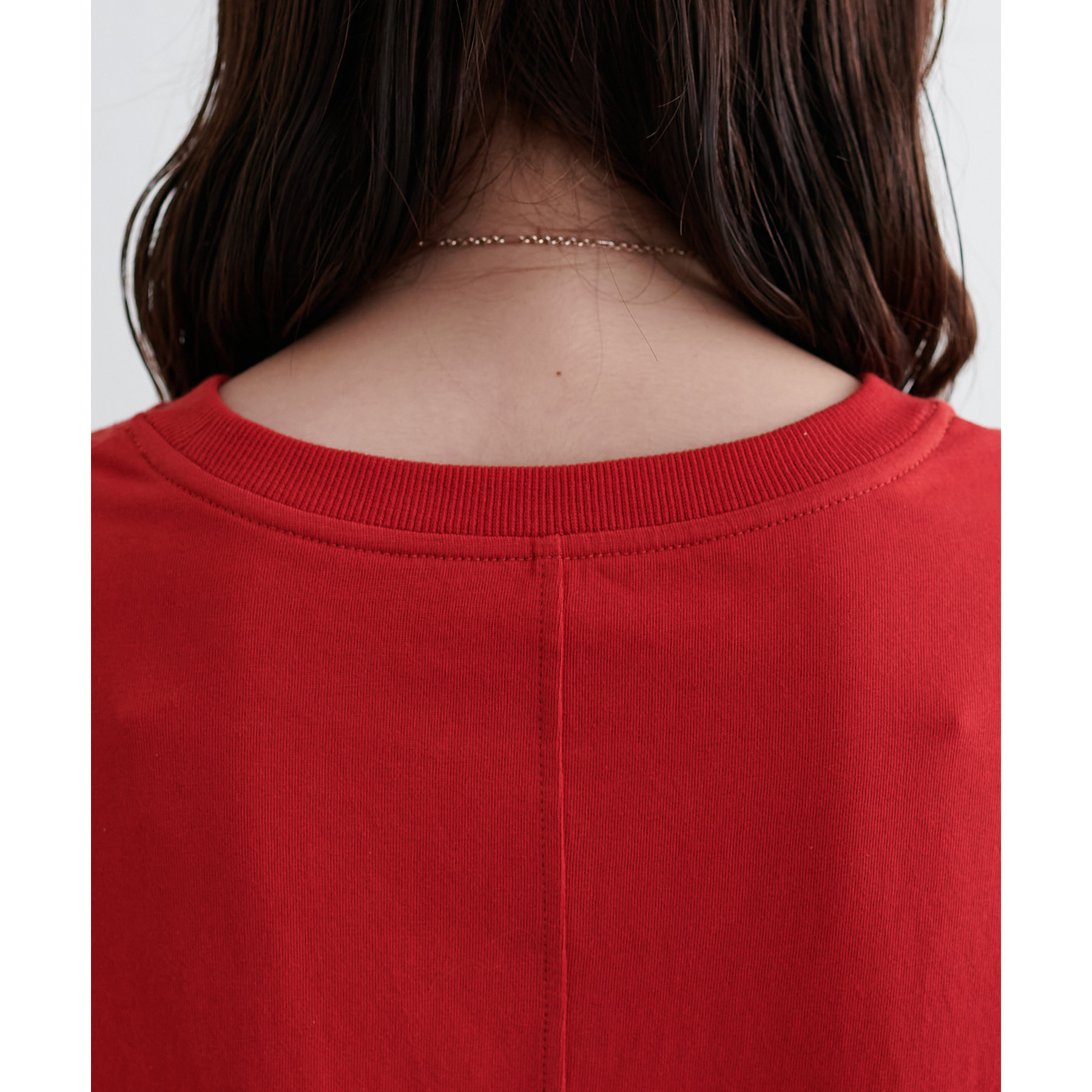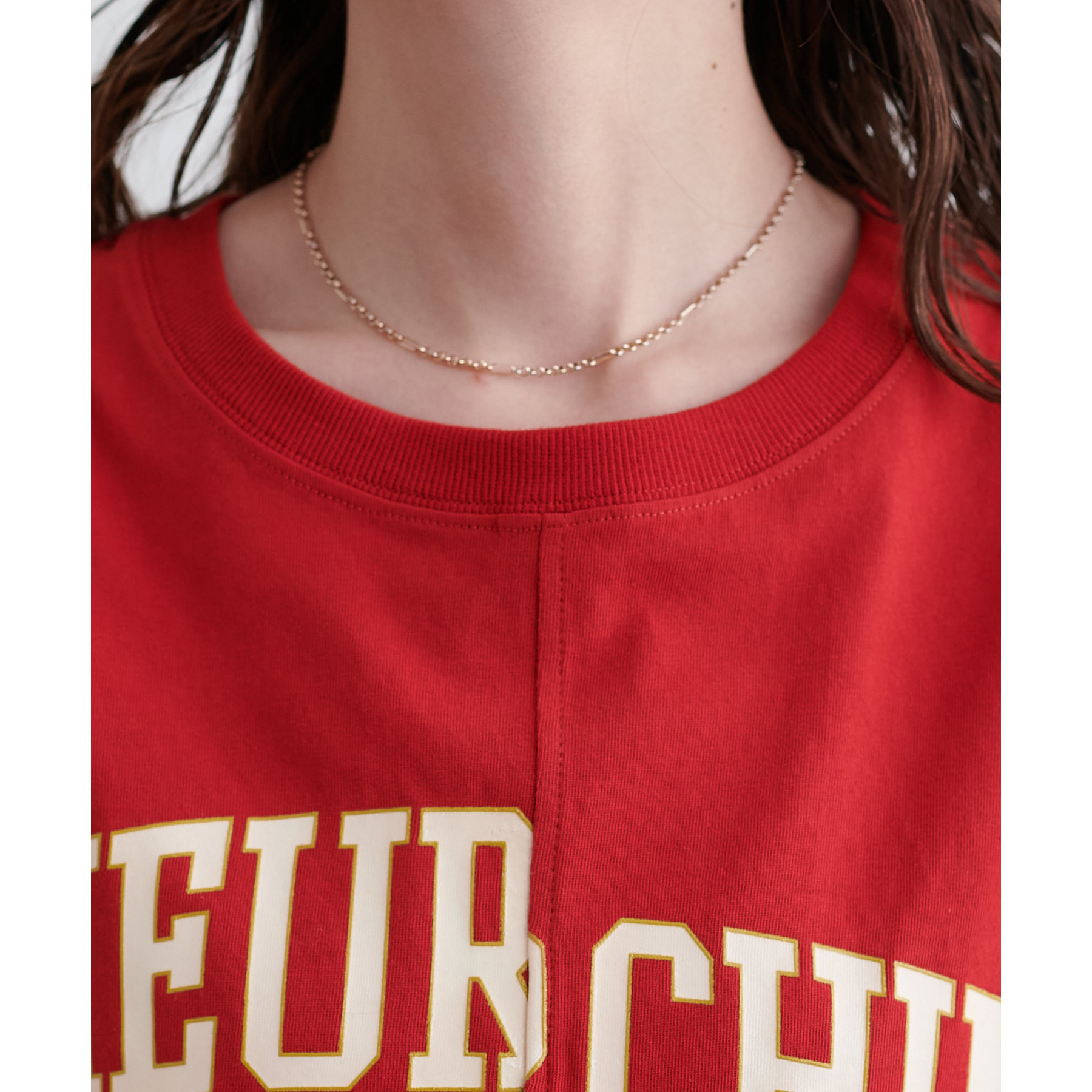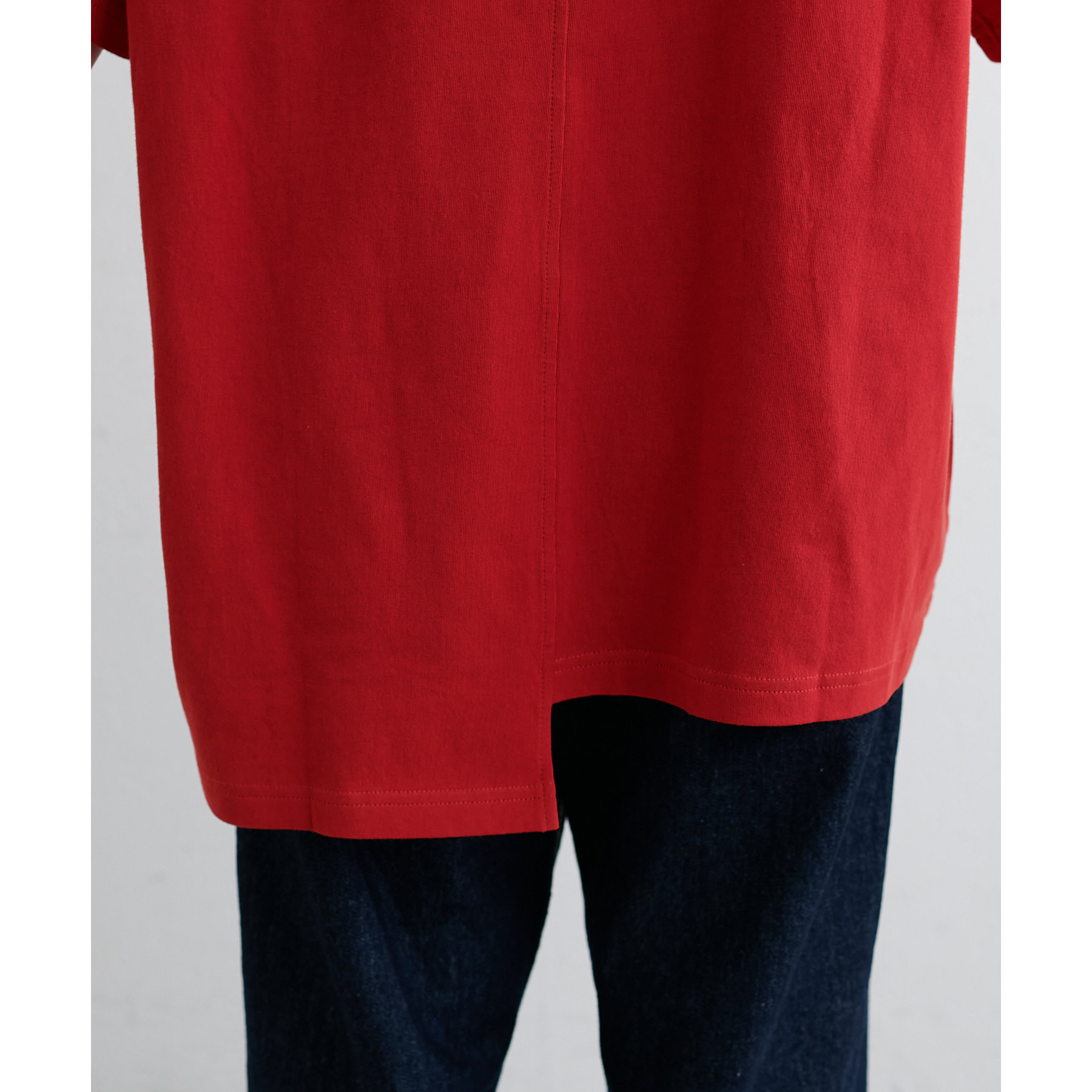 まるで2枚のTシャツを縫い合わせたようなリメイク風の切り替えデザイン。シンプルながらも一癖あるディテールが個性を演出してくれます。