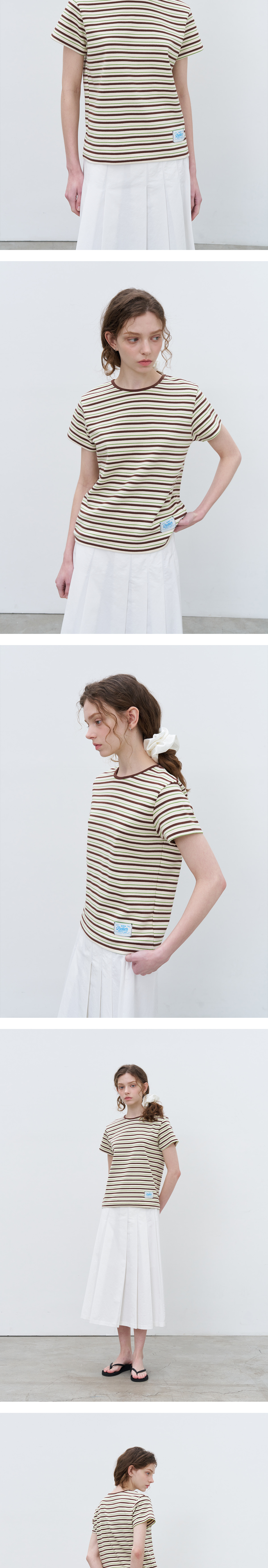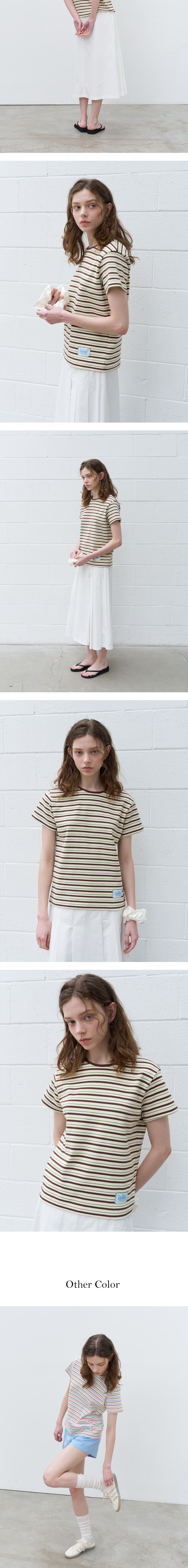 Multi stripe solid T-shirt [KNSS06TS08]_Brown