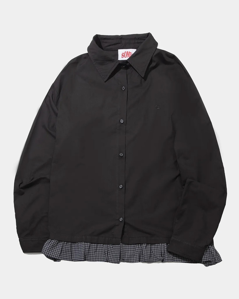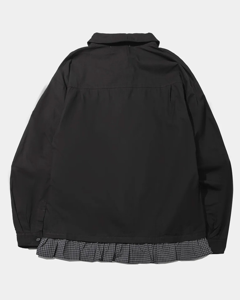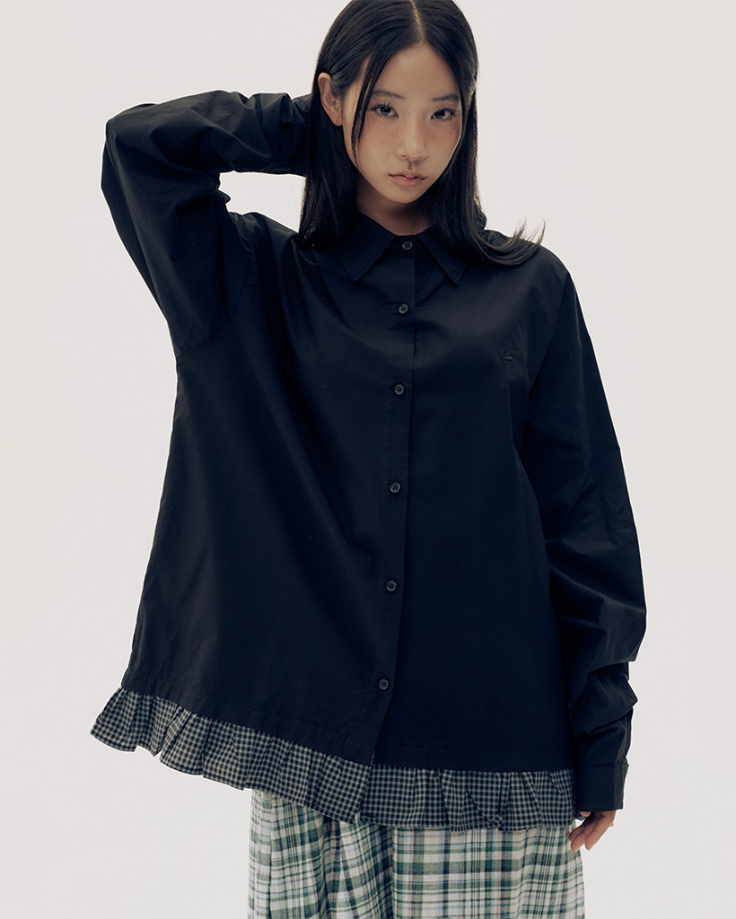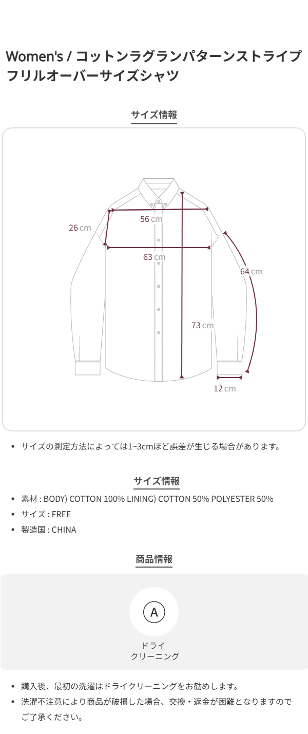 コットンラグランパターンストライプフリルオーバーサイズシャツ[ブラック]