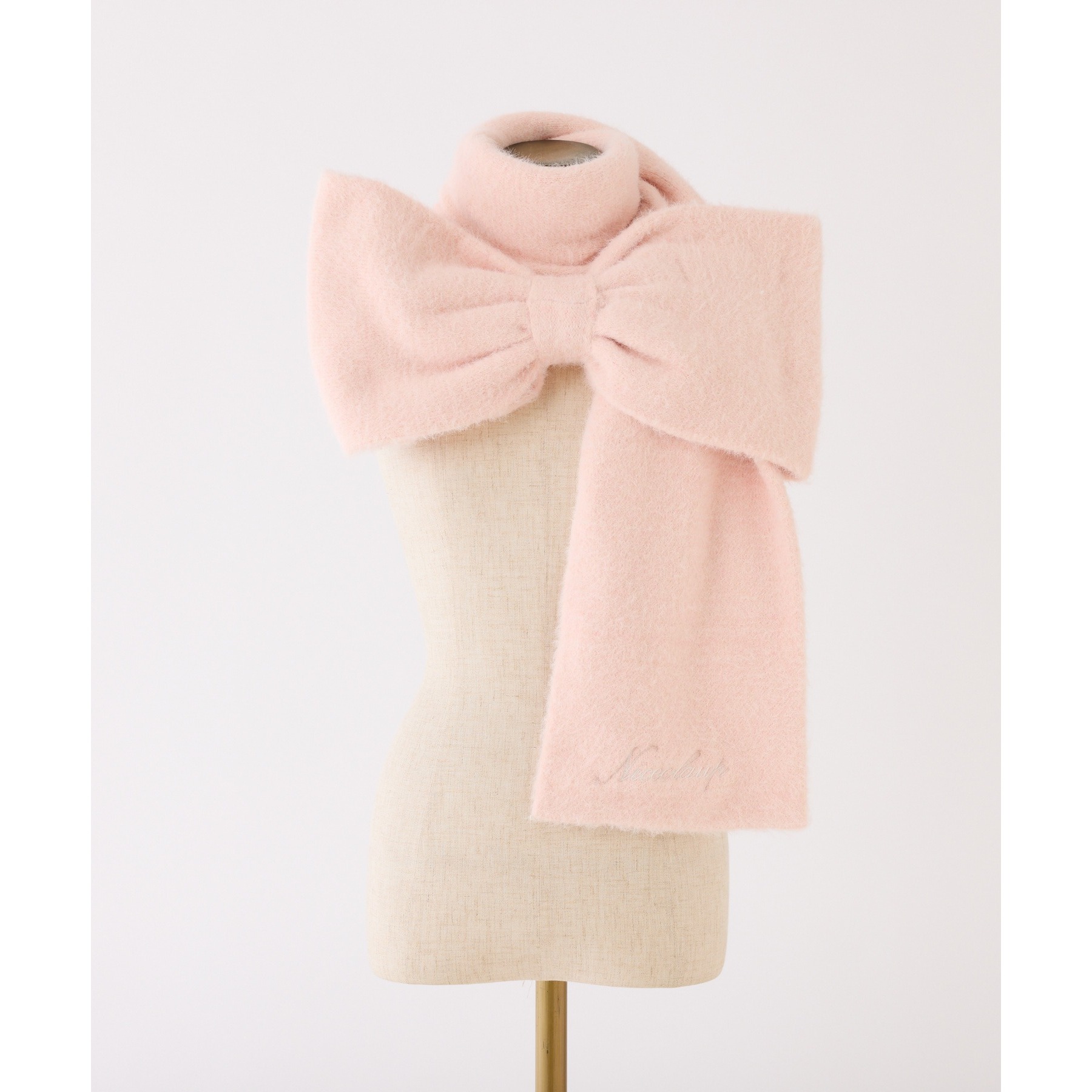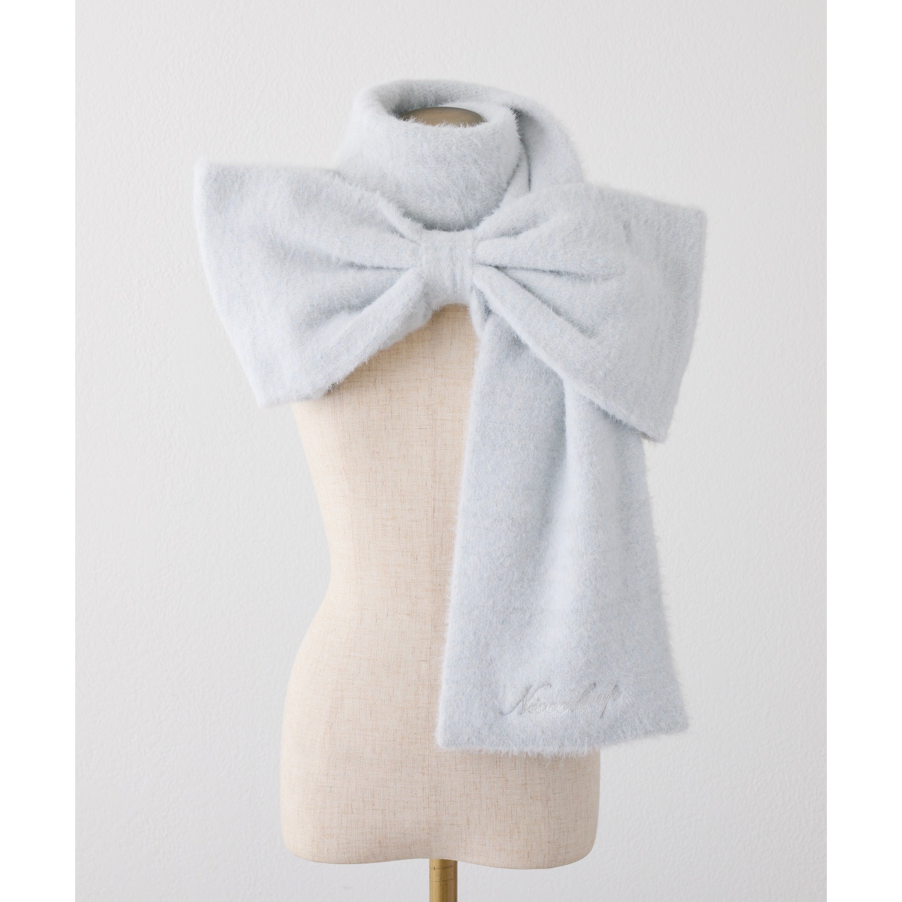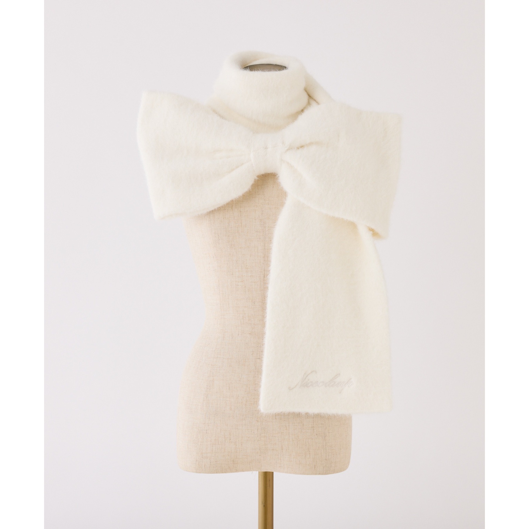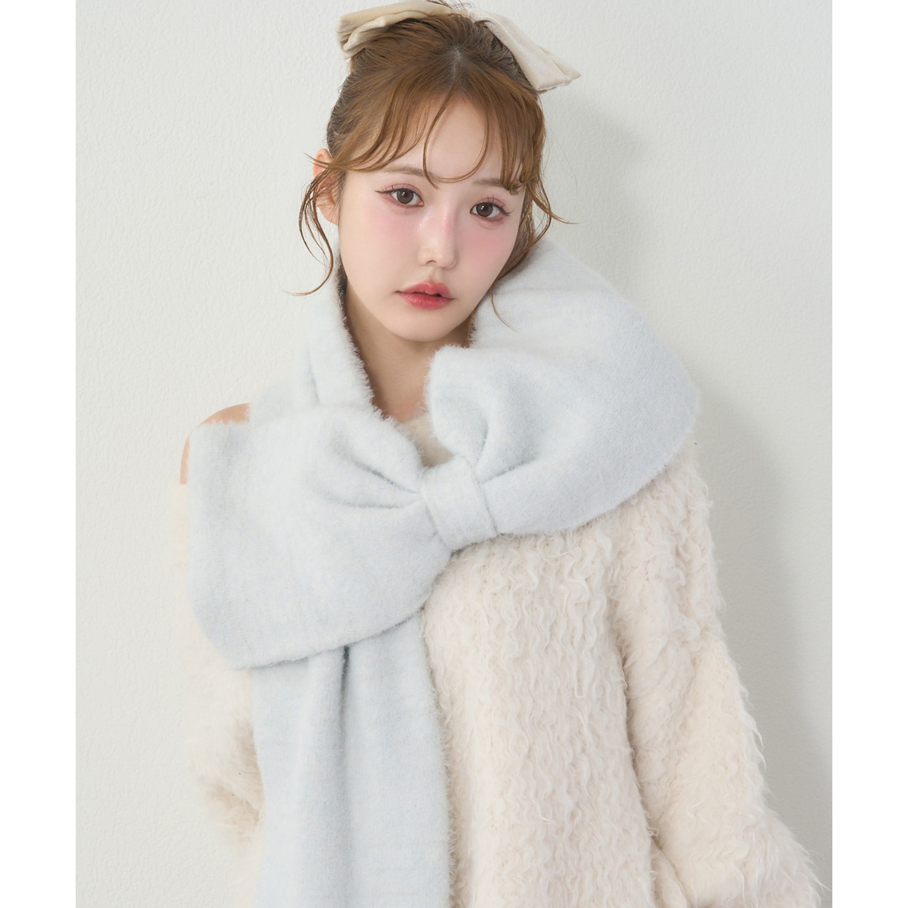 首元に巻くだけで大きなリボンが完成するマフラー。