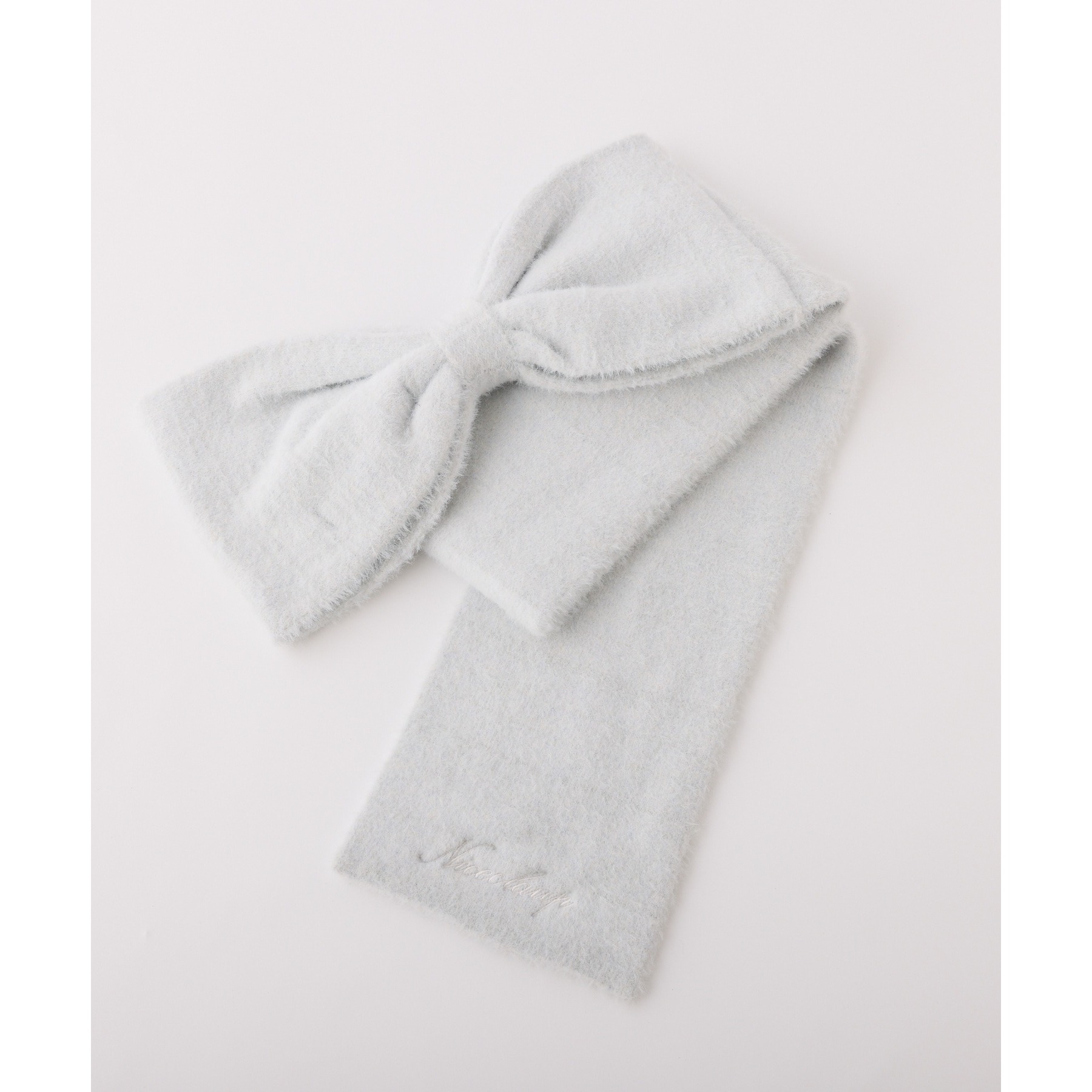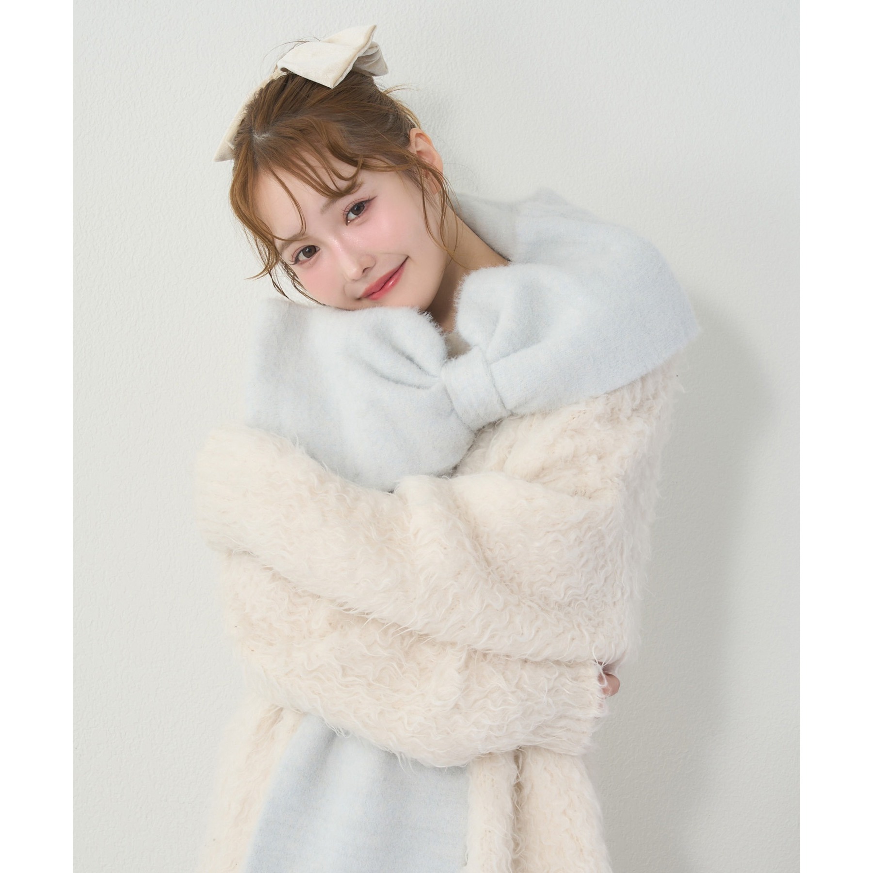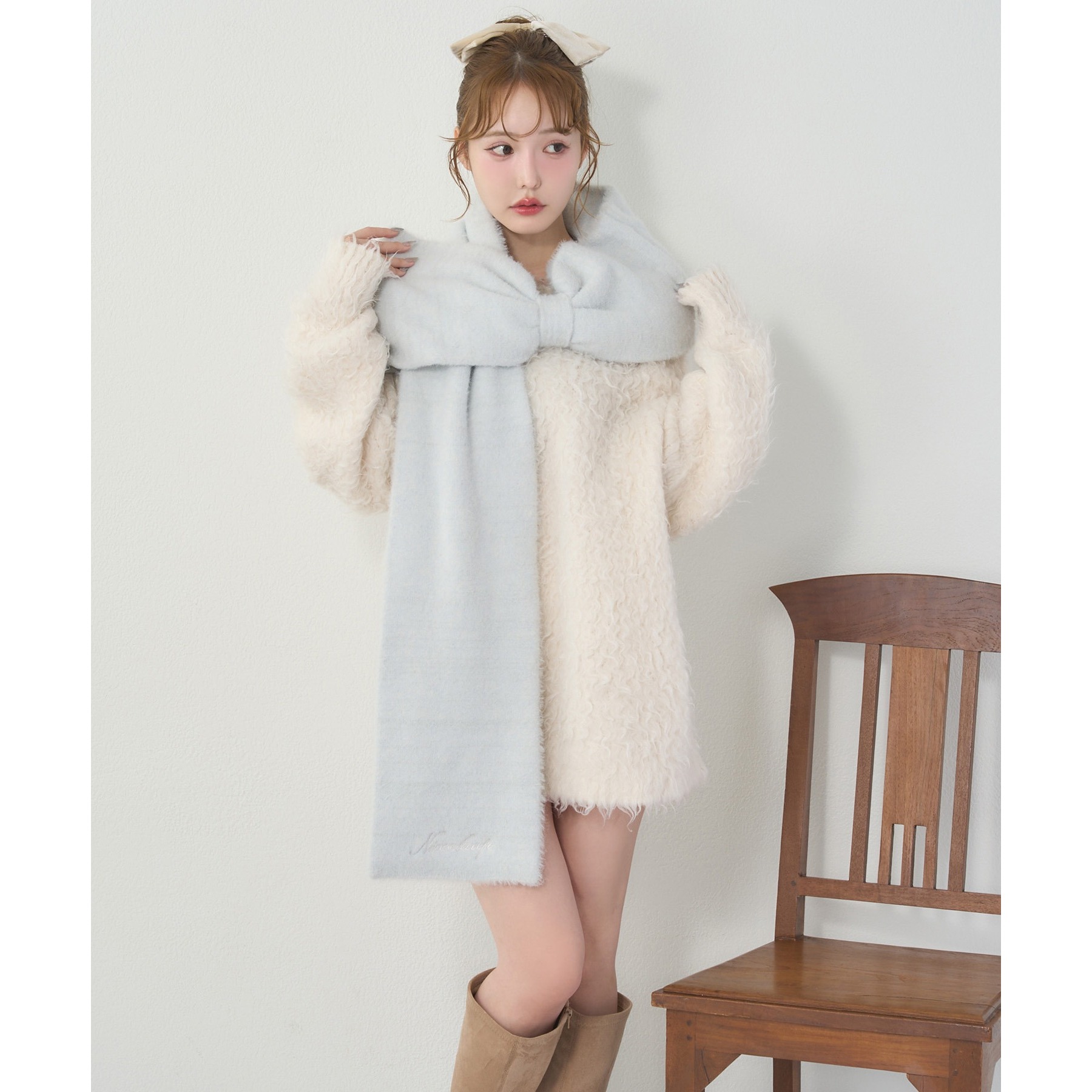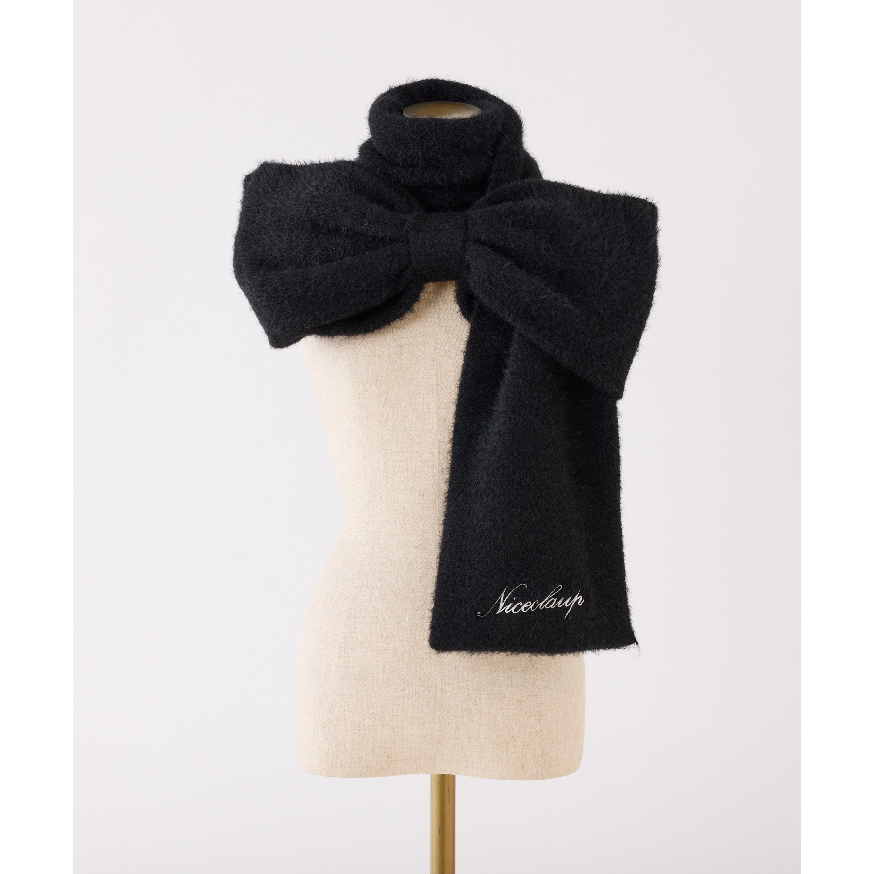 首元に巻くだけで大きなリボンが完成するマフラー。
