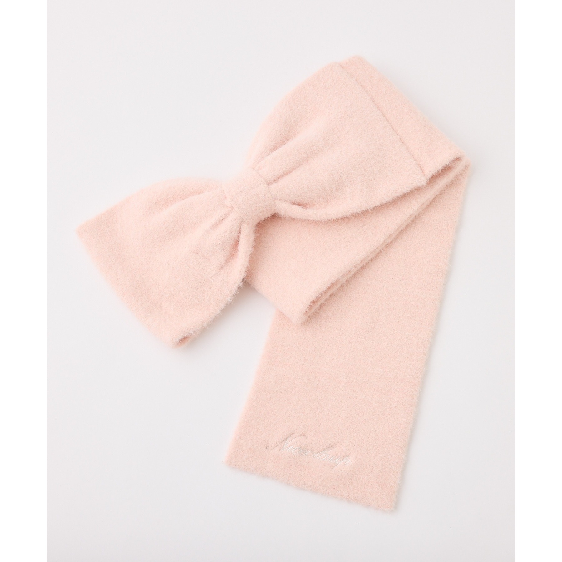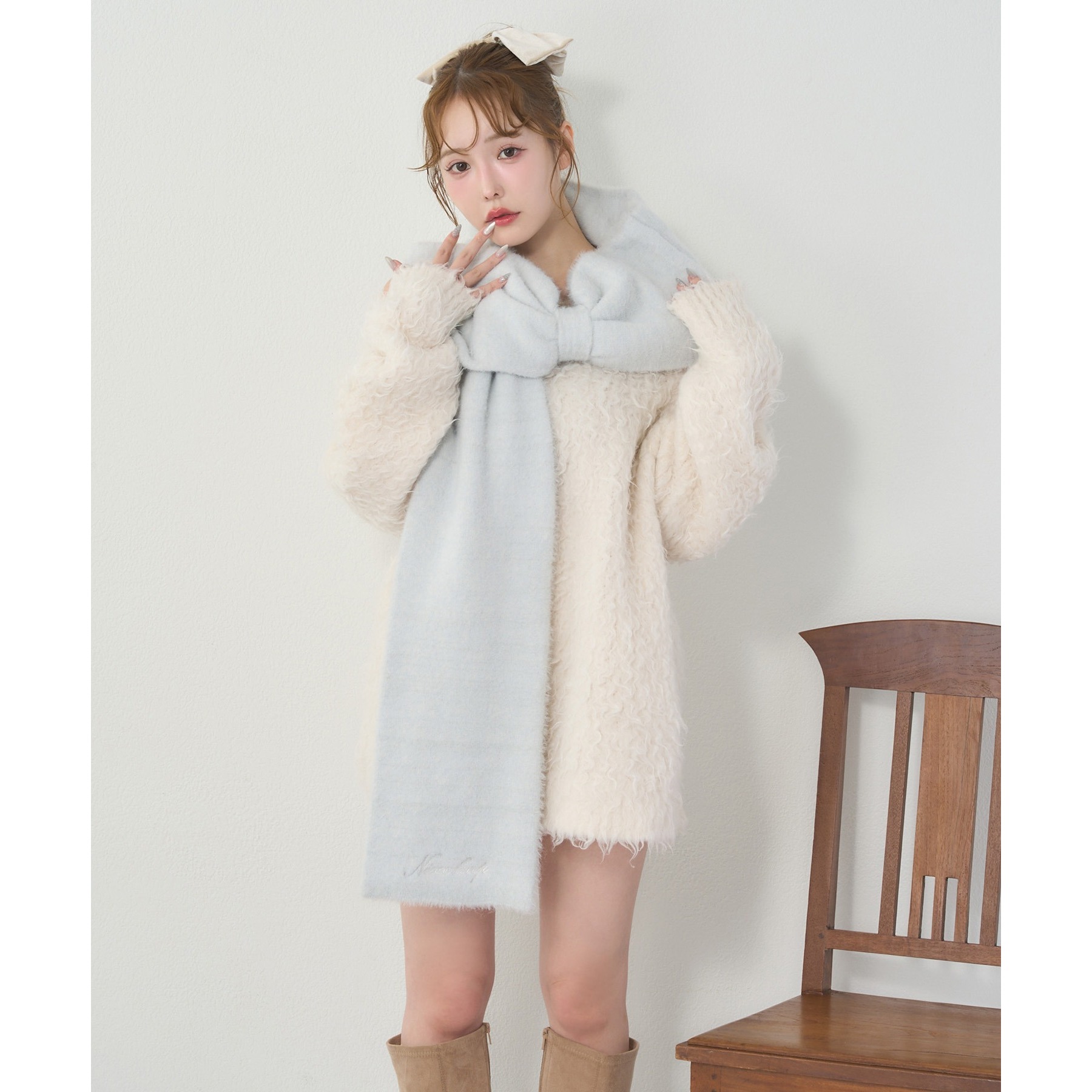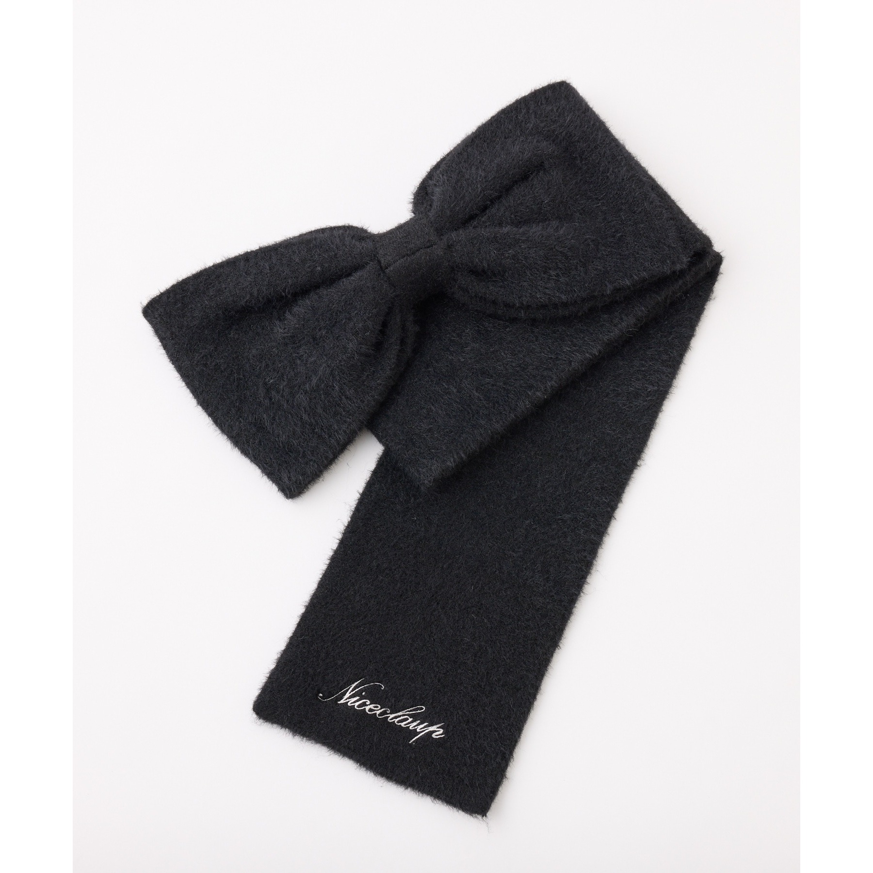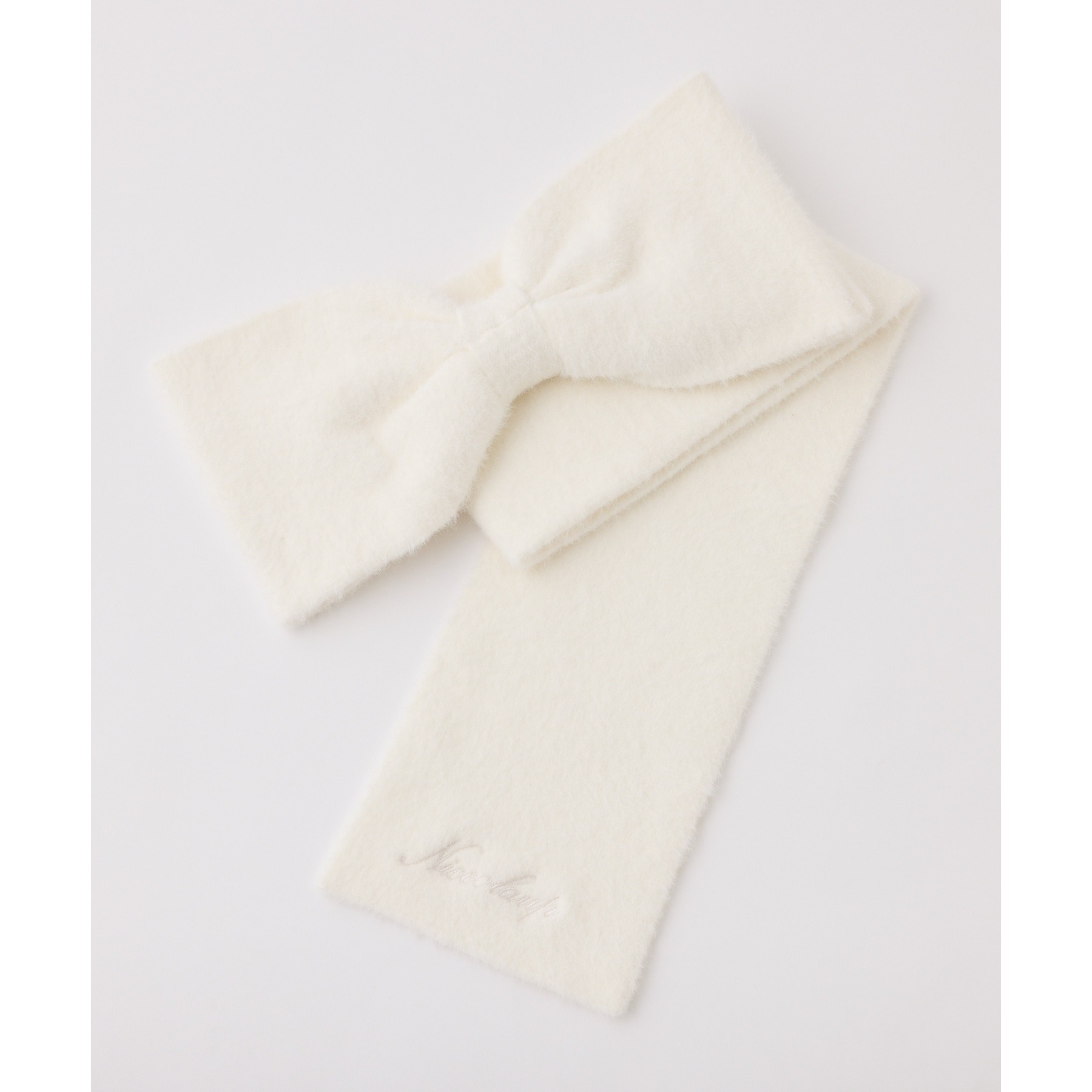 首元に巻くだけで大きなリボンが完成するマフラー。