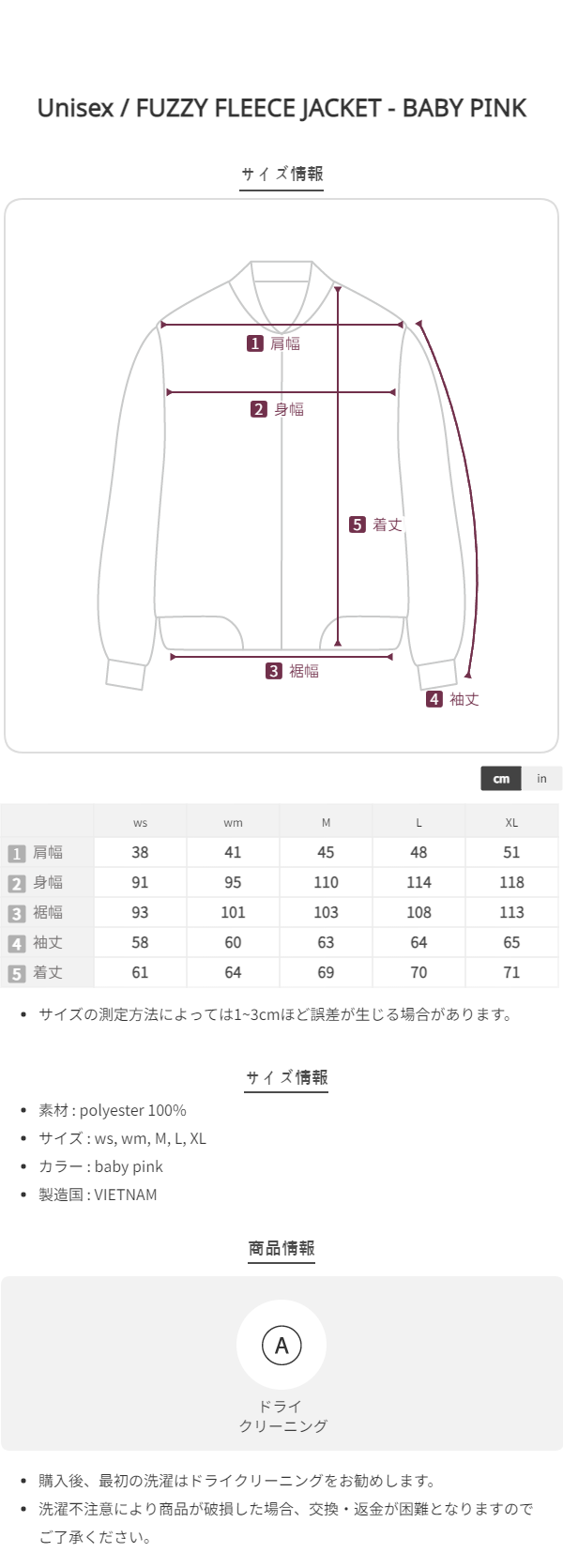[韓国限定レーベル] FUZZY FLEECE JACKET - BABY PINK
