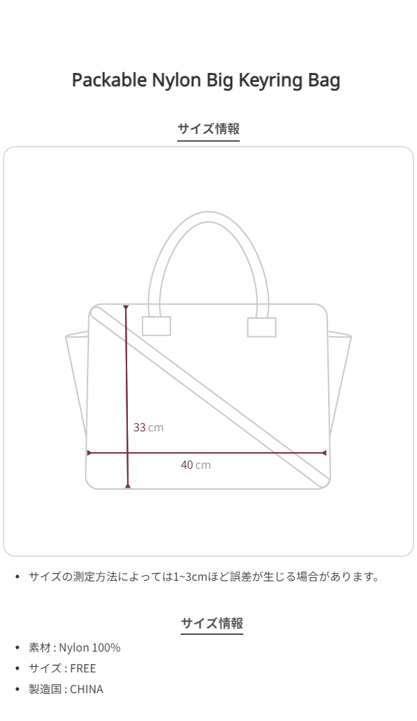 Packable Nylon Big Keyring Bag Gray