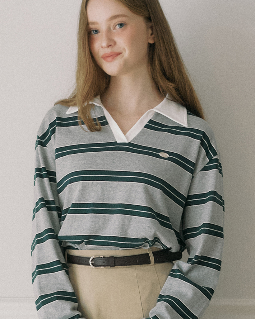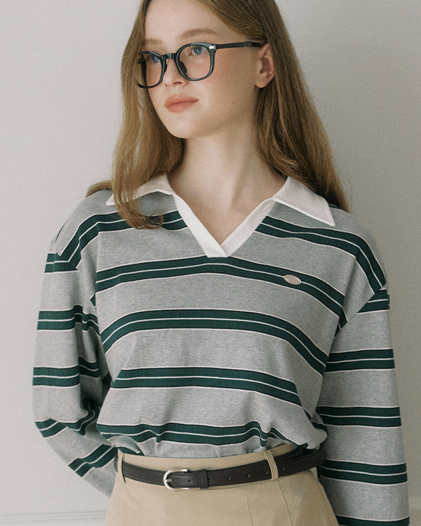Stripe Logo Collar Sweatshirt - Melange Grey