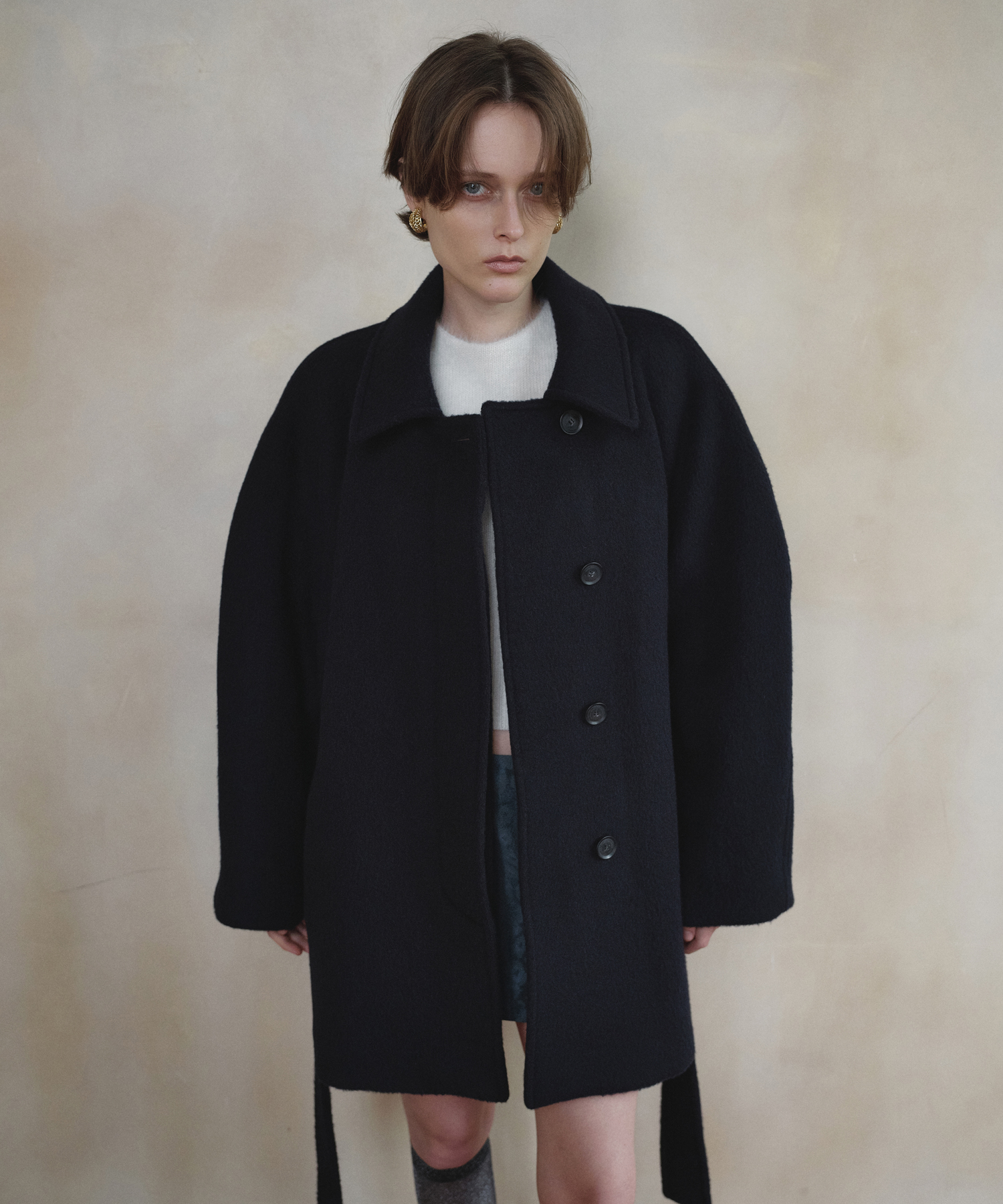 【購入特典】VOLUME SLEEVE WOOL HALF COAT_NAVY
