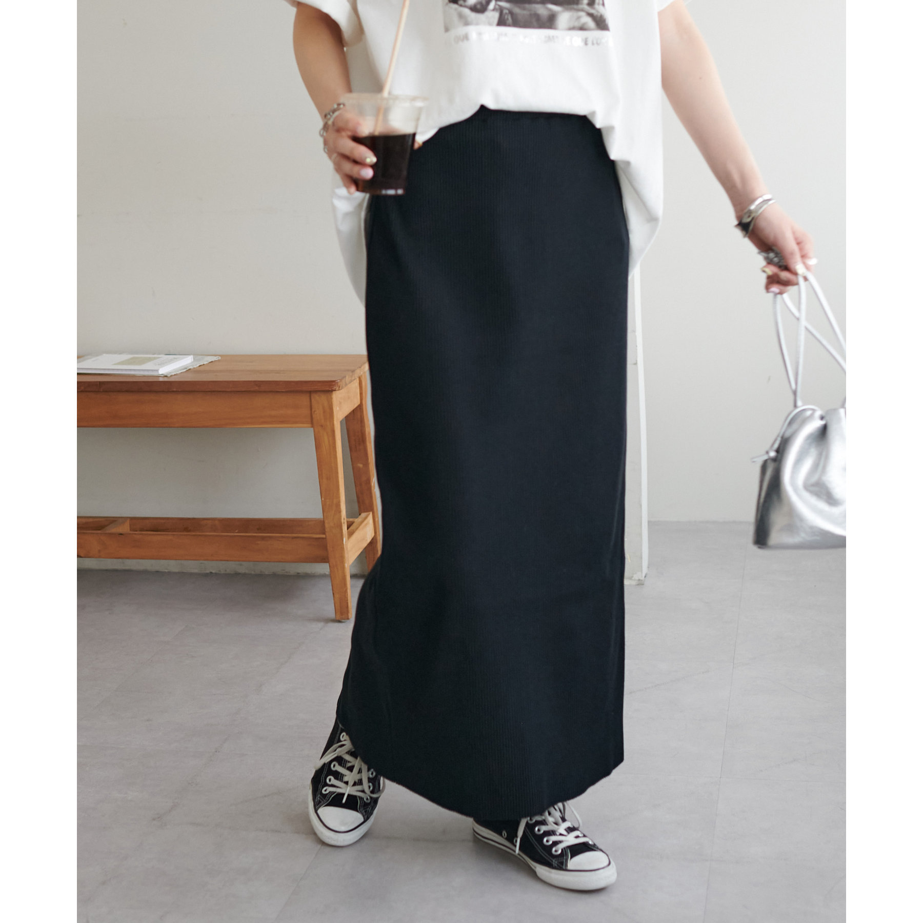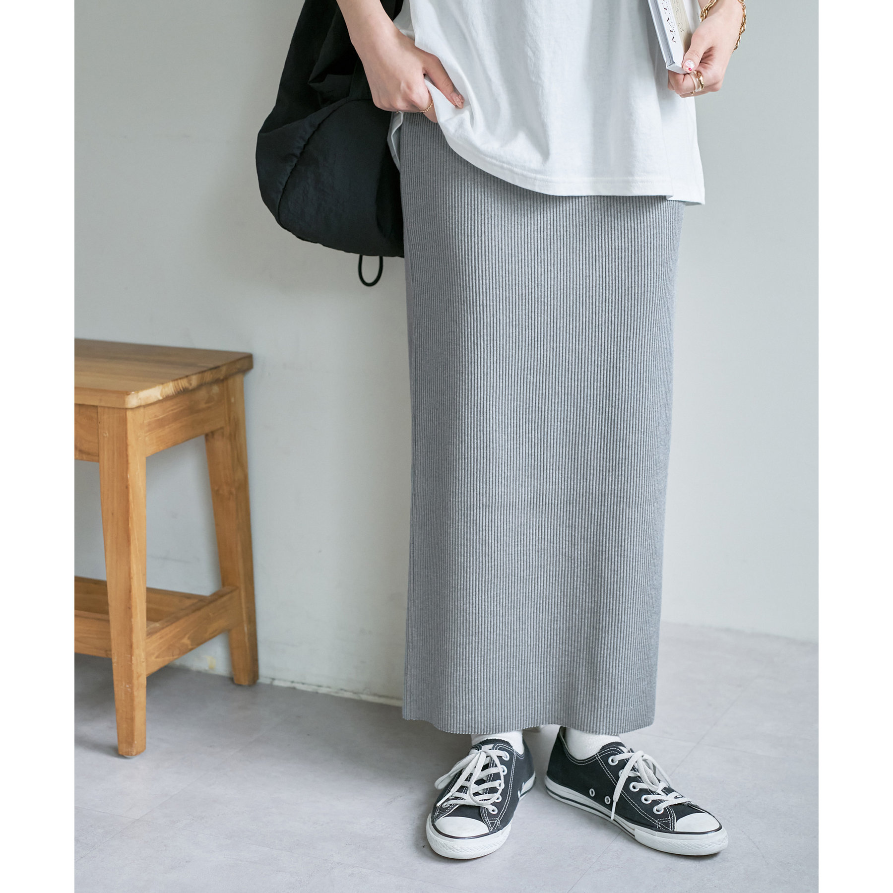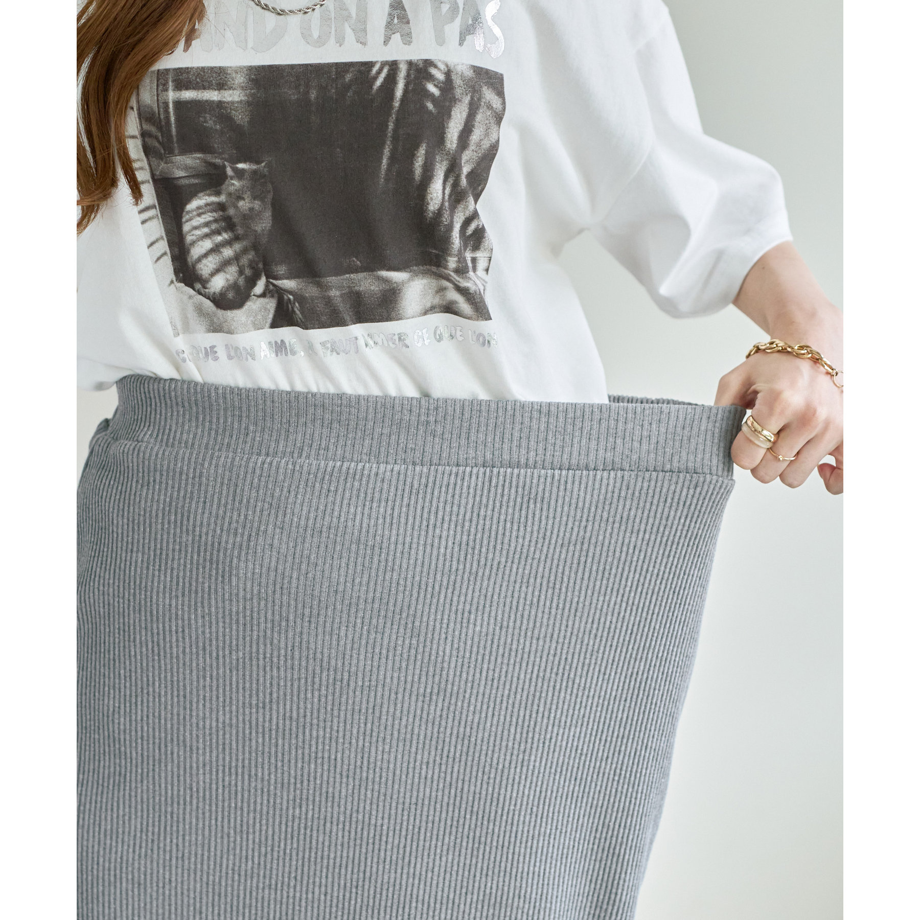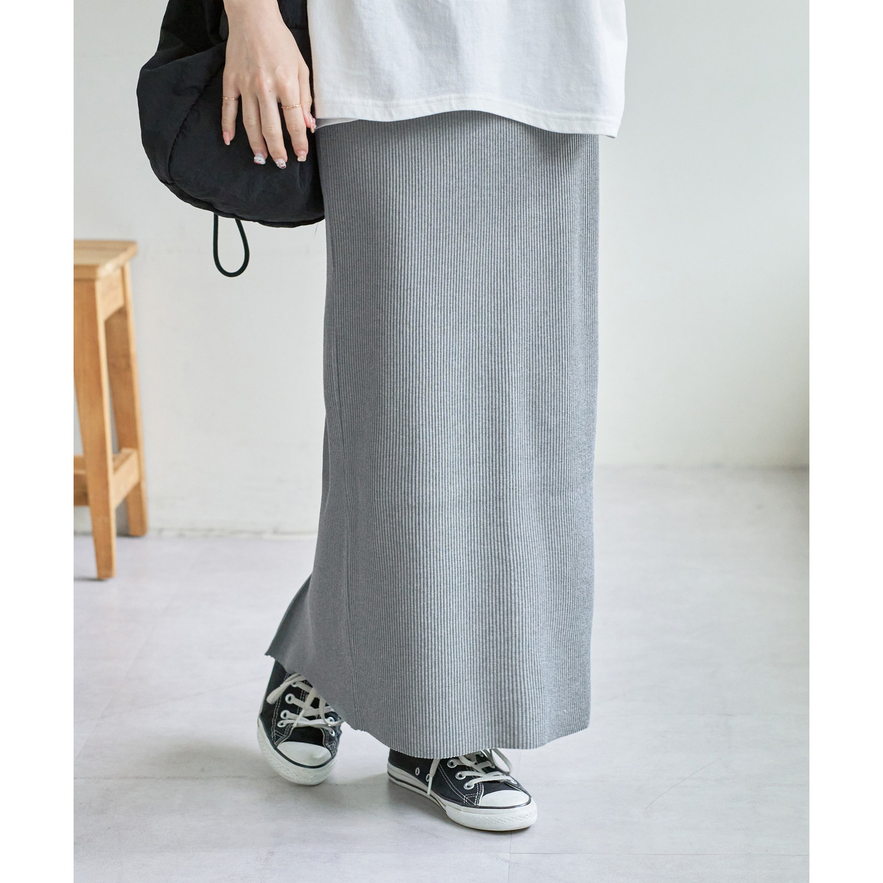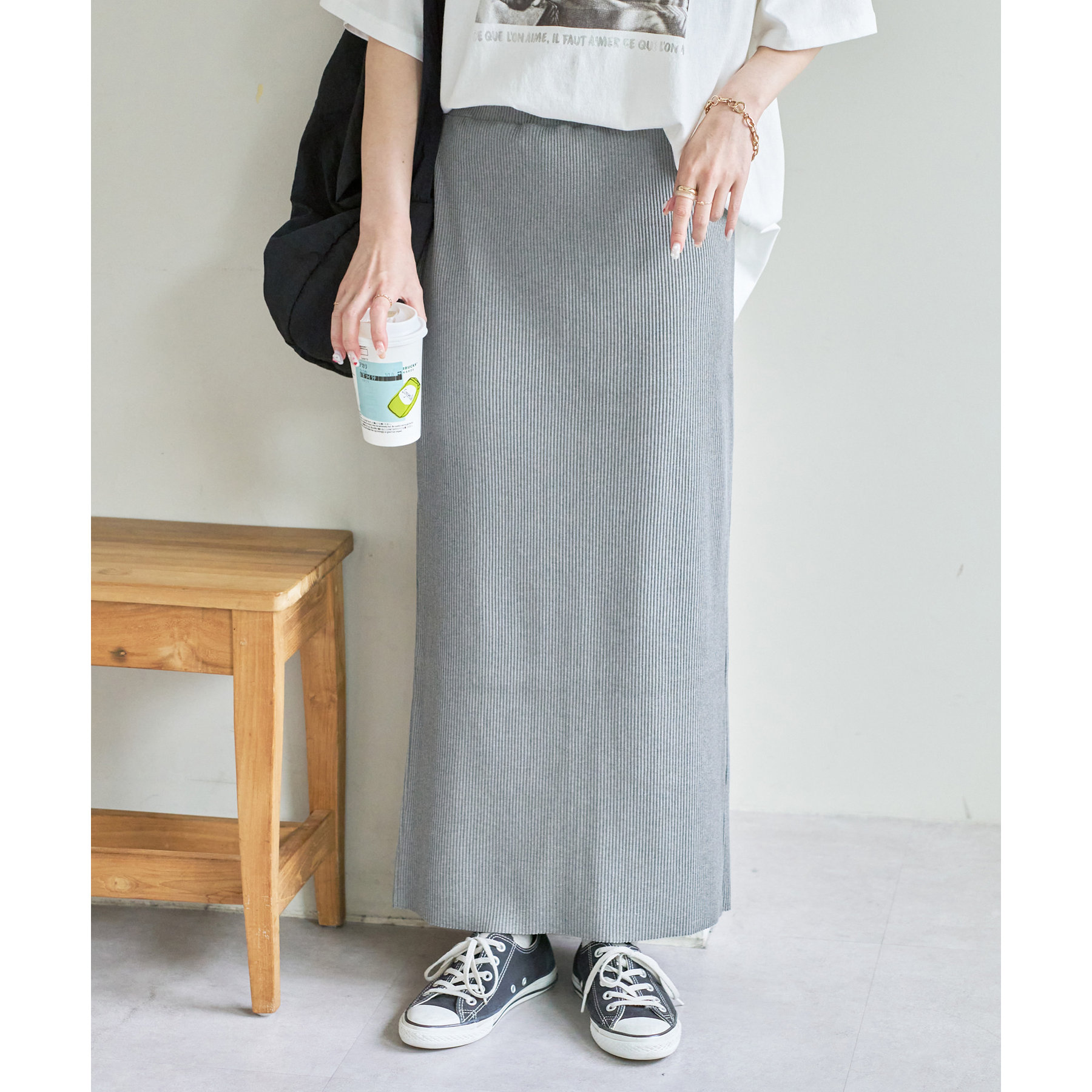 リブ仕様でカジュアルにも着こなせるスカートはTシャツやスウェットとの相性抜群〇
