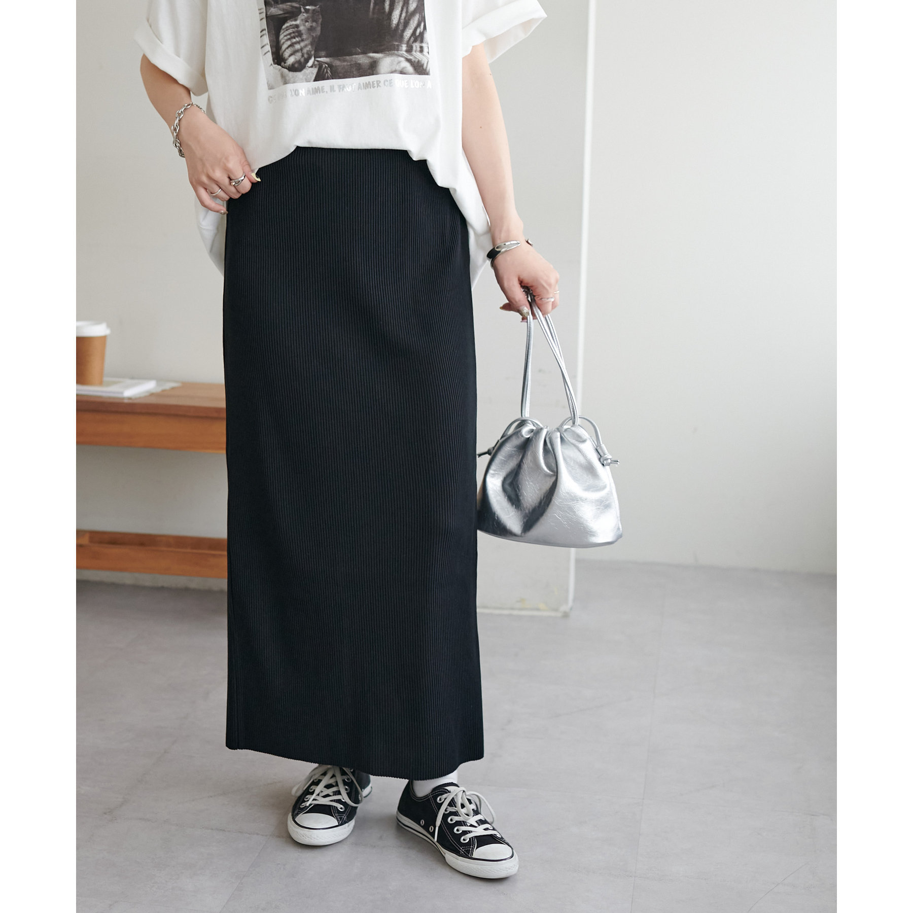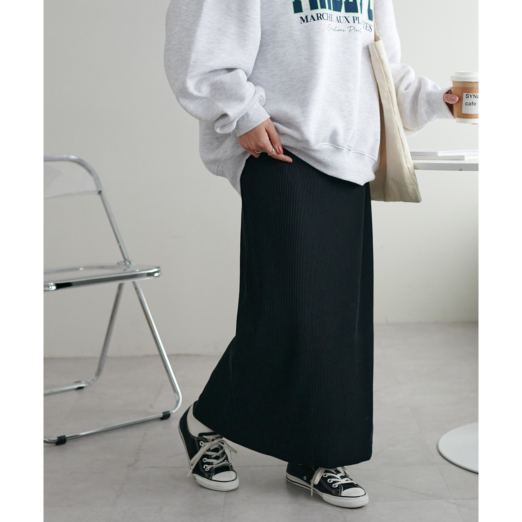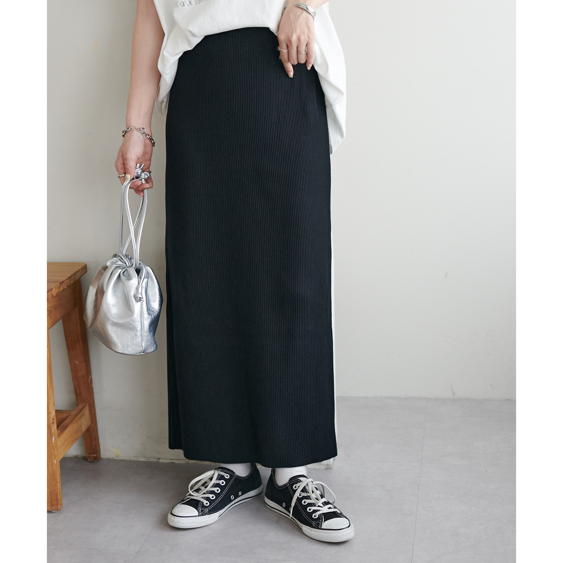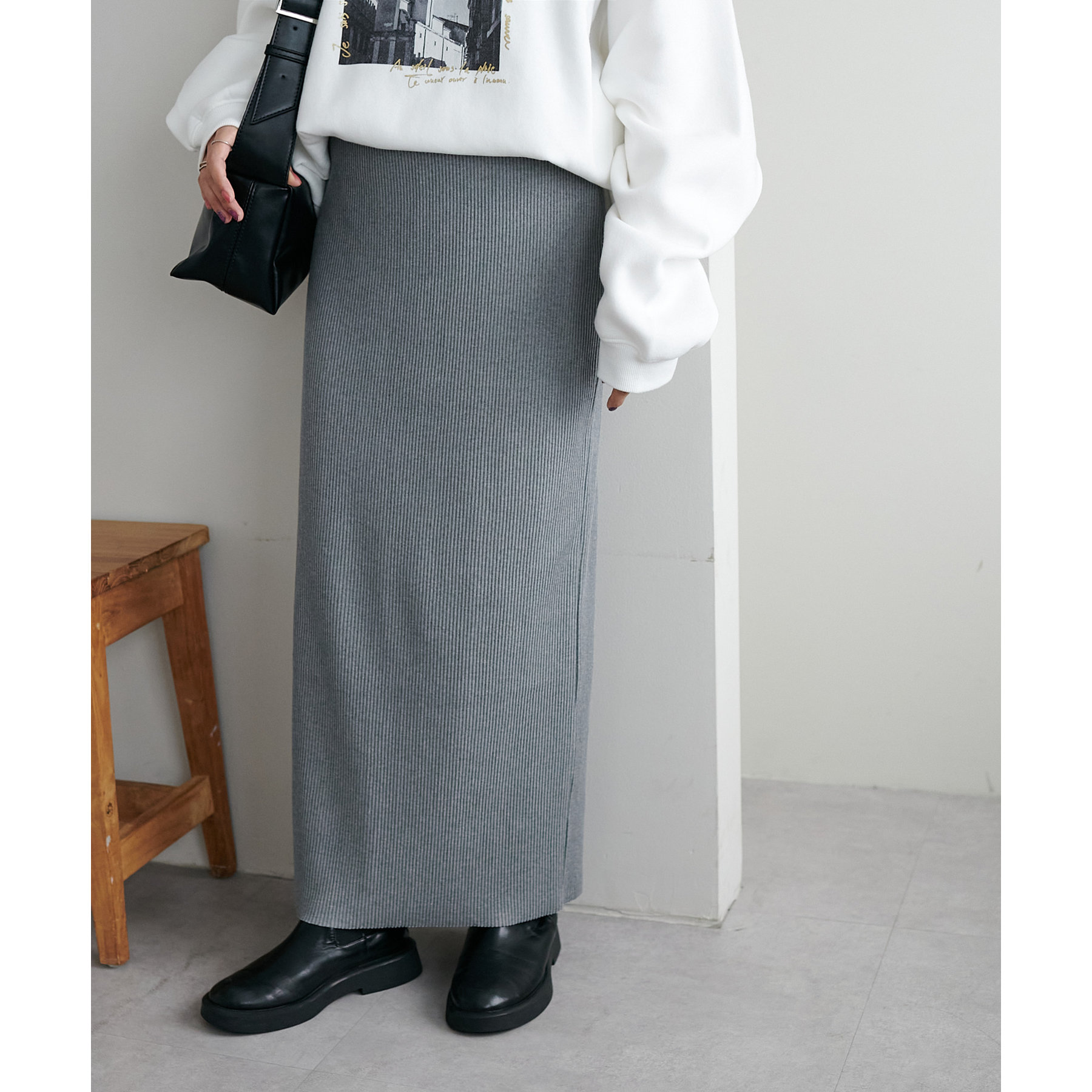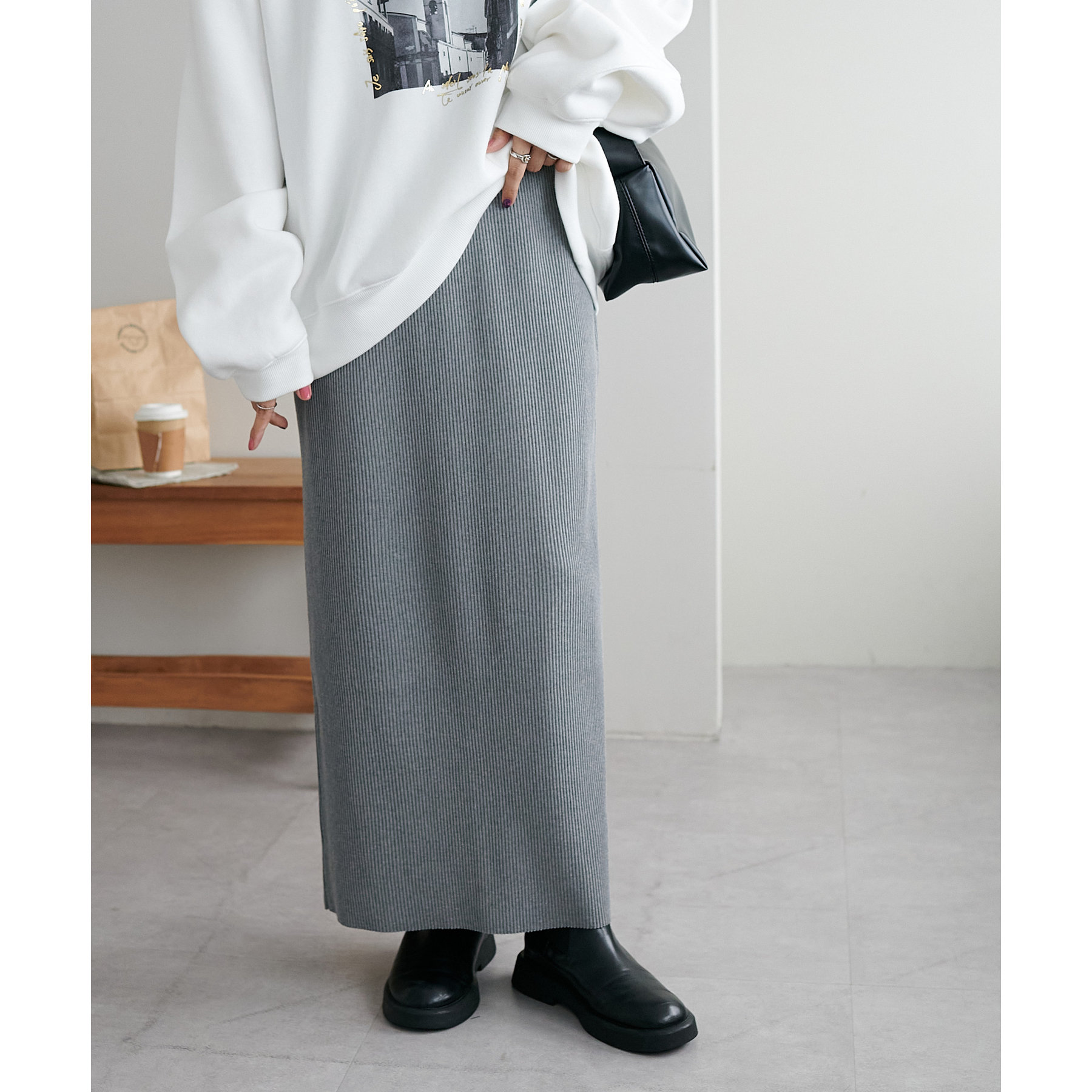 リブ仕様でカジュアルにも着こなせるスカートはTシャツやスウェットとの相性抜群〇