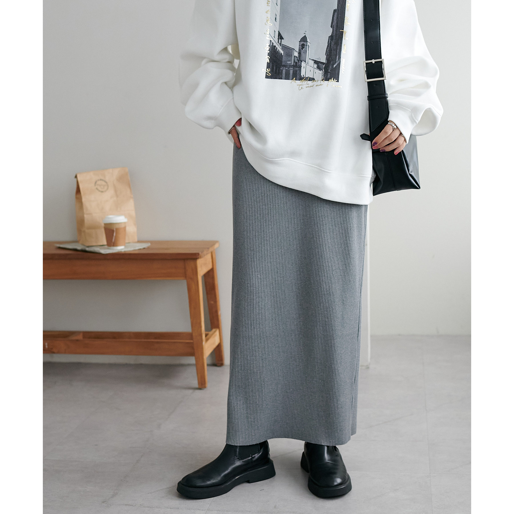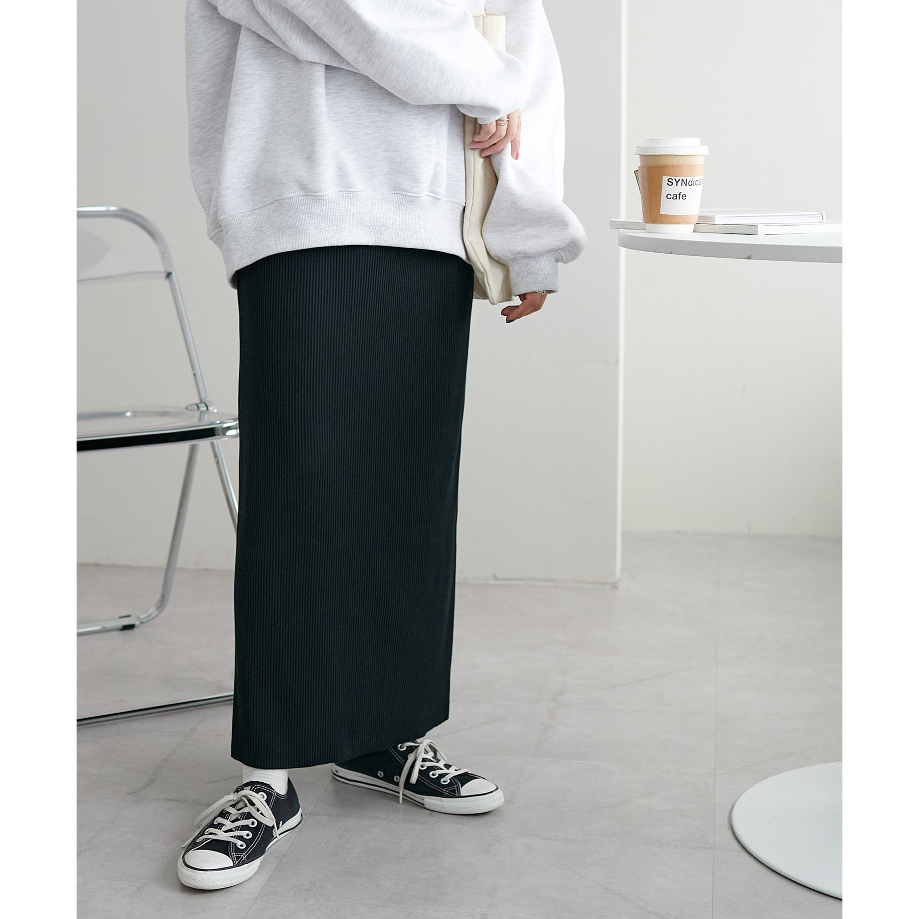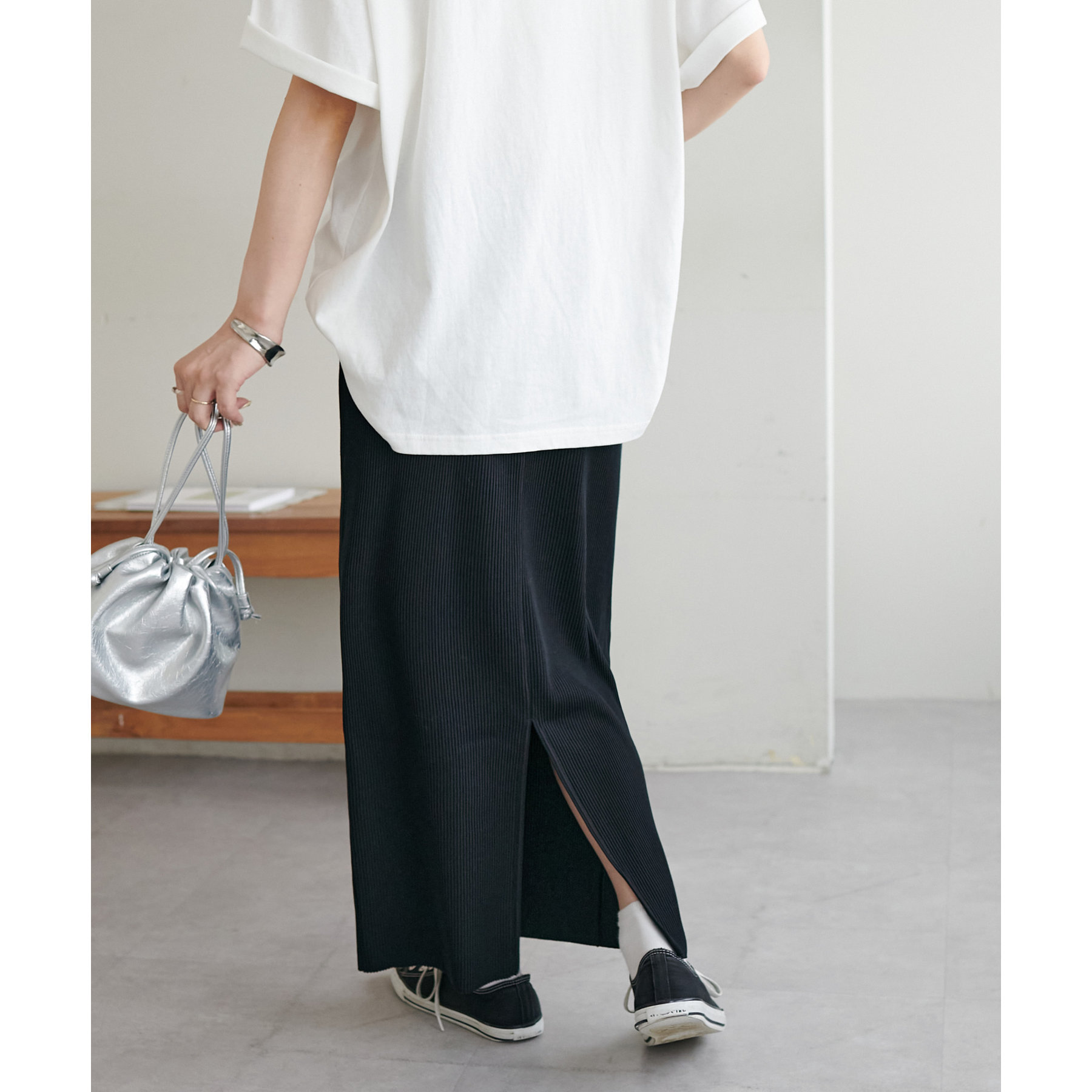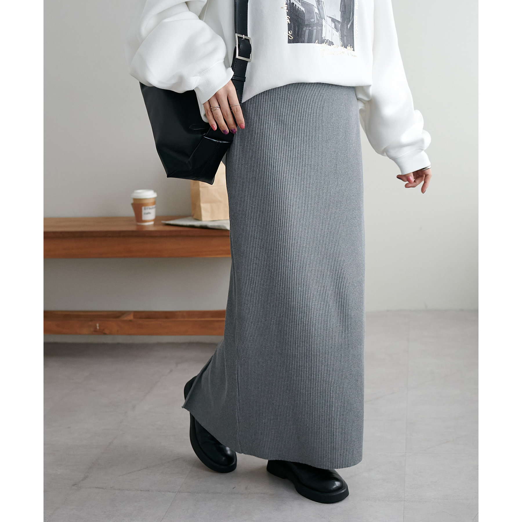 リブ仕様でカジュアルにも着こなせるスカートはTシャツやスウェットとの相性抜群〇