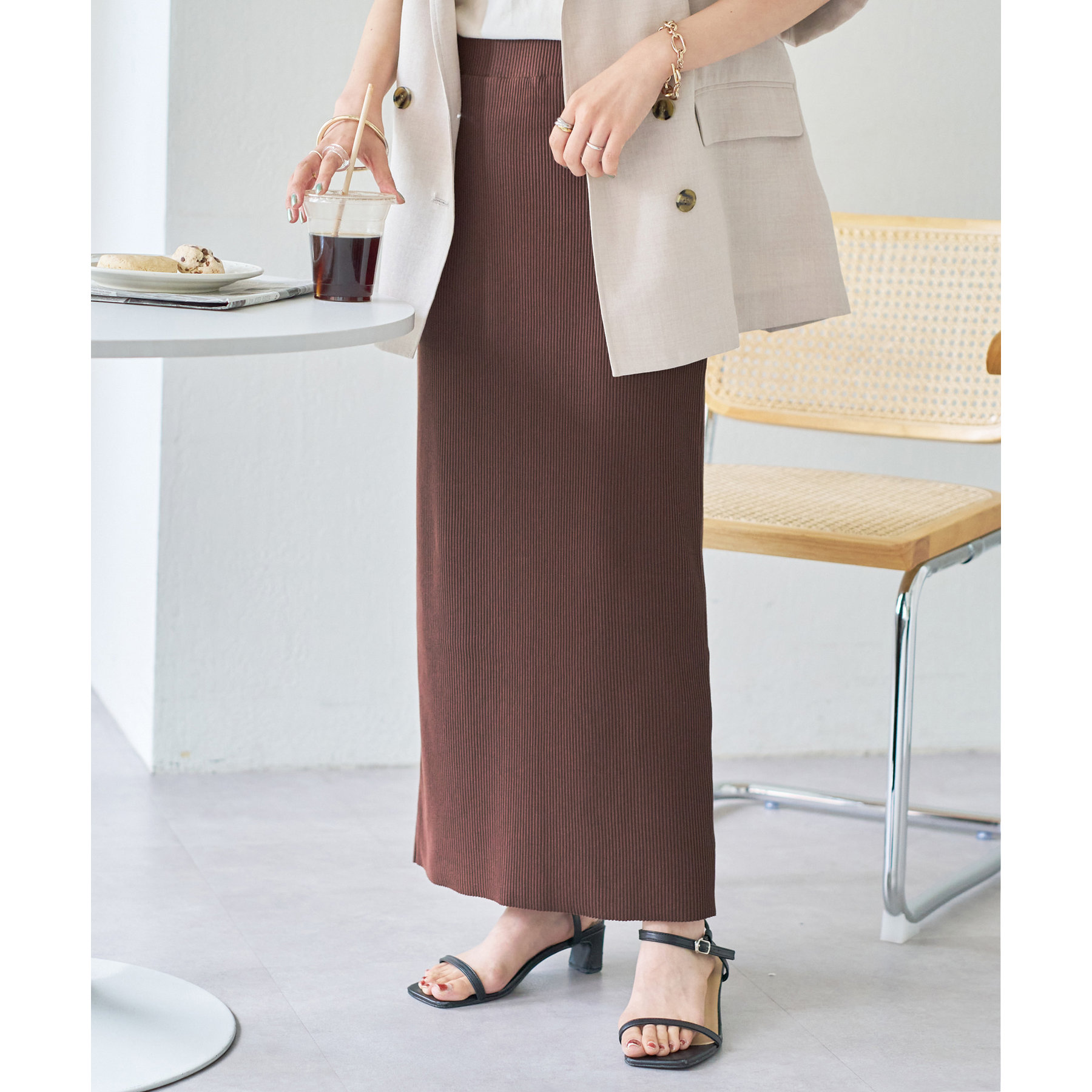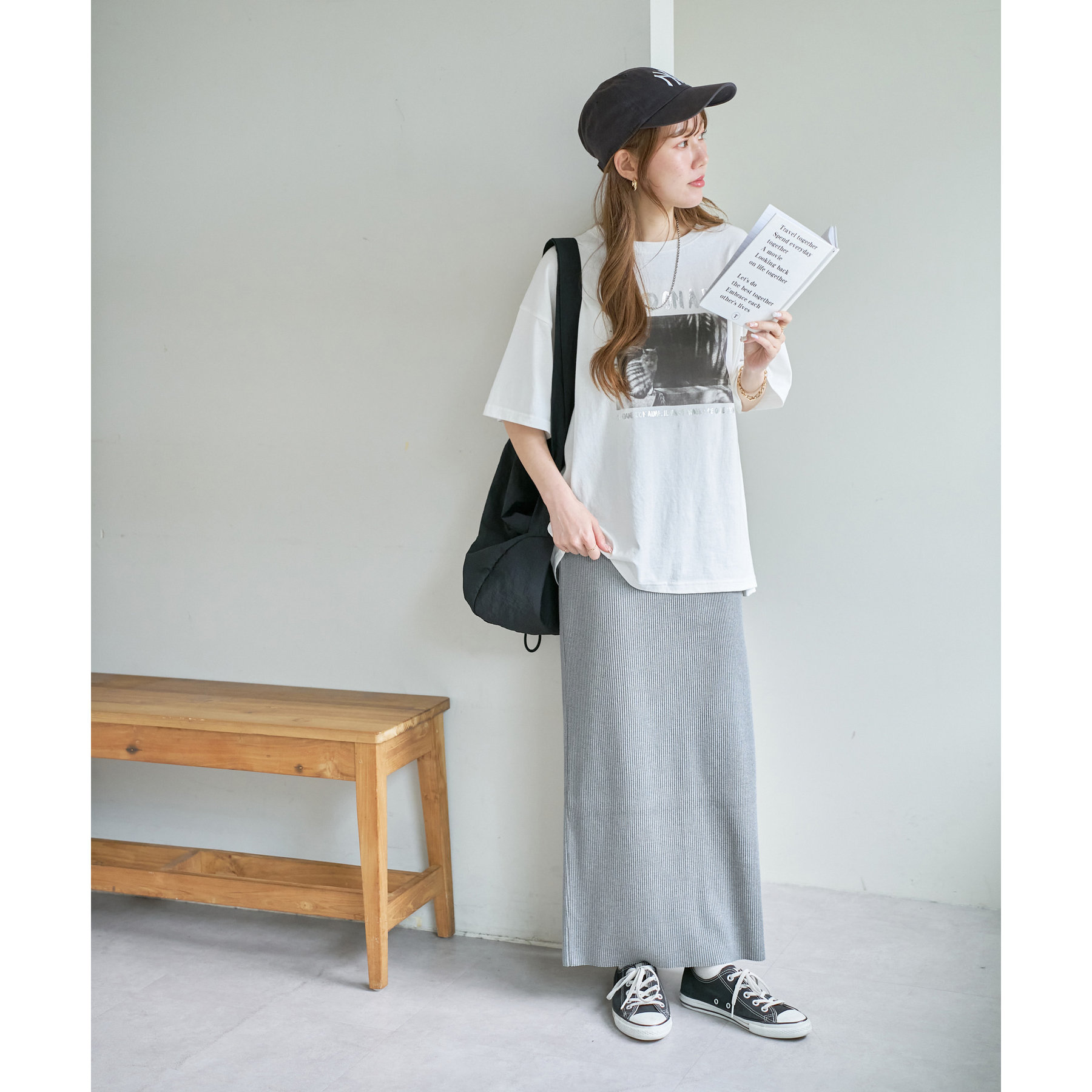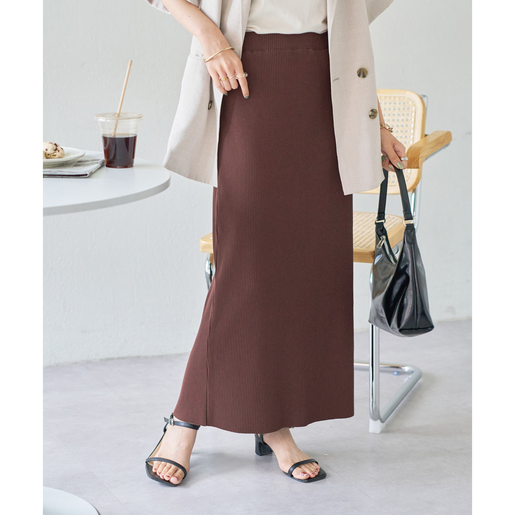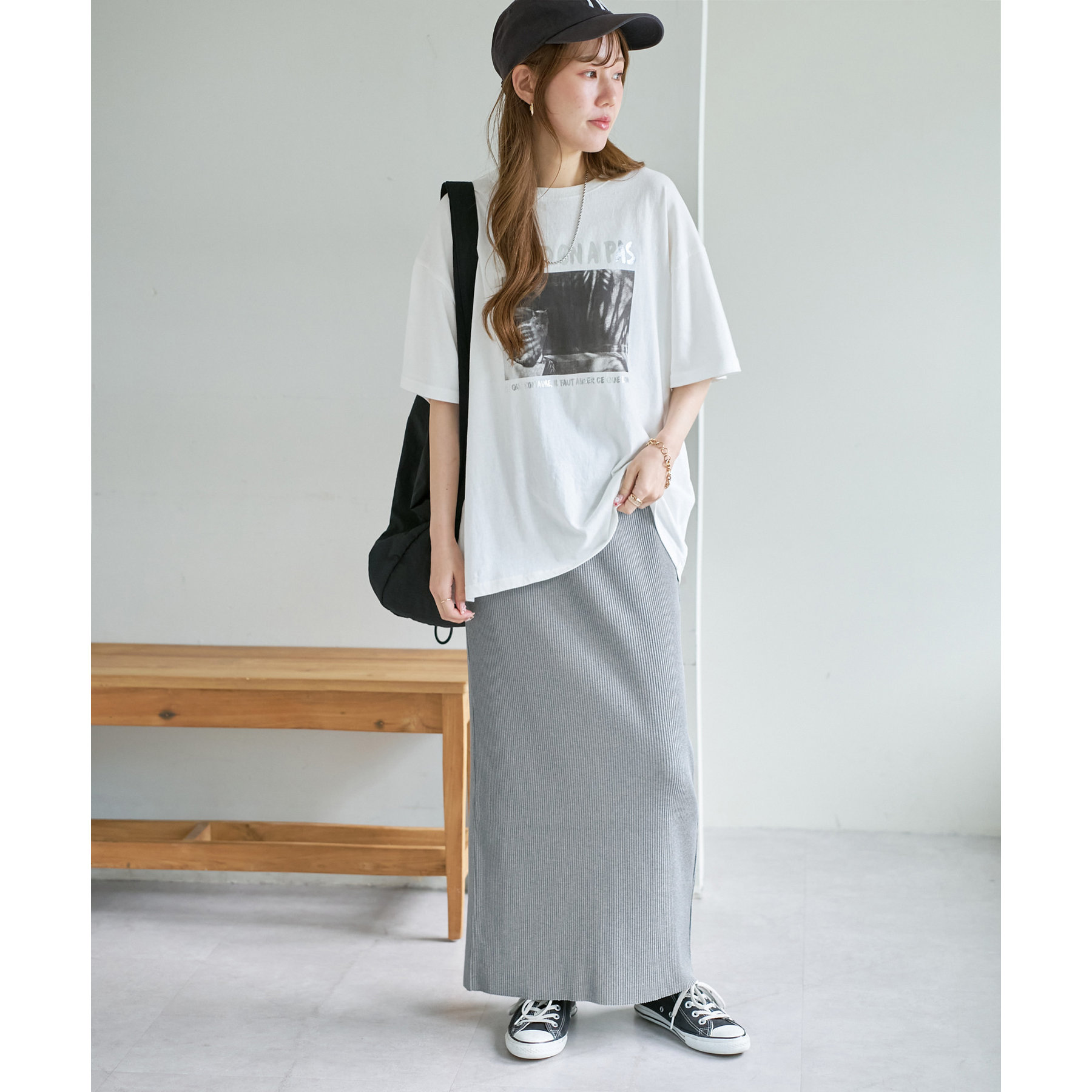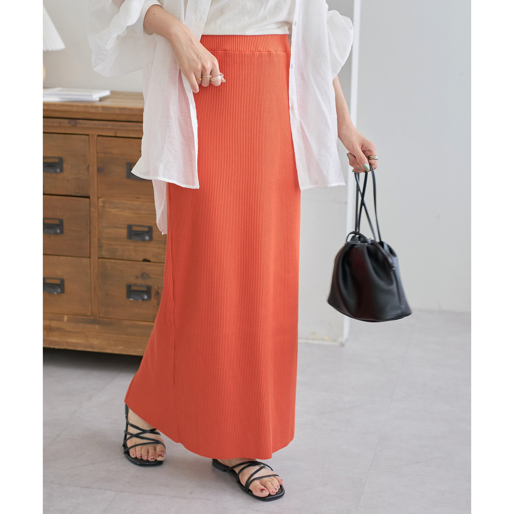 リブ仕様でカジュアルにも着こなせるスカートはTシャツやスウェットとの相性抜群〇