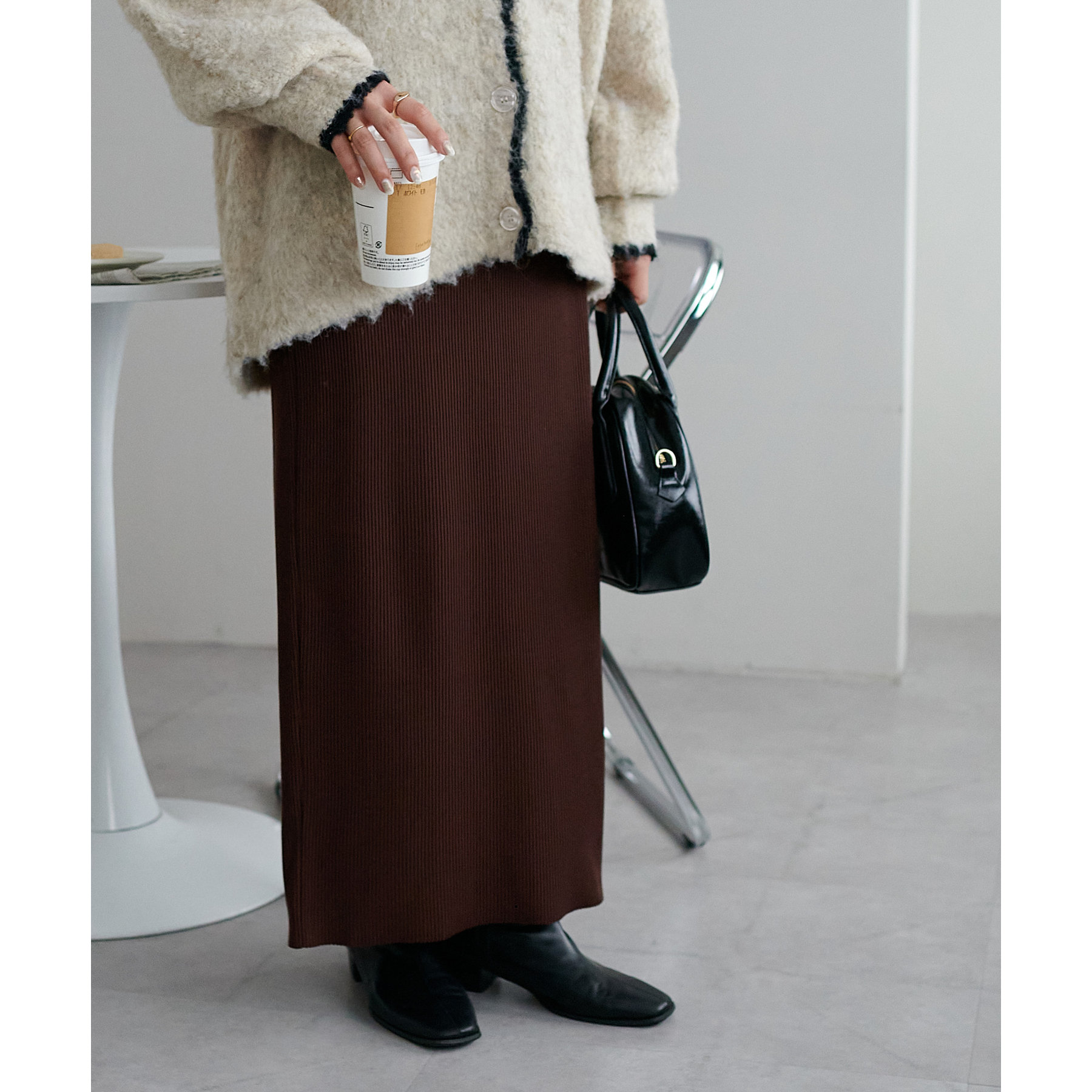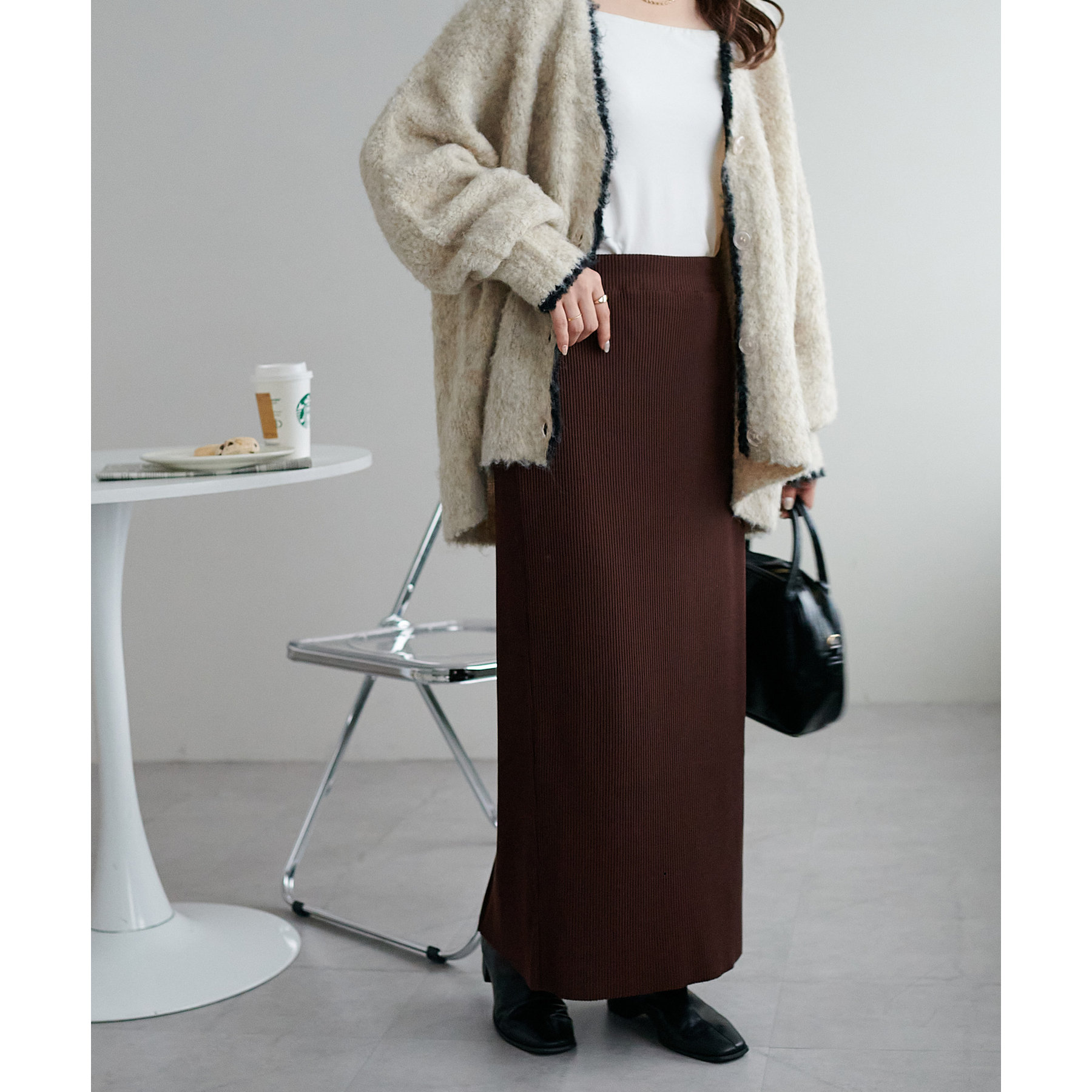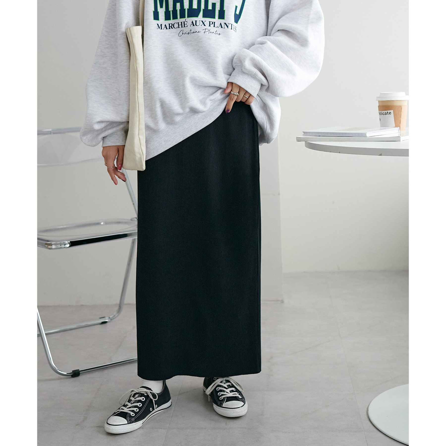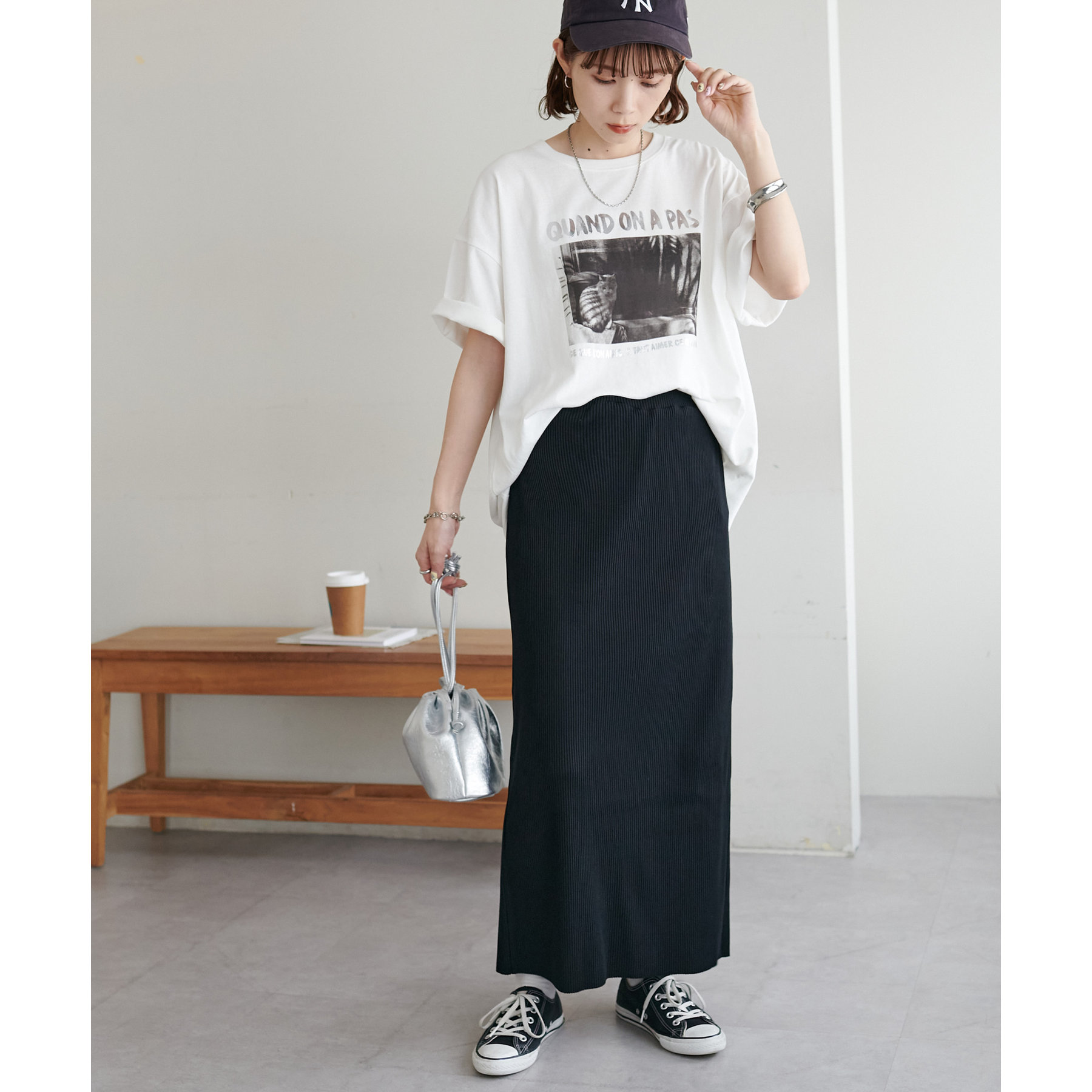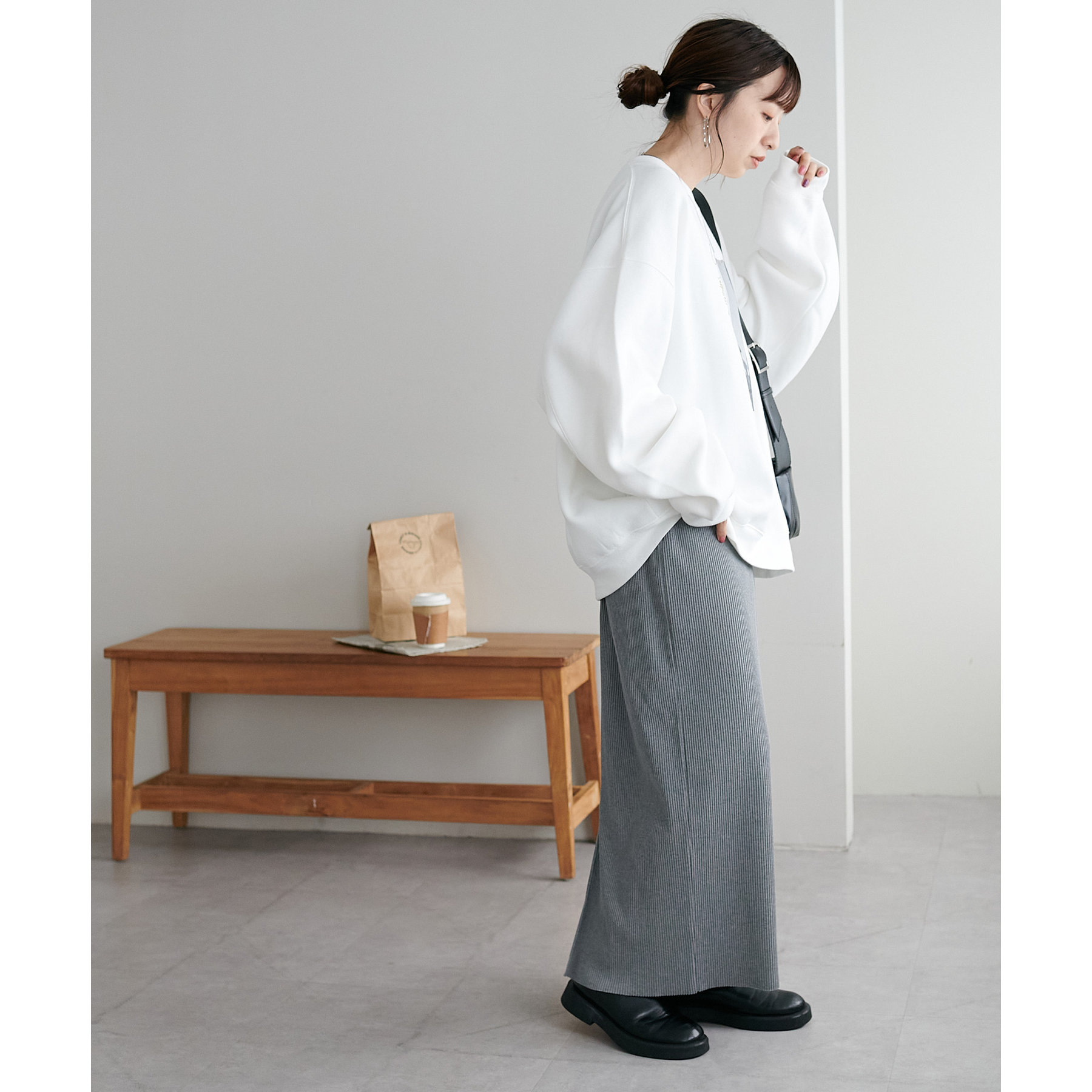 リブ仕様でカジュアルにも着こなせるスカートはTシャツやスウェットとの相性抜群〇