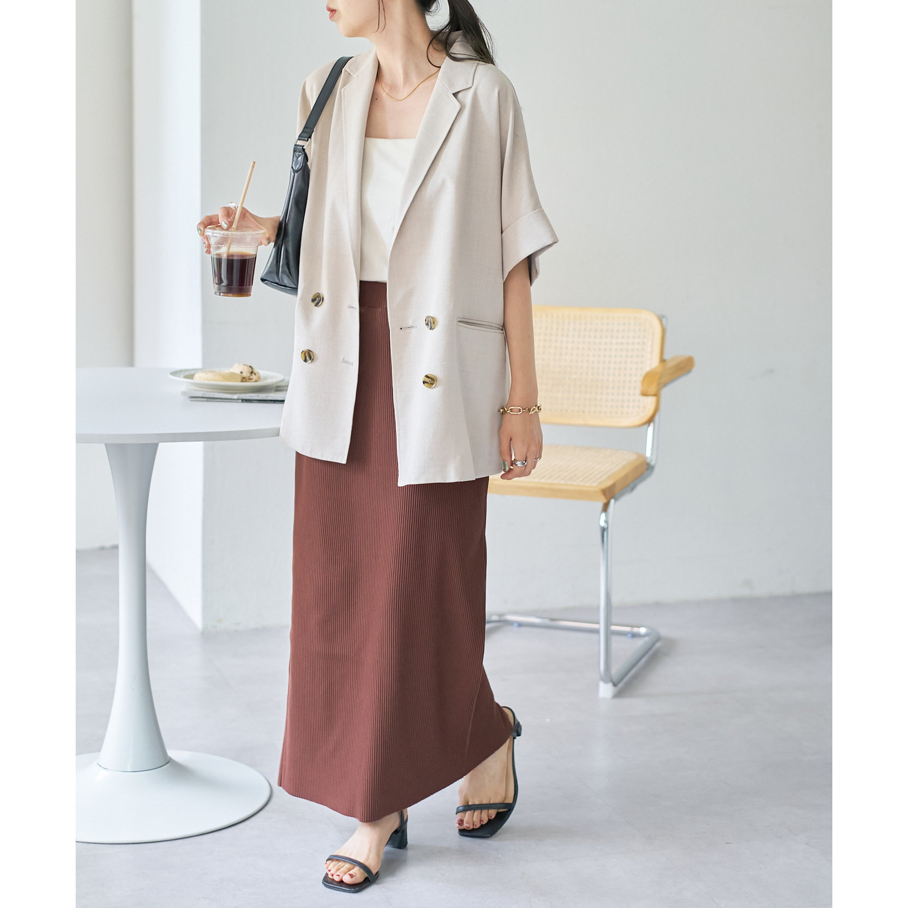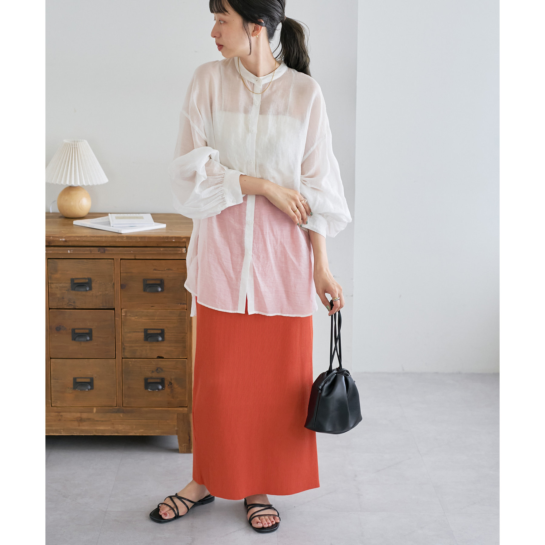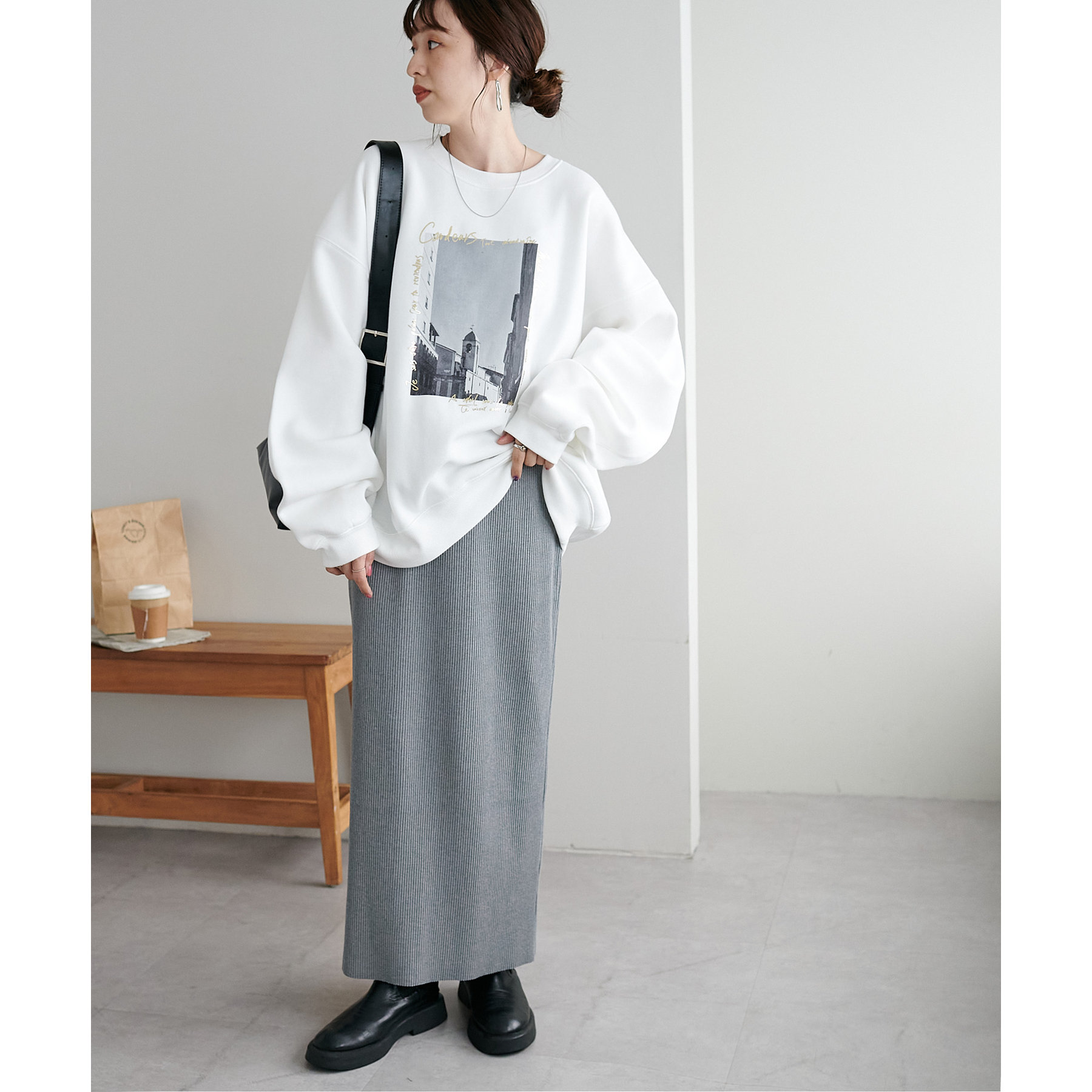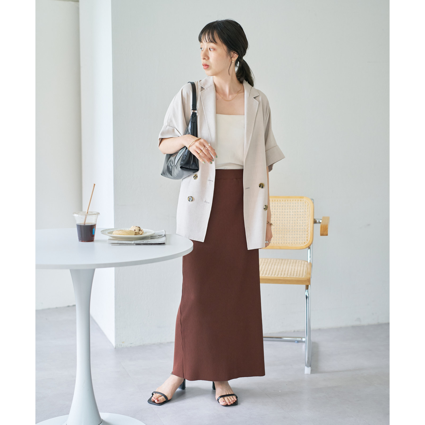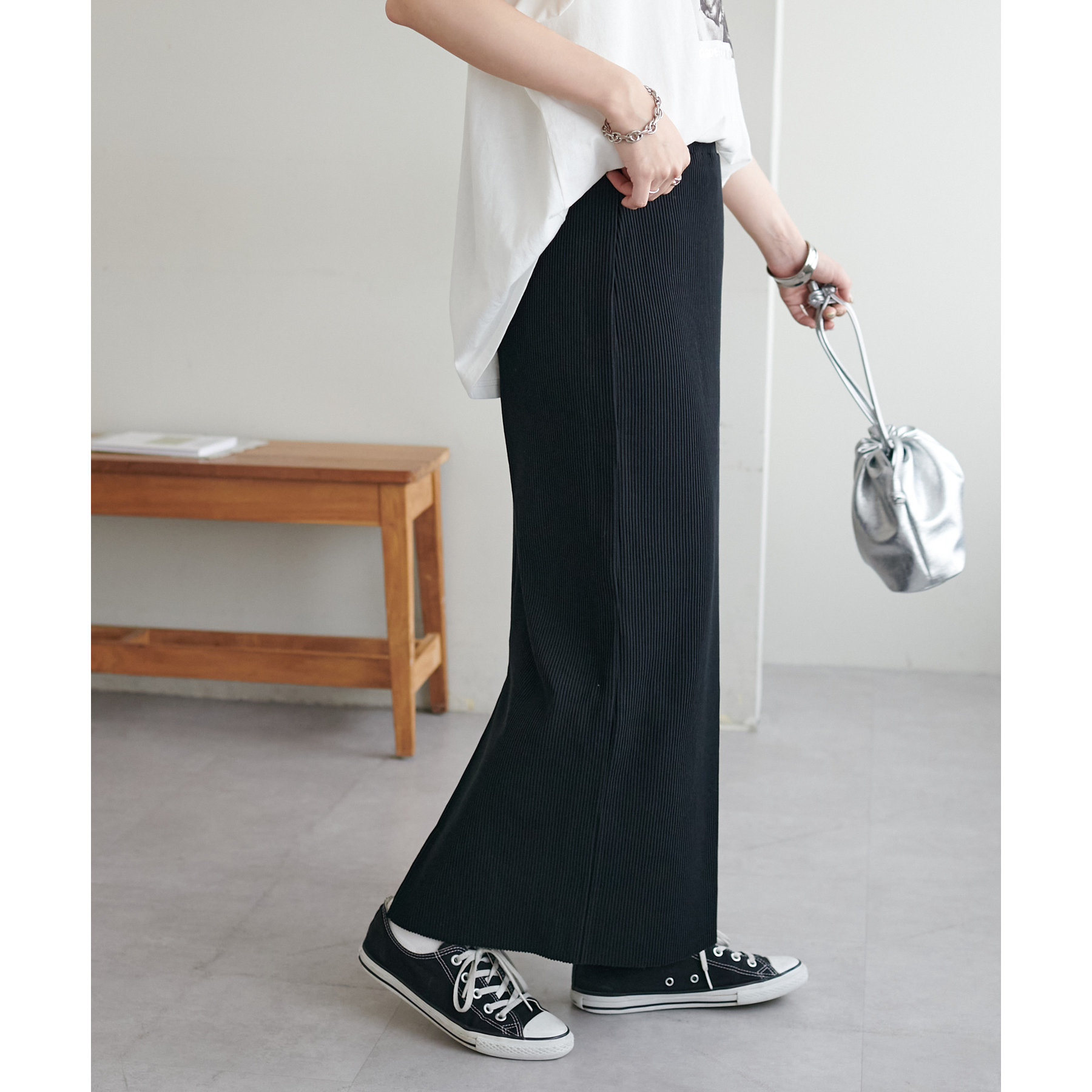 リブ仕様でカジュアルにも着こなせるスカートはTシャツやスウェットとの相性抜群〇