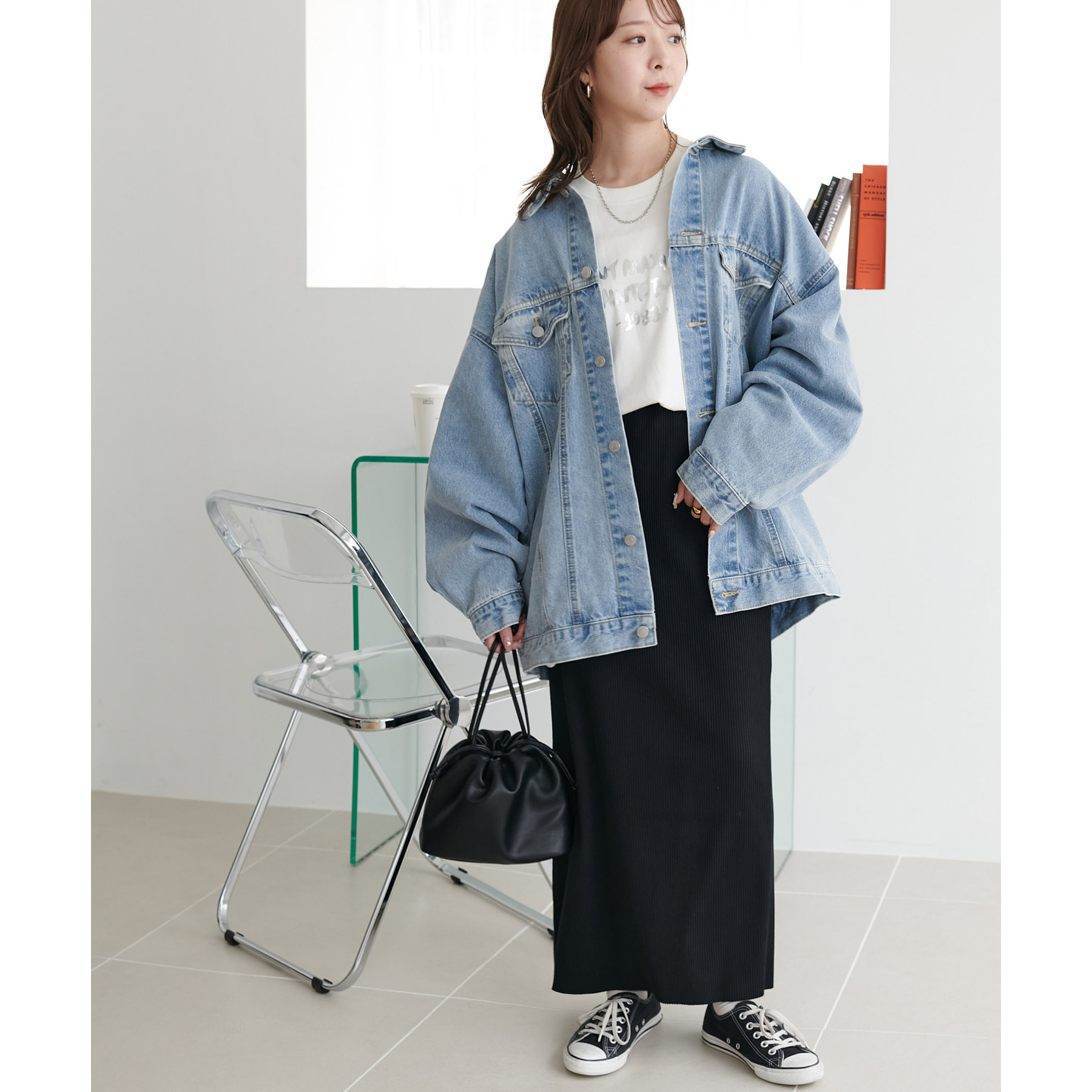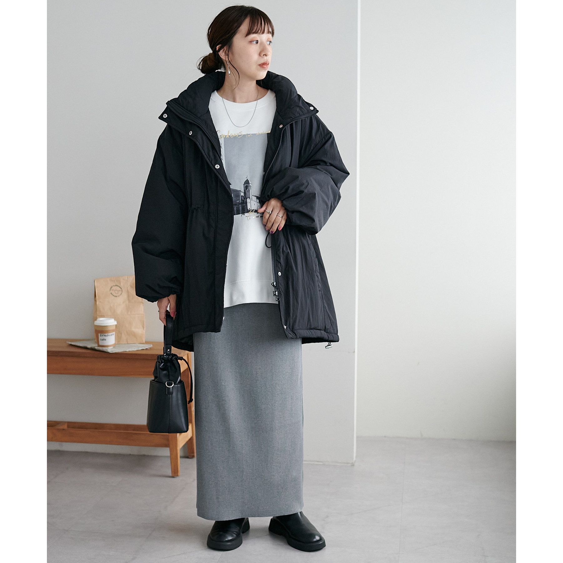 Iラインが綺麗に見えるスカートはボリューム感のあるトップスと合わせてもコーデにメリハリを演出します。