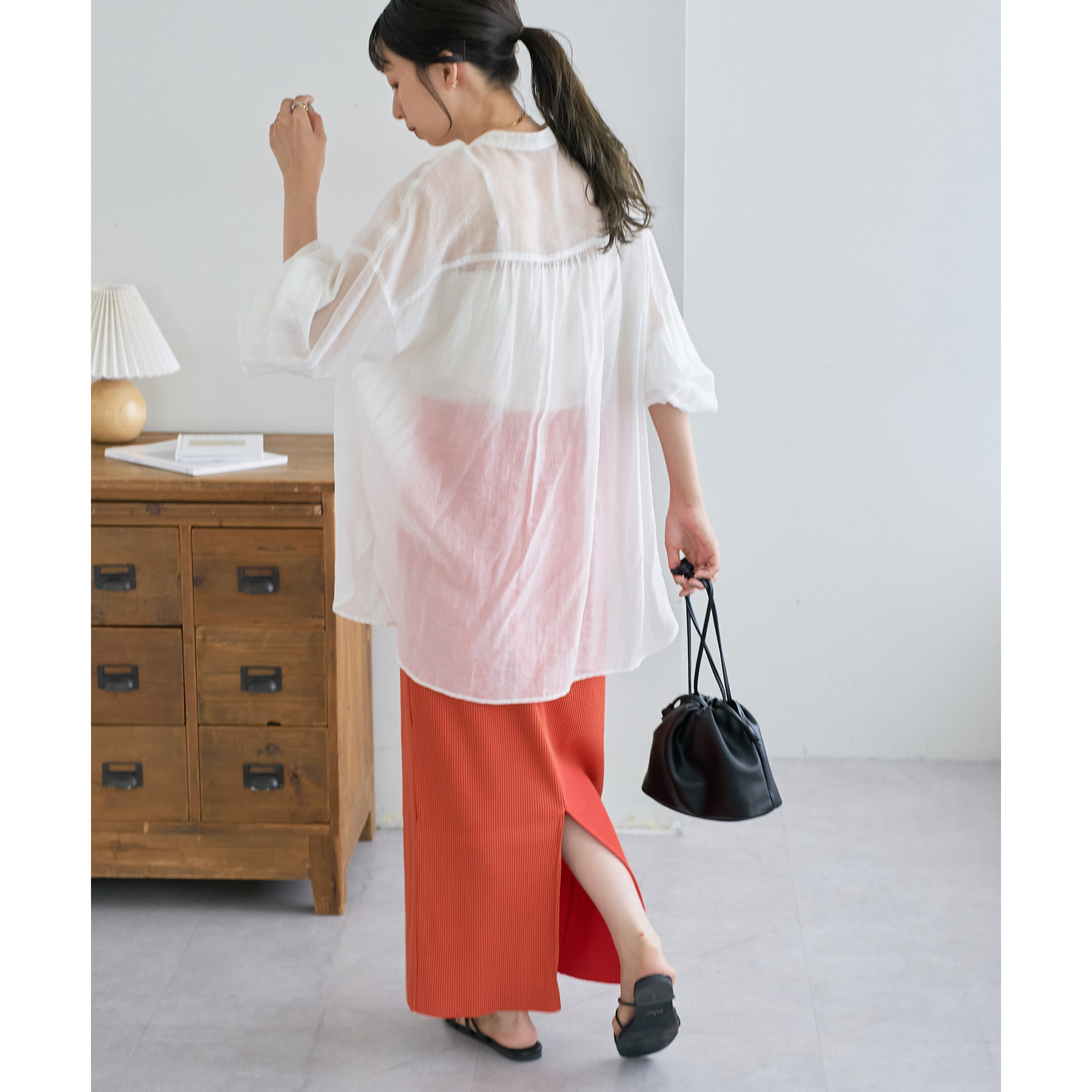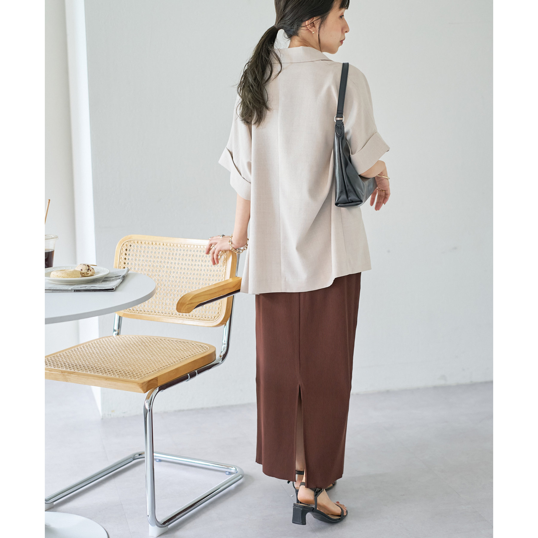 ナロースカートだと体のラインを拾うのが不安ですが、リブ仕様なので安心〇