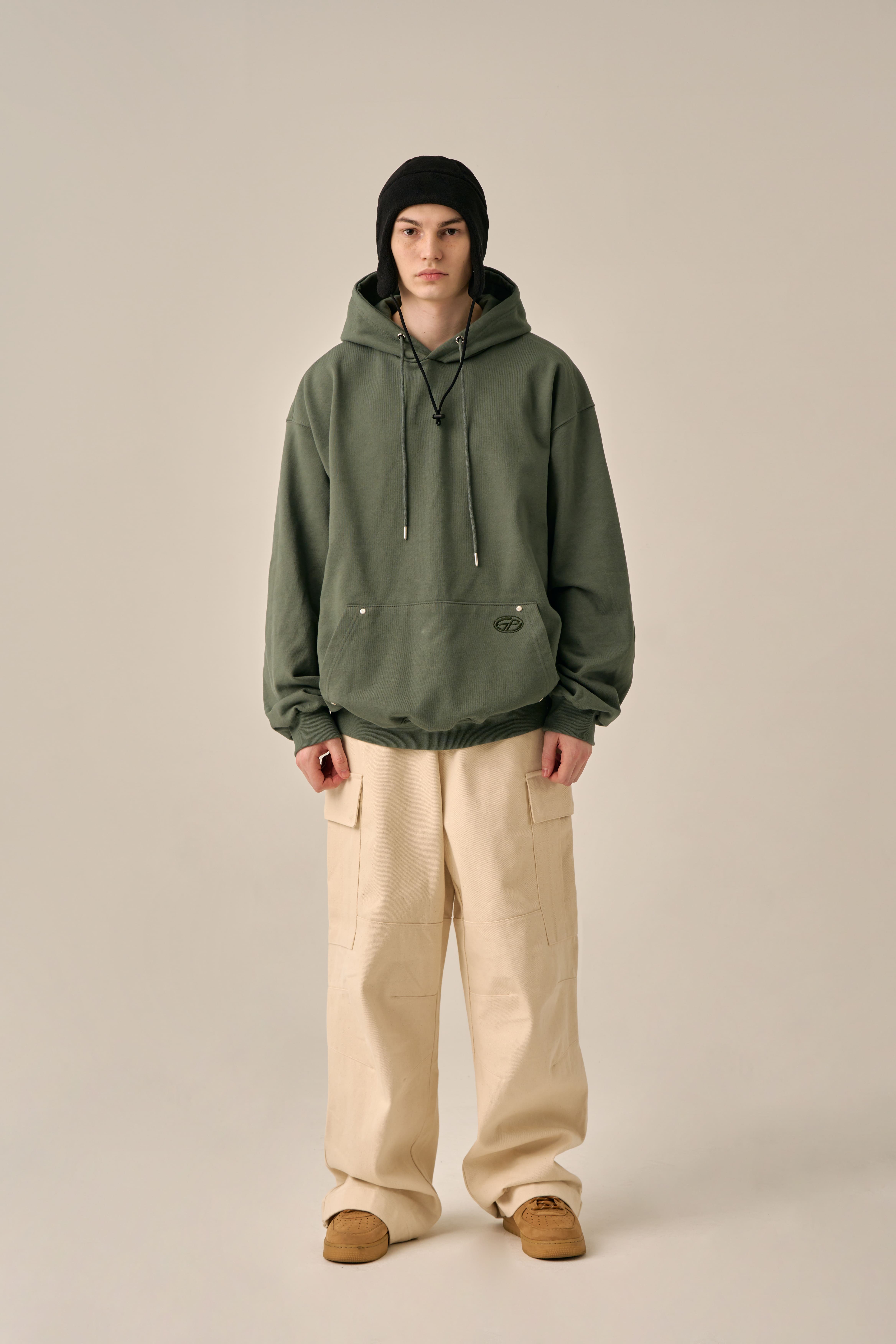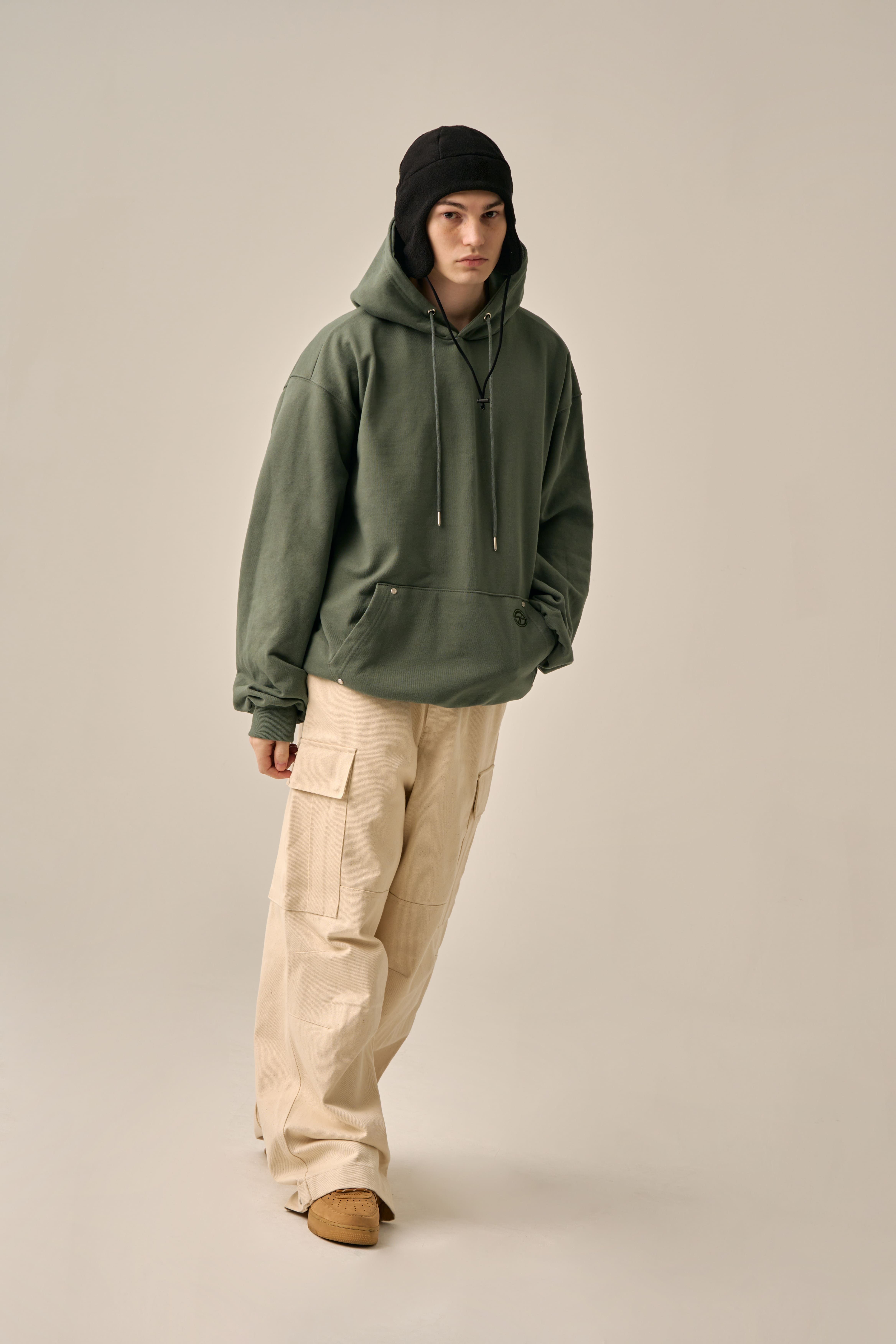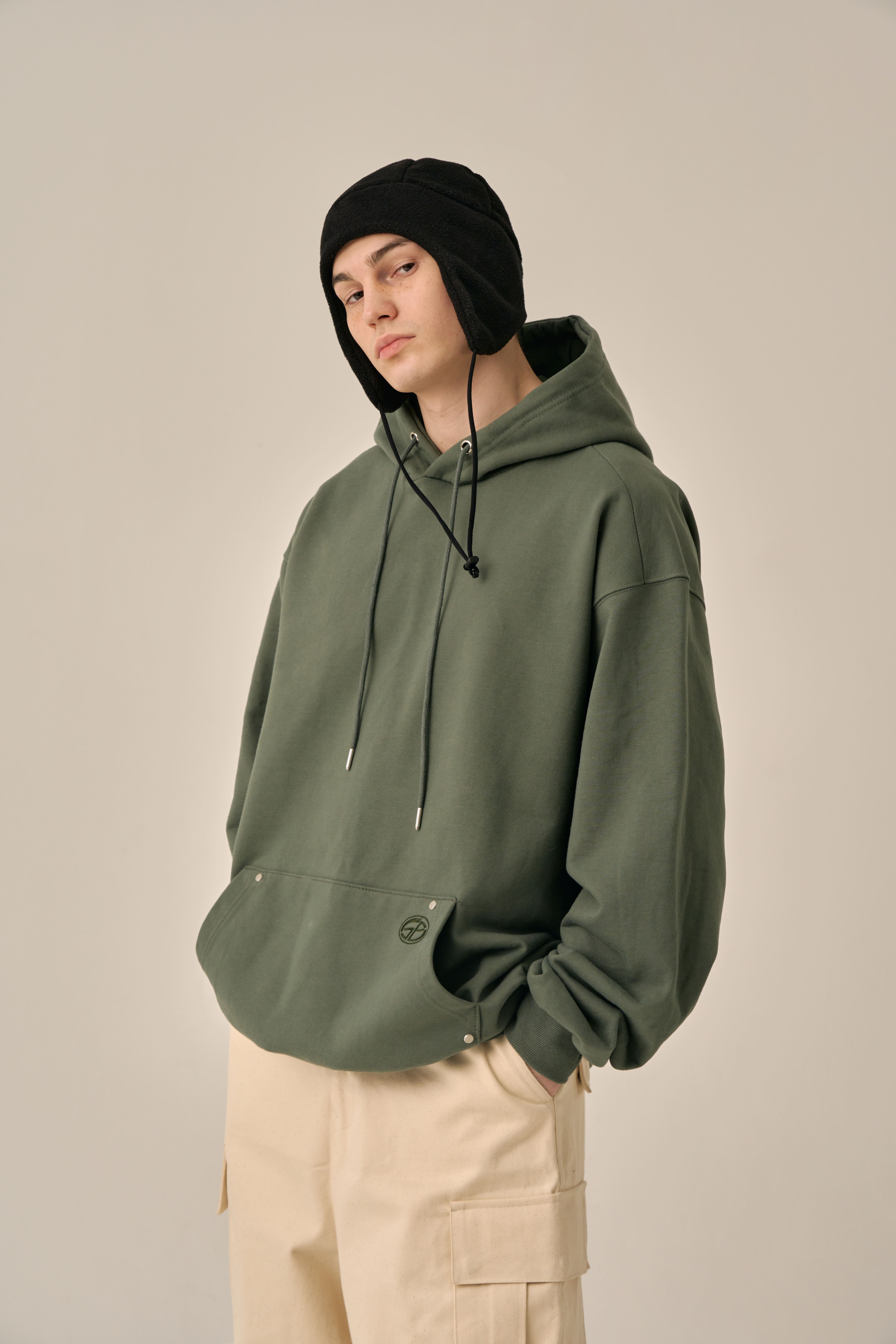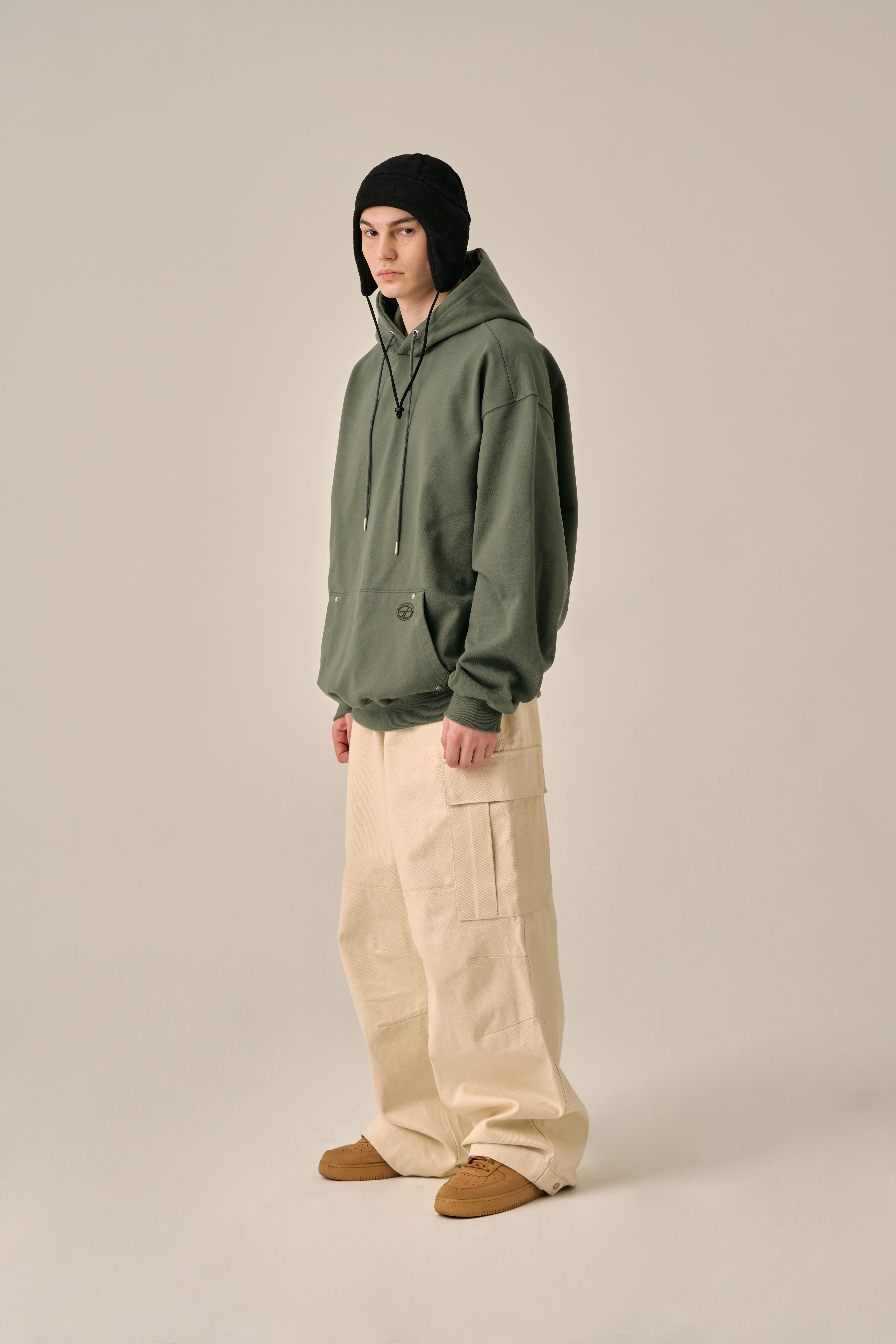 OVERSIZED MINI LOGO HOOD - KHAKI