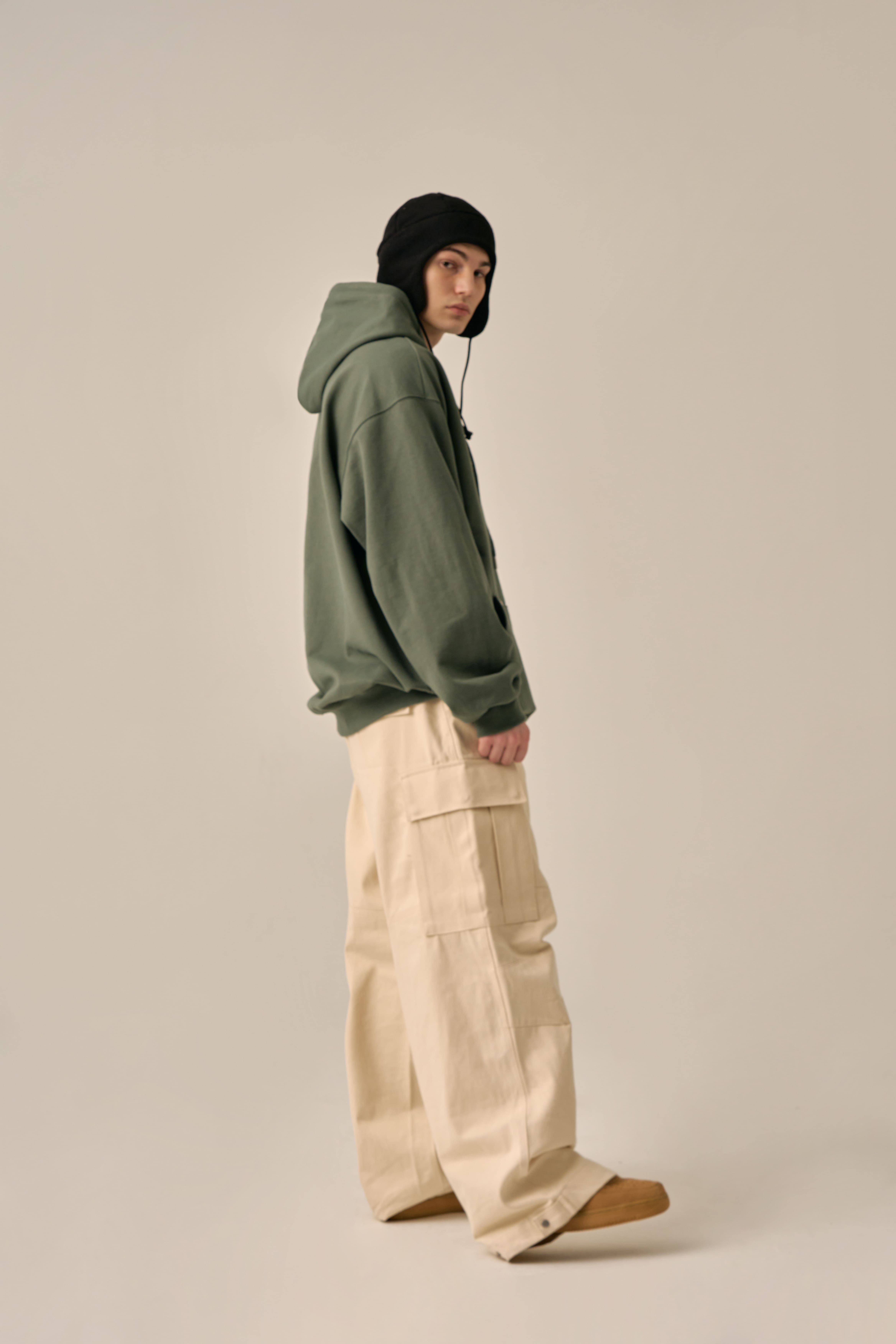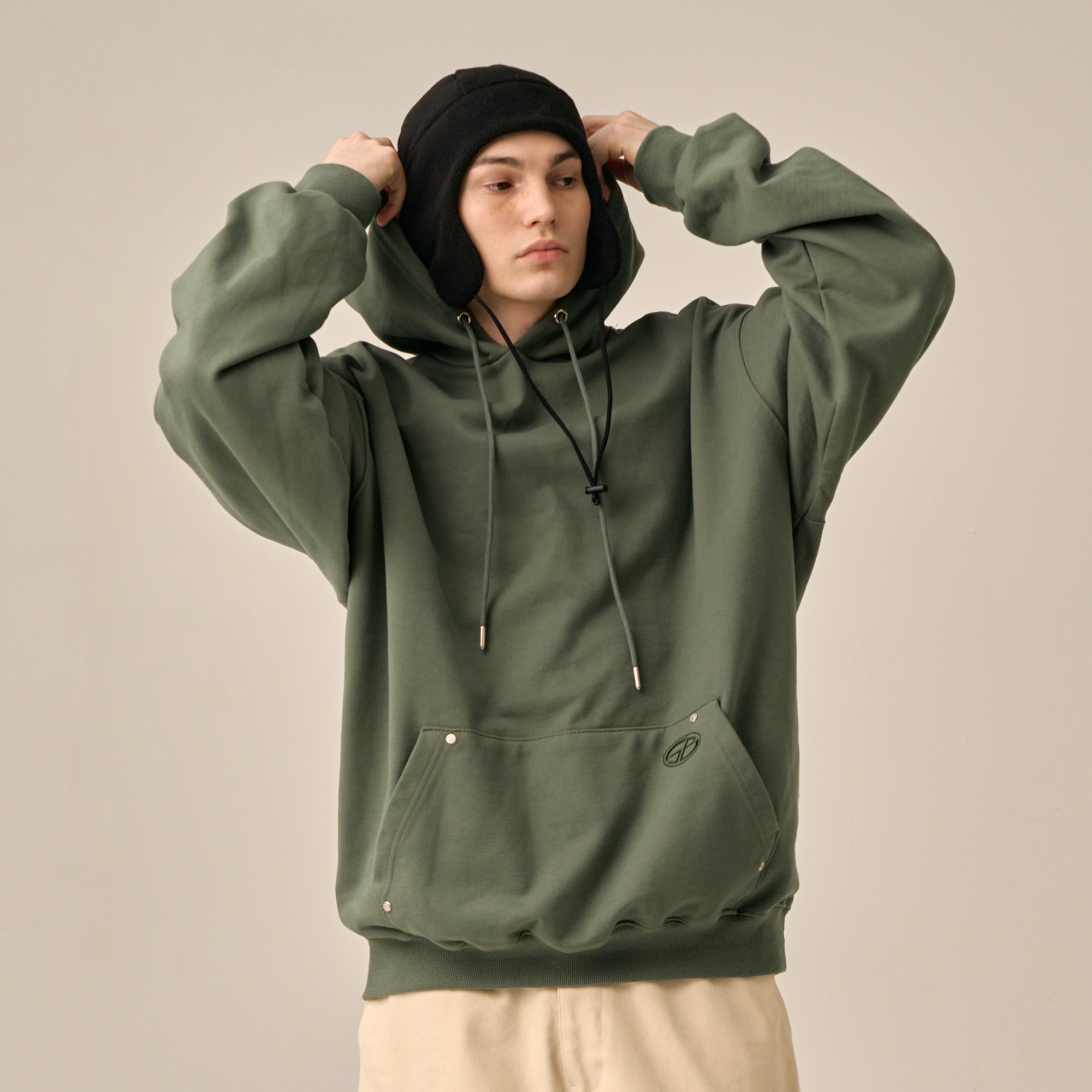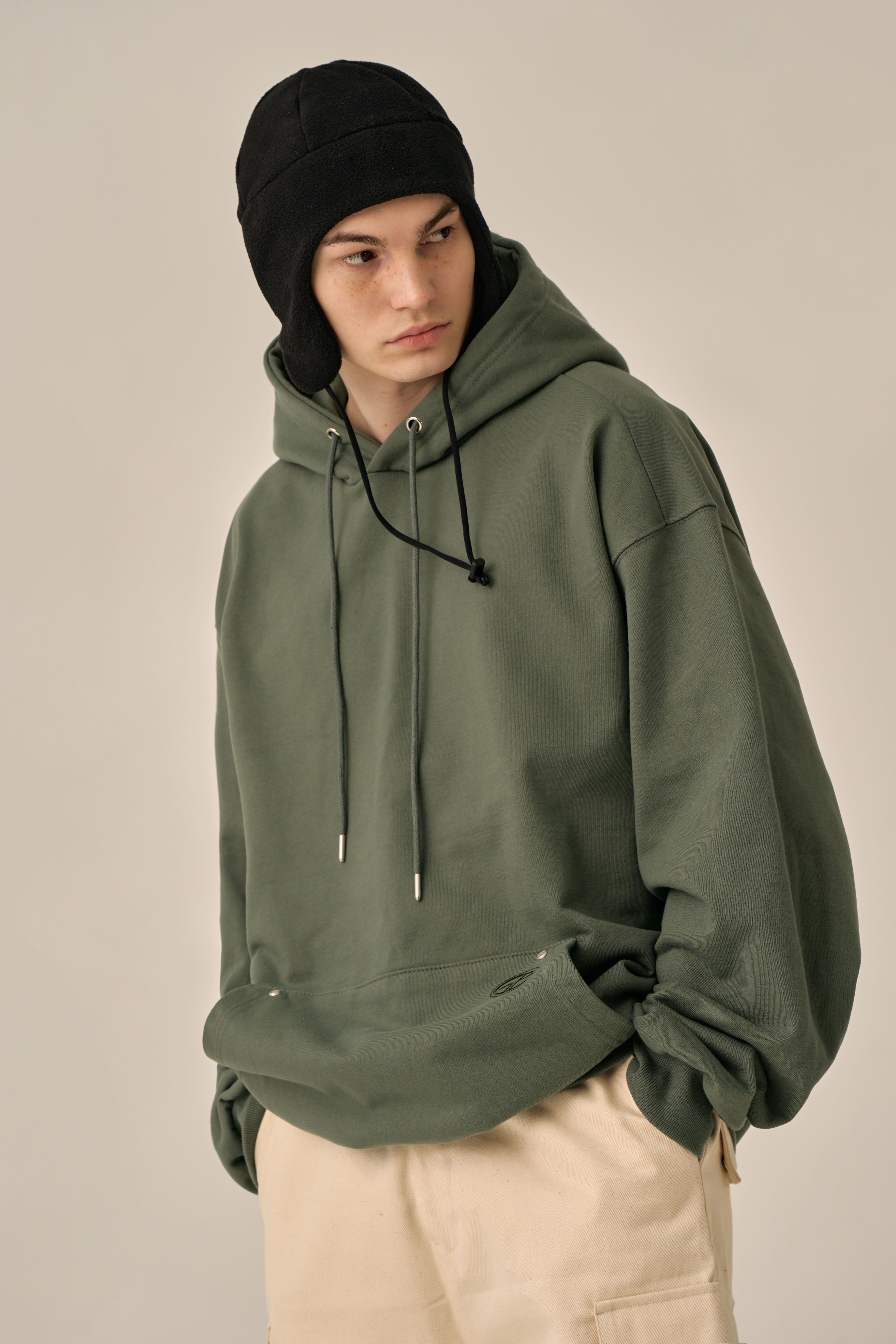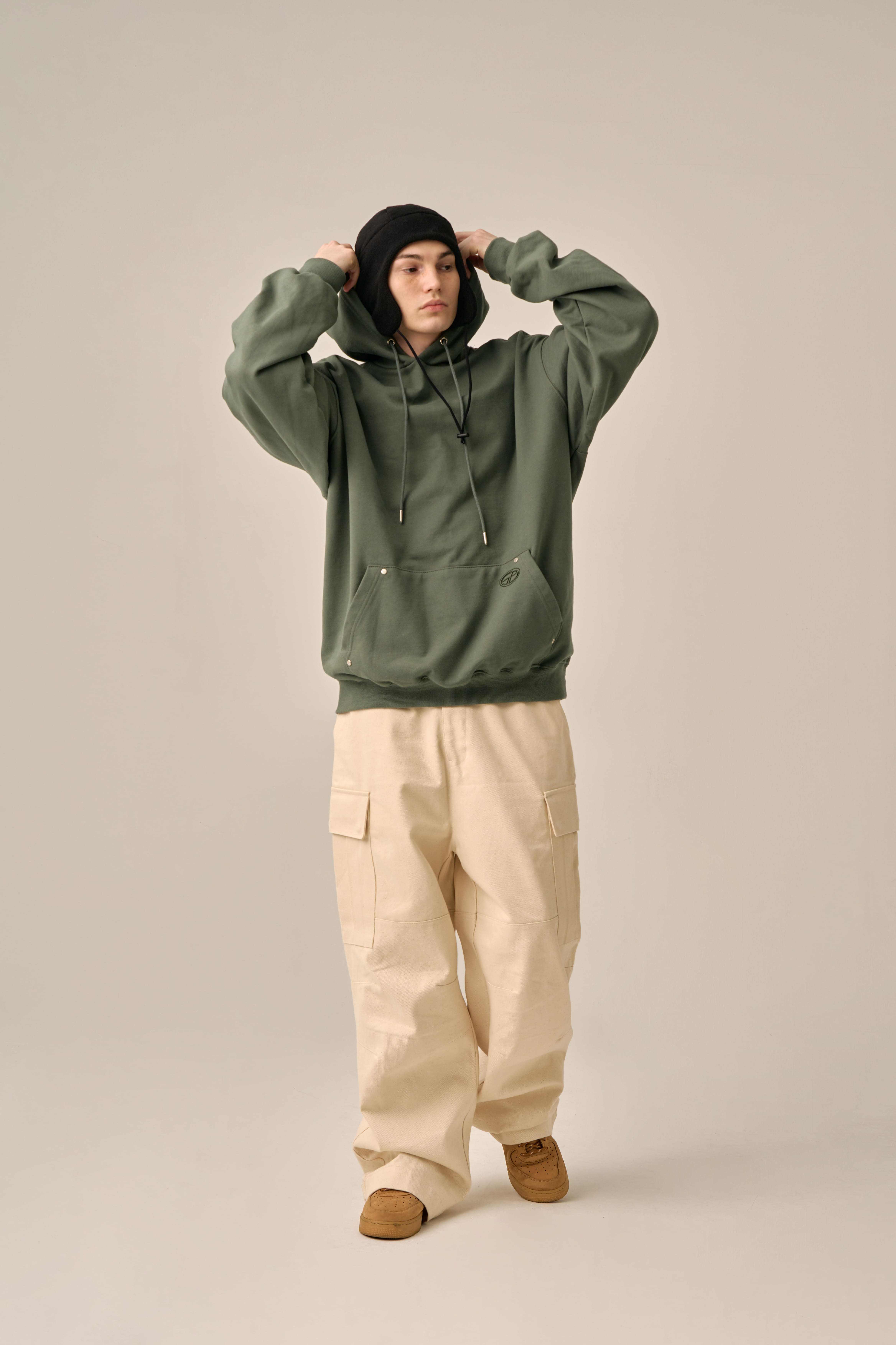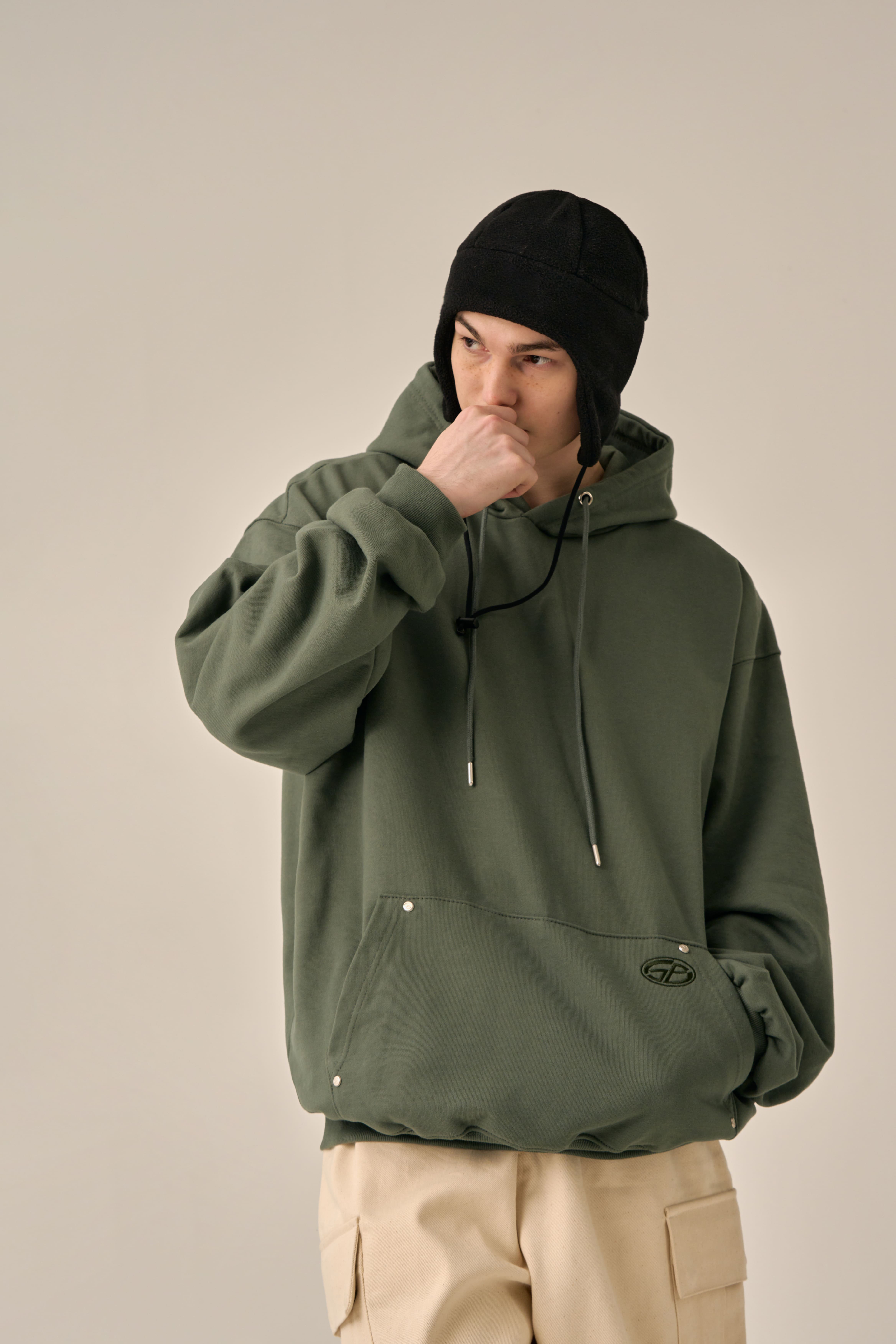 OVERSIZED MINI LOGO HOOD - KHAKI