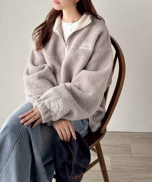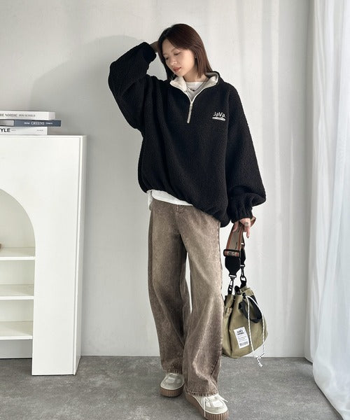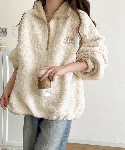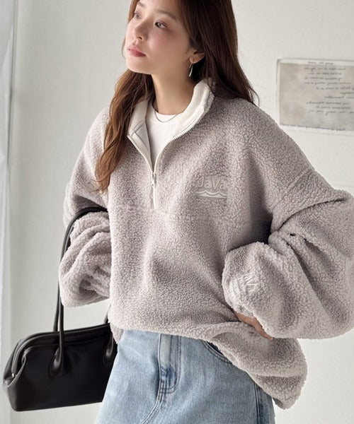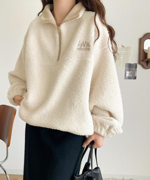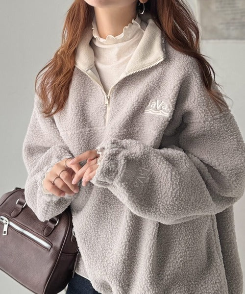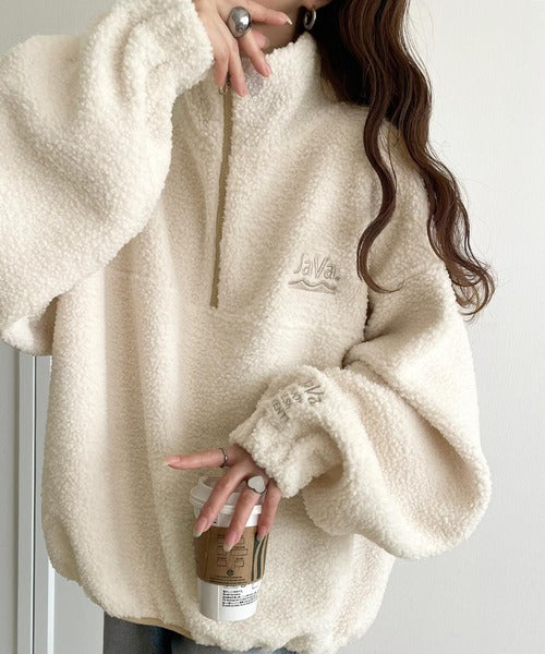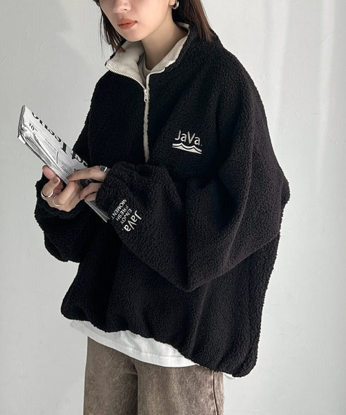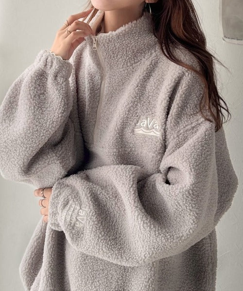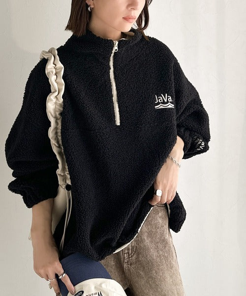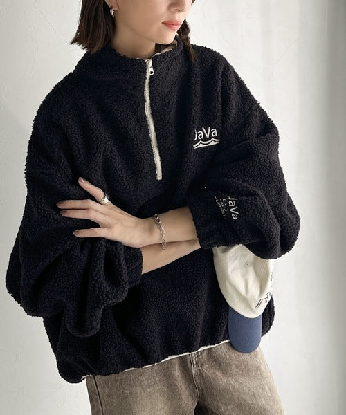 《Javaジャバコラボ》ボア素材×刺繍でおしゃれ上級者に格上げ♪アノラックハーフジッププルオーバー jv1260484