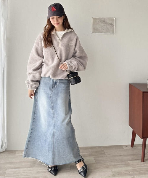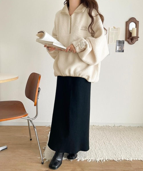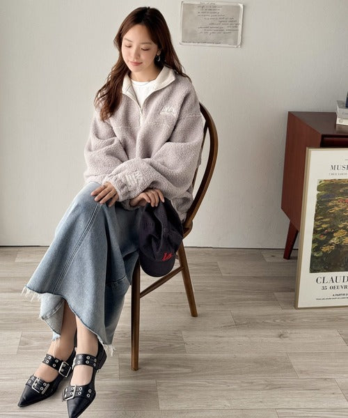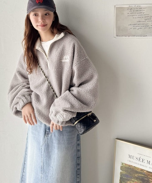 トレンドのハーフジッププルオーバーをボア素材で仕上げた一枚。