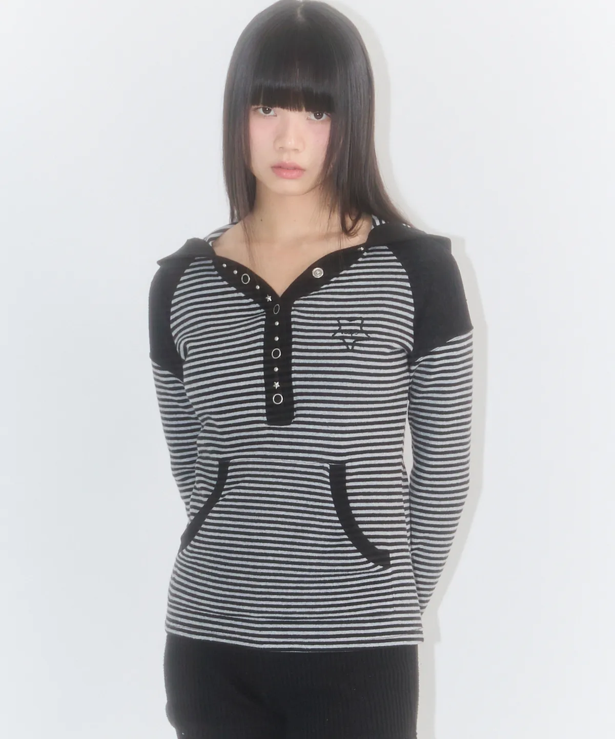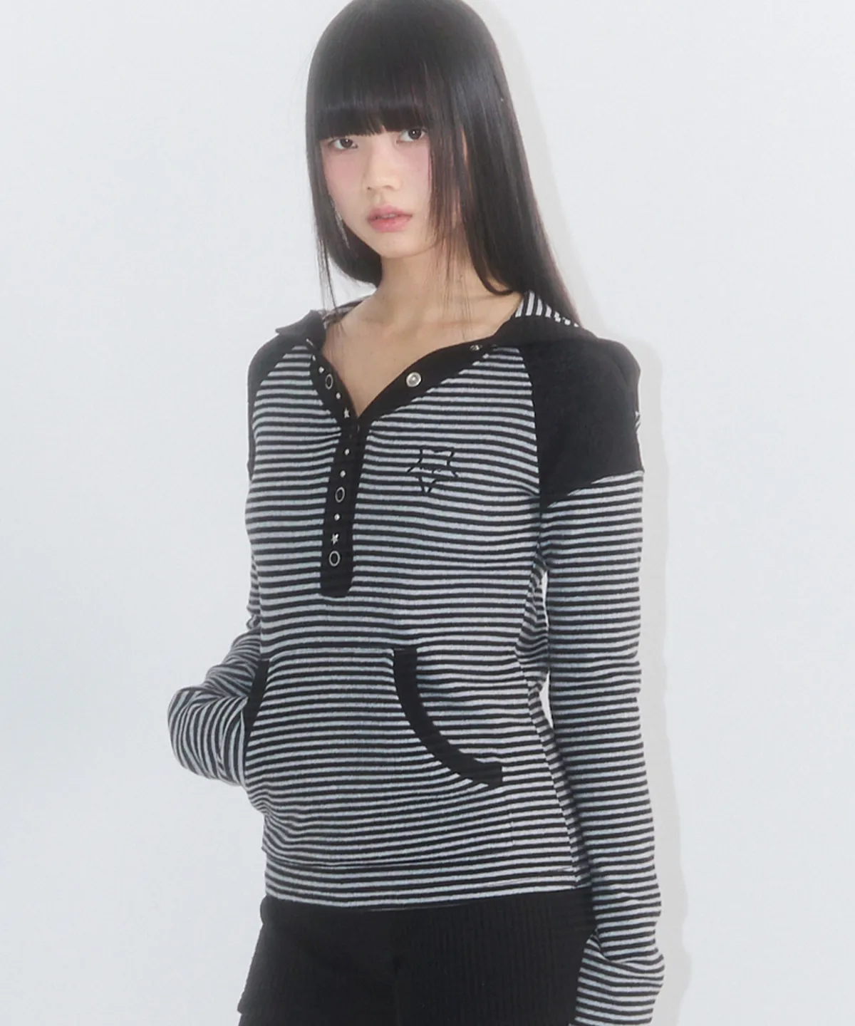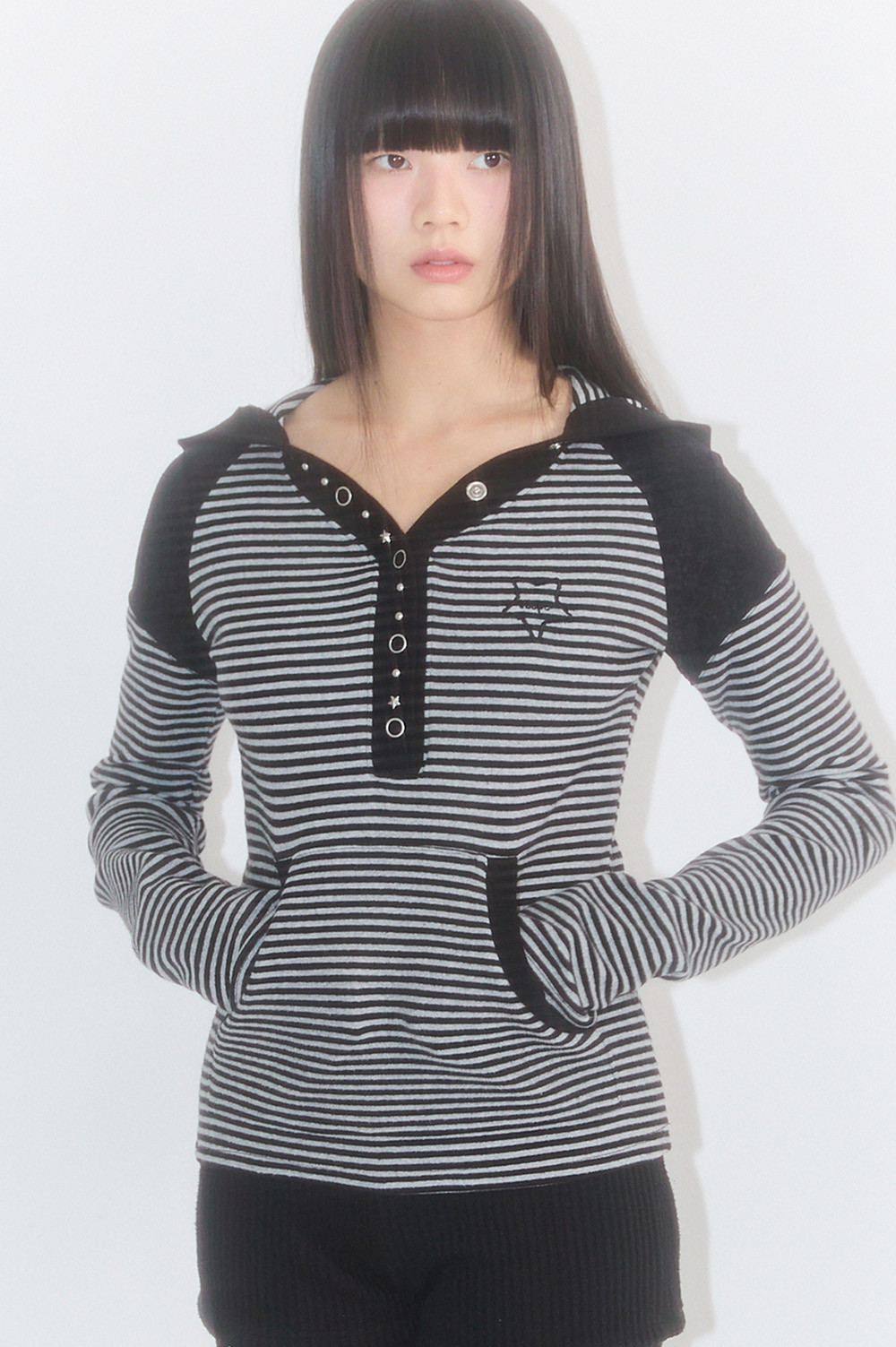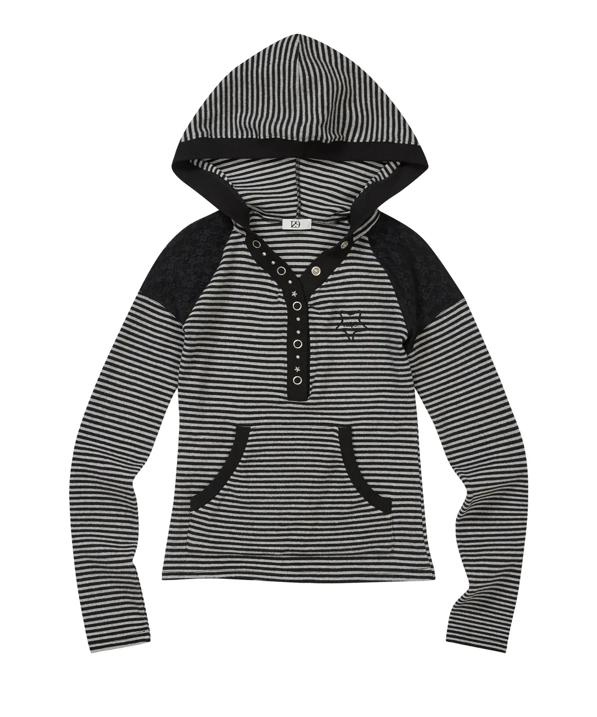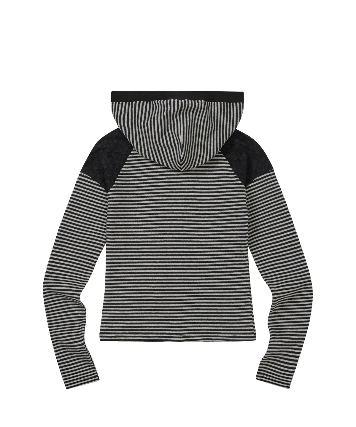 STRIPE LACE COLOR-BLOCKED HOODIE CHARCOAL BLACK