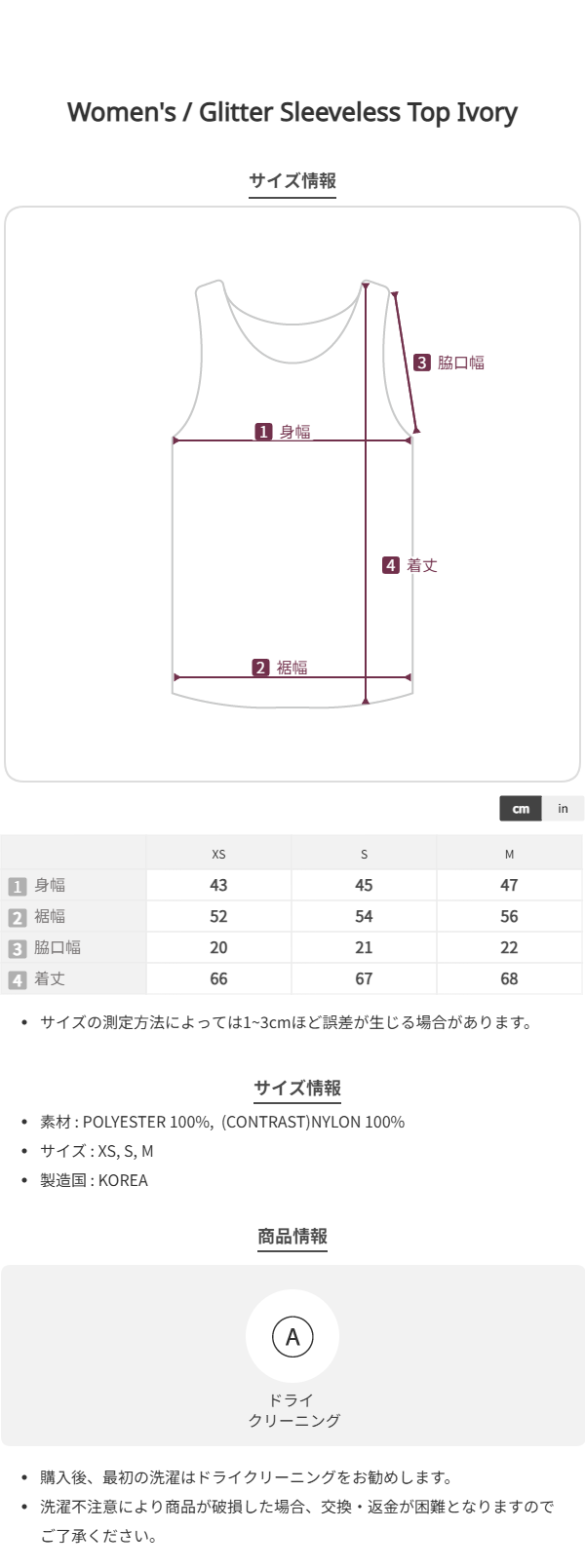 このブランドの商品はお客様の都合による交換および返品はお受けいたしかねます。 十分にご注意の上、ご注文をお願い致します。