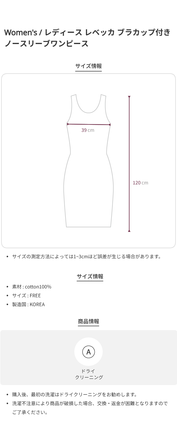 レディース レベッカ ブラカップ付き ノースリーブワンピース