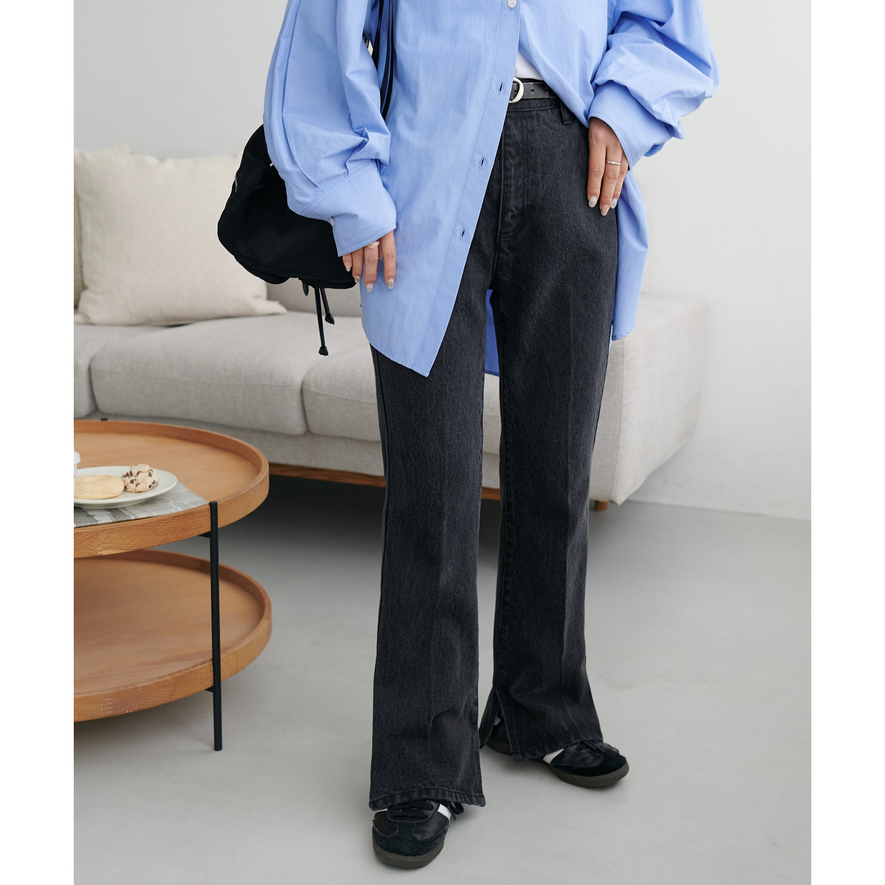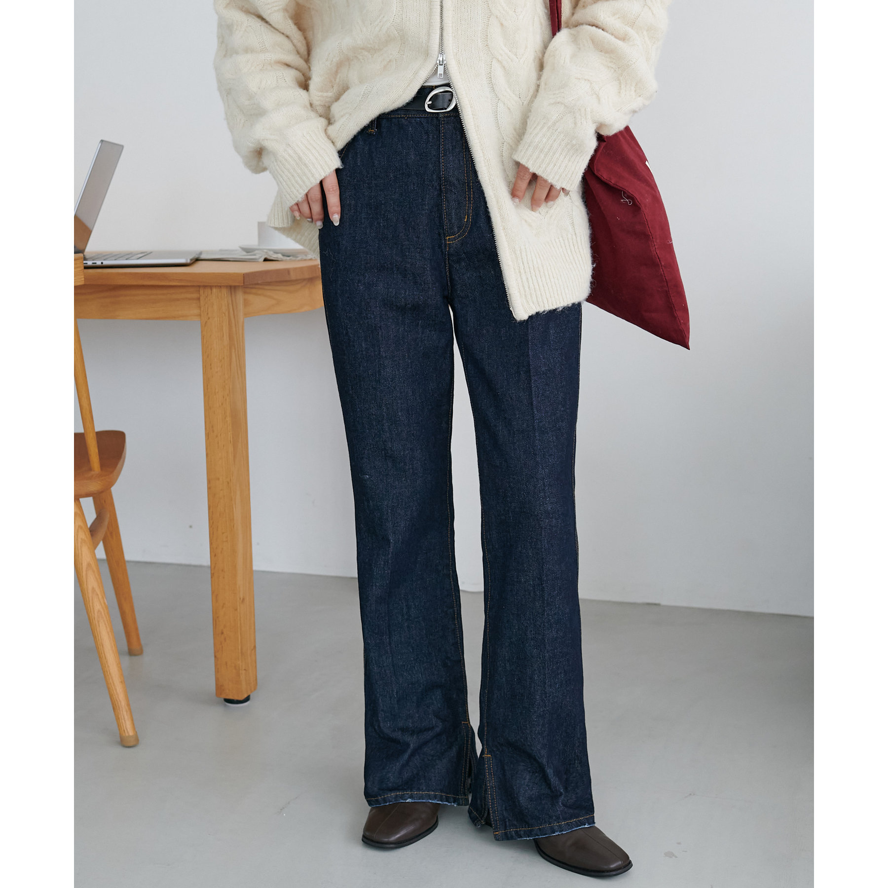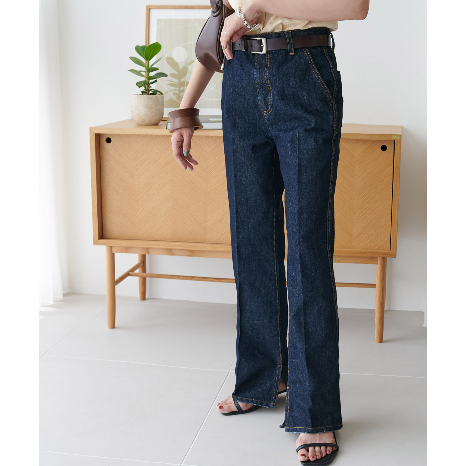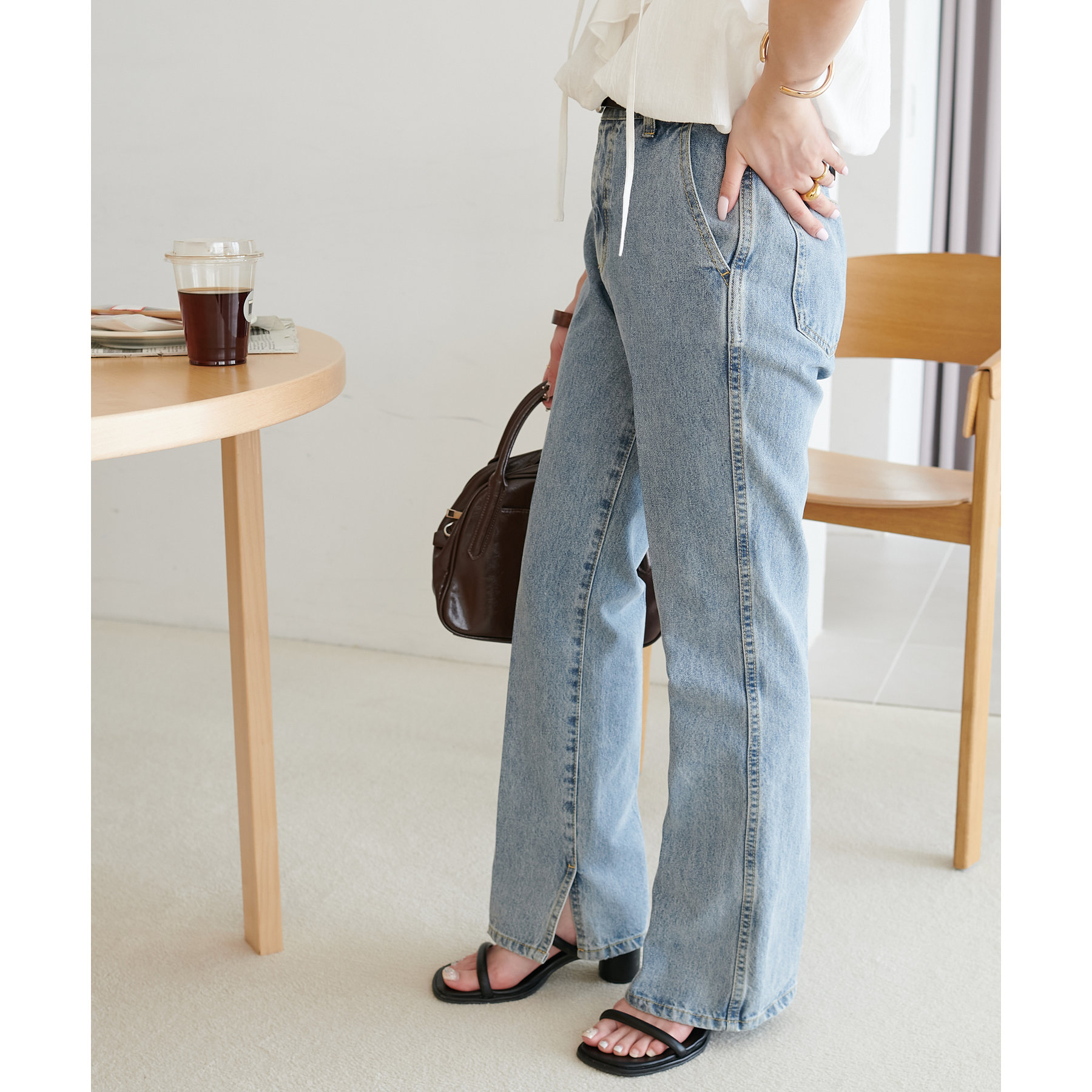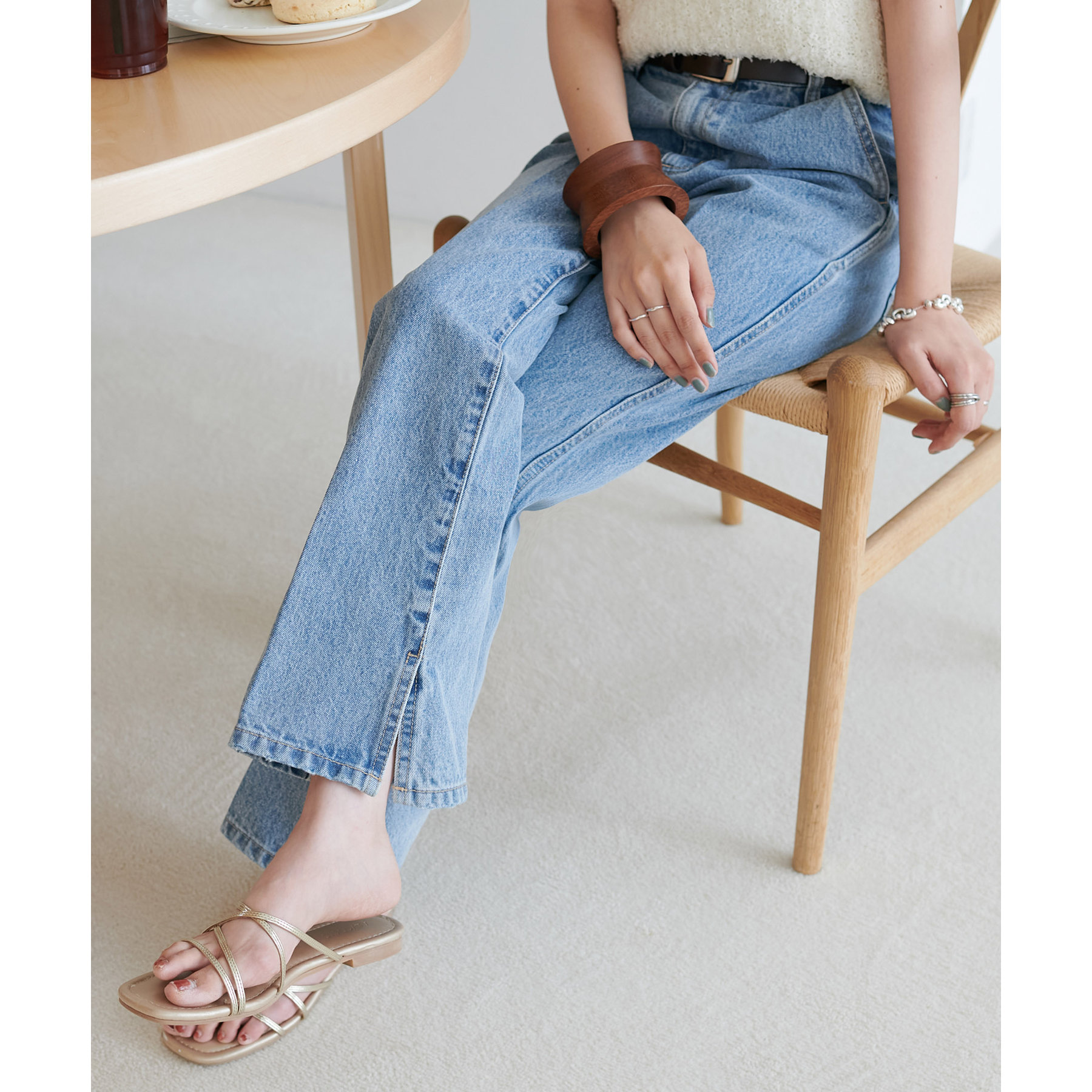 膝下からの程よい広がりとセンタープレスデザインが美脚効果をもたらす秘訣です。カジュアルながらも裾にスリットを入れることにより、抜け感と女性らしさをプラスします。カットオフデザインがなくなったことで、よりスッキリとした印象に。