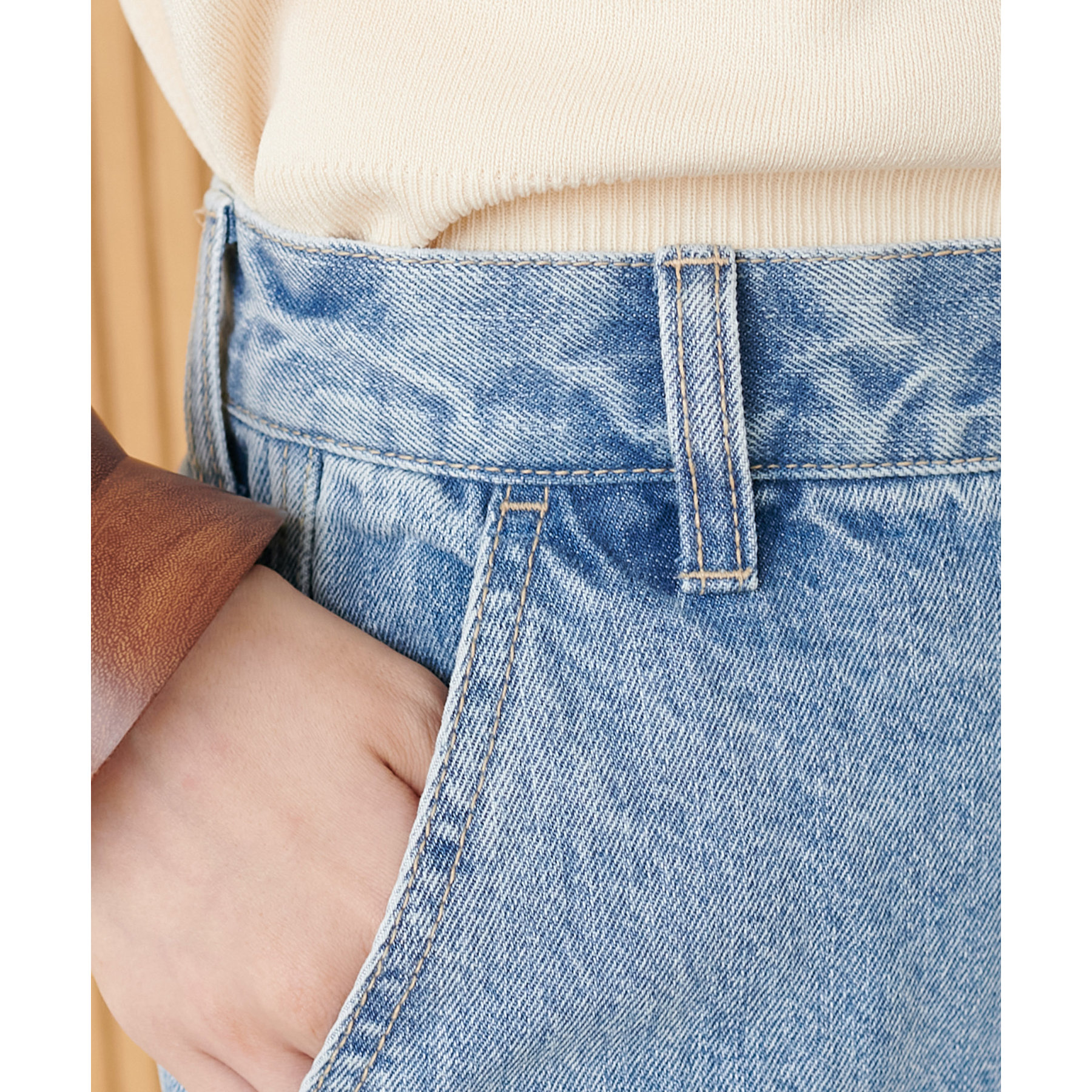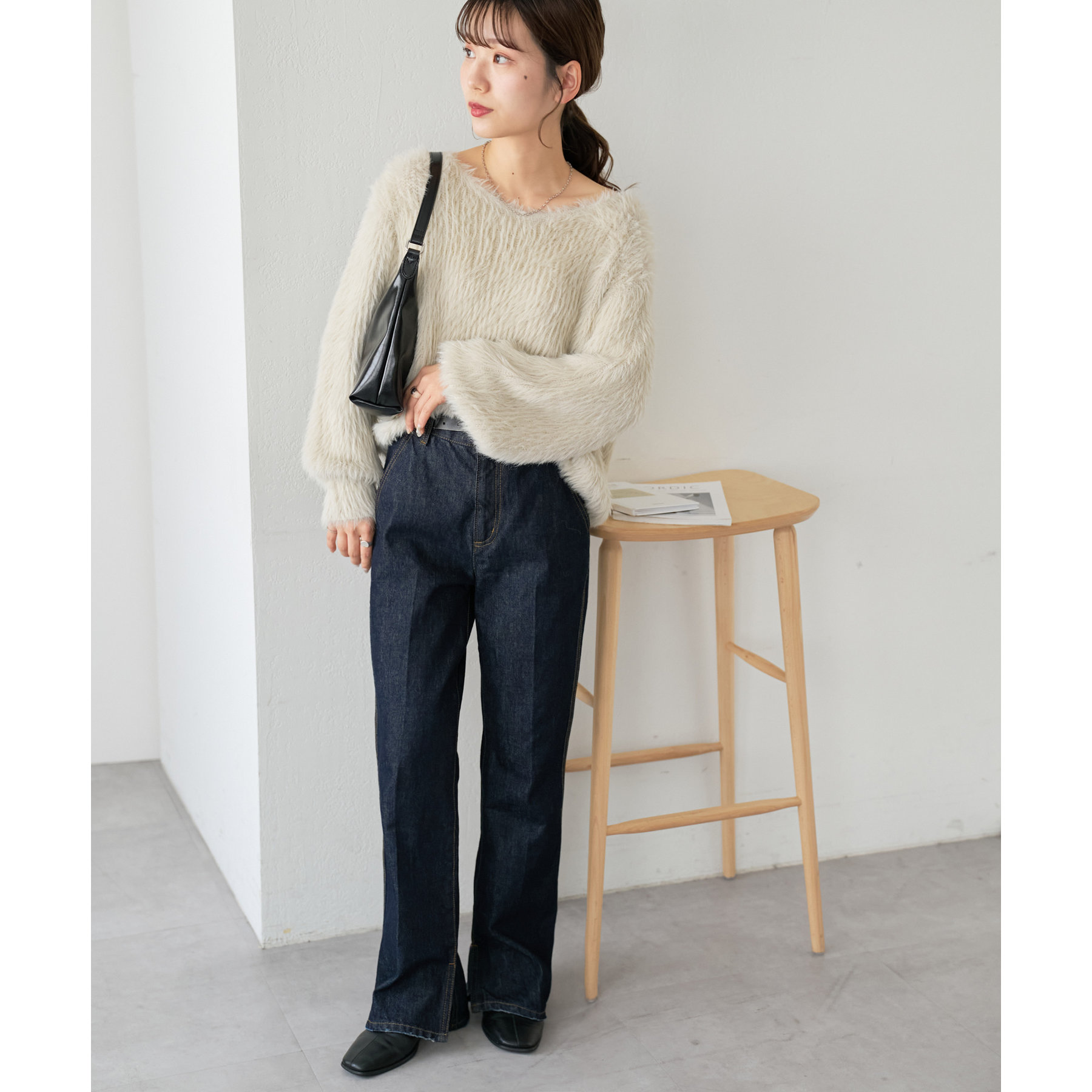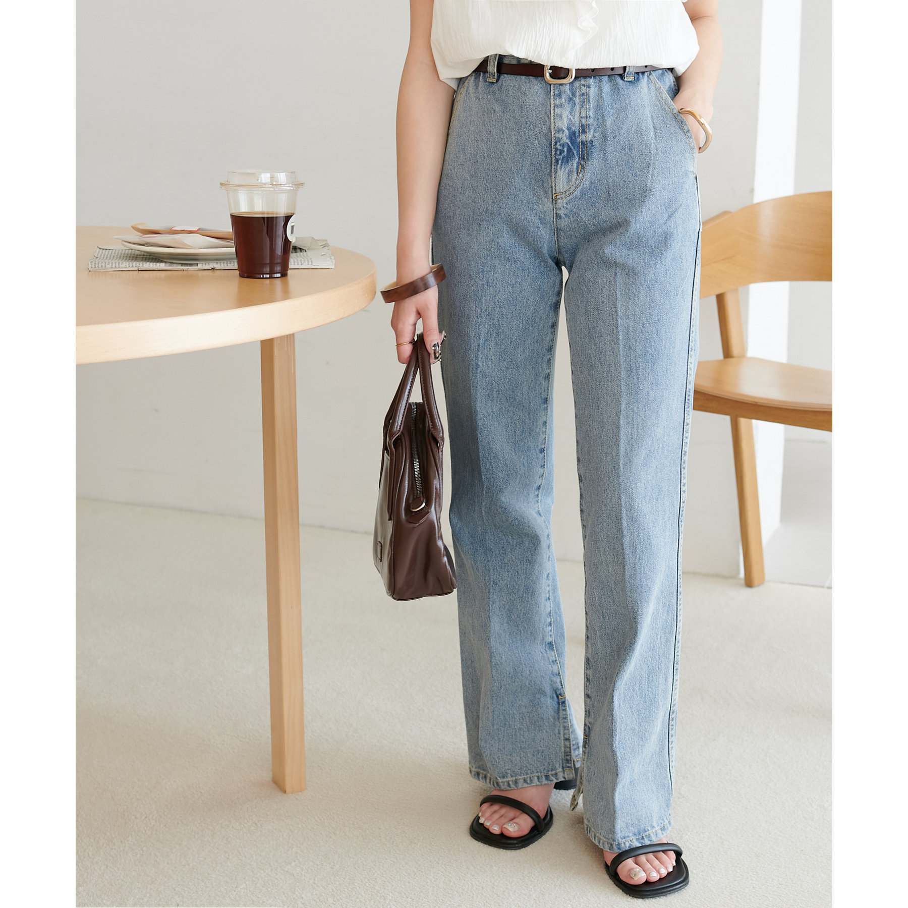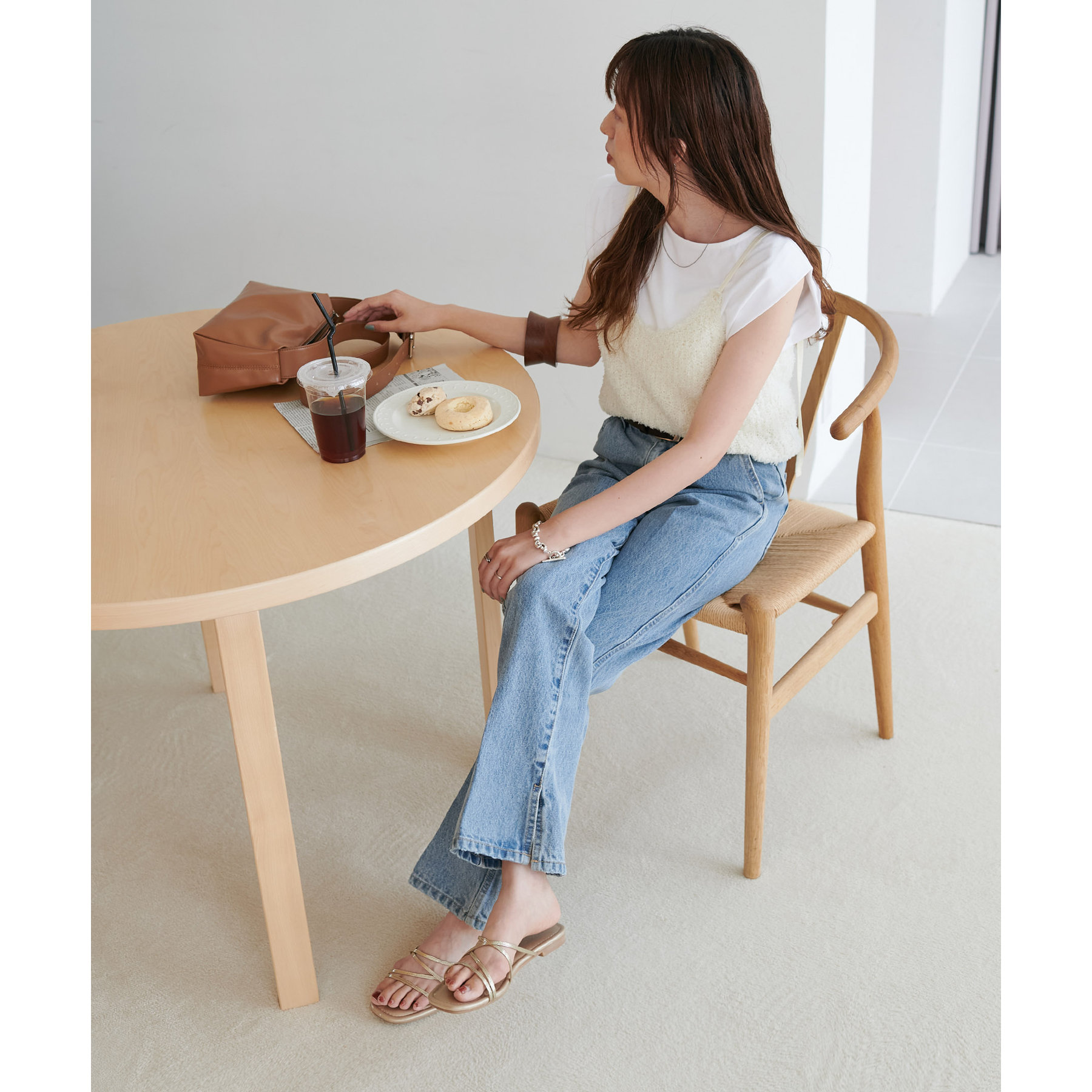 膝下からの程よい広がりとセンタープレスデザインが美脚効果をもたらす秘訣です。カジュアルながらも裾にスリットを入れることにより、抜け感と女性らしさをプラスします。カットオフデザインがなくなったことで、よりスッキリとした印象に。