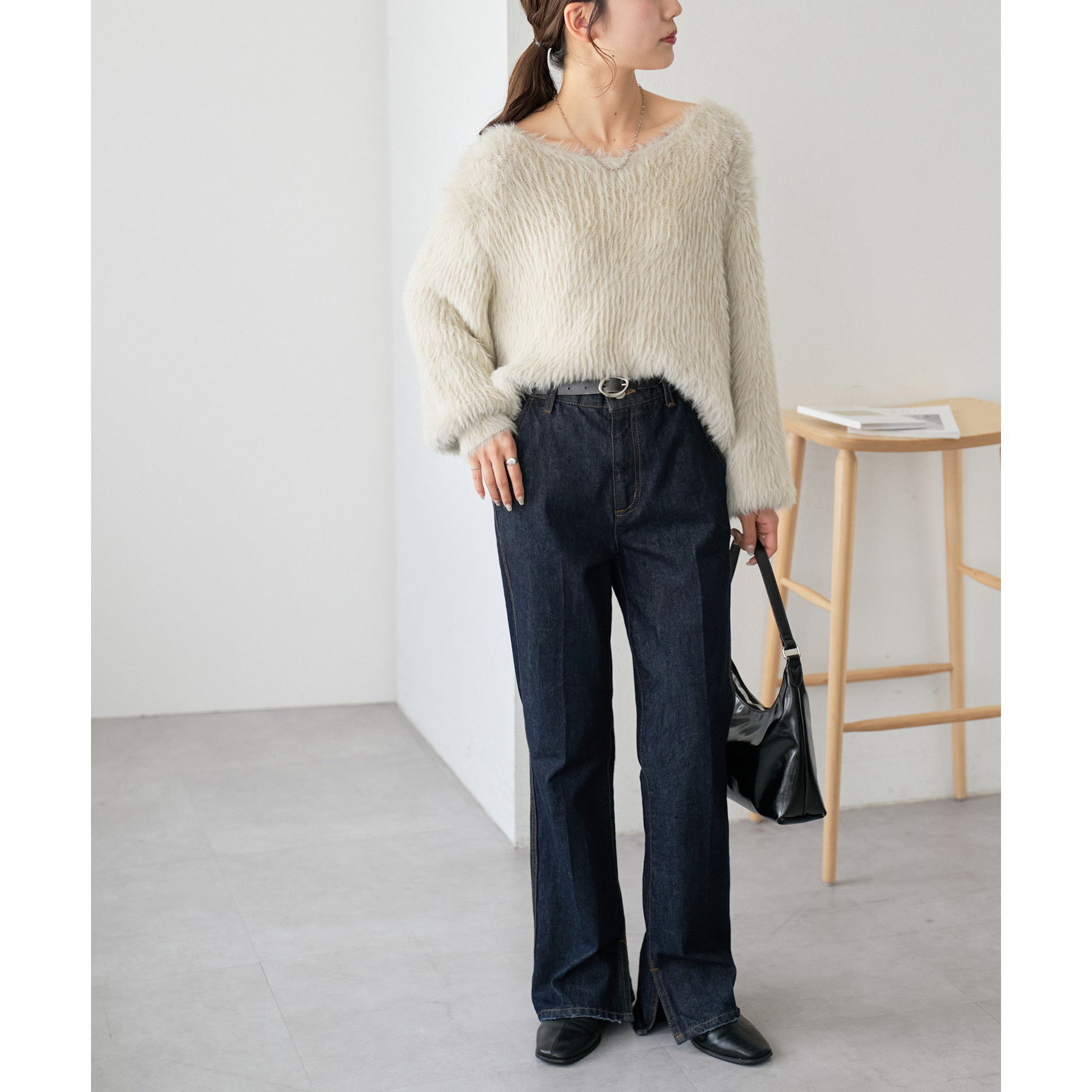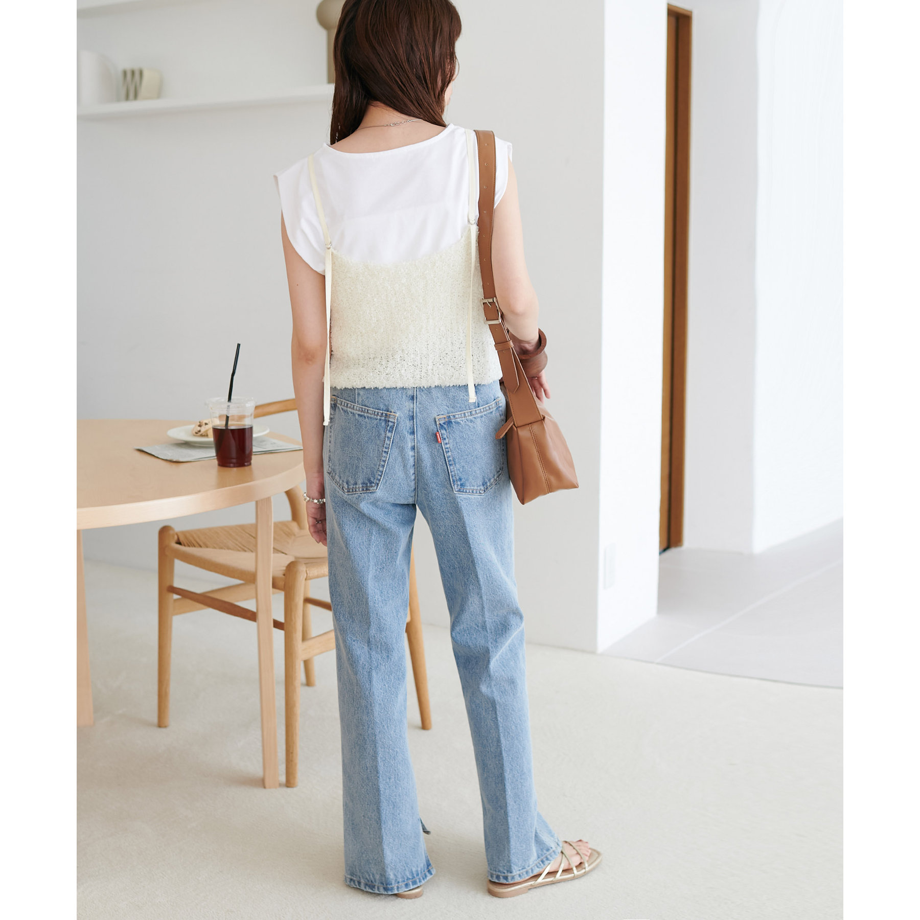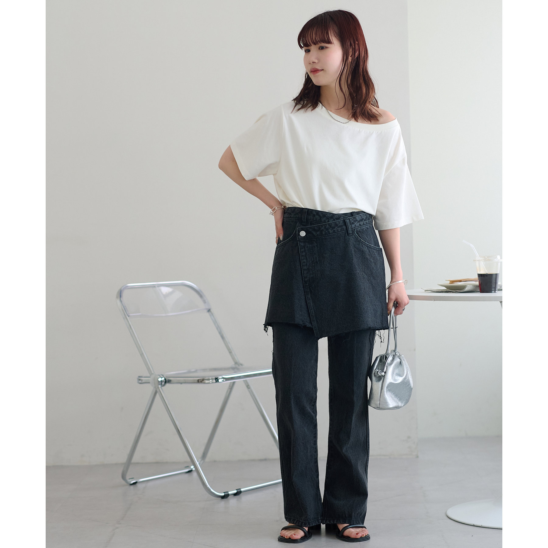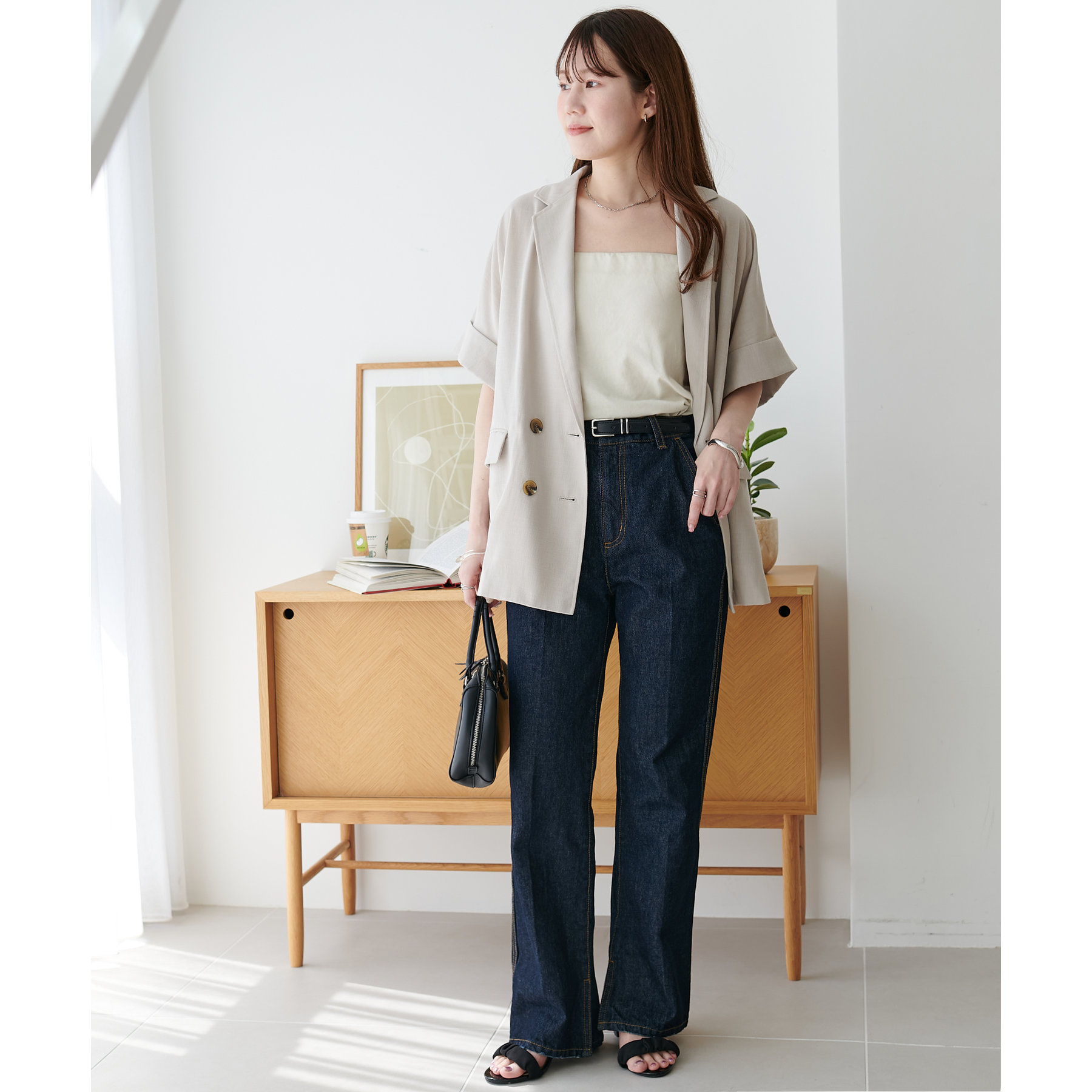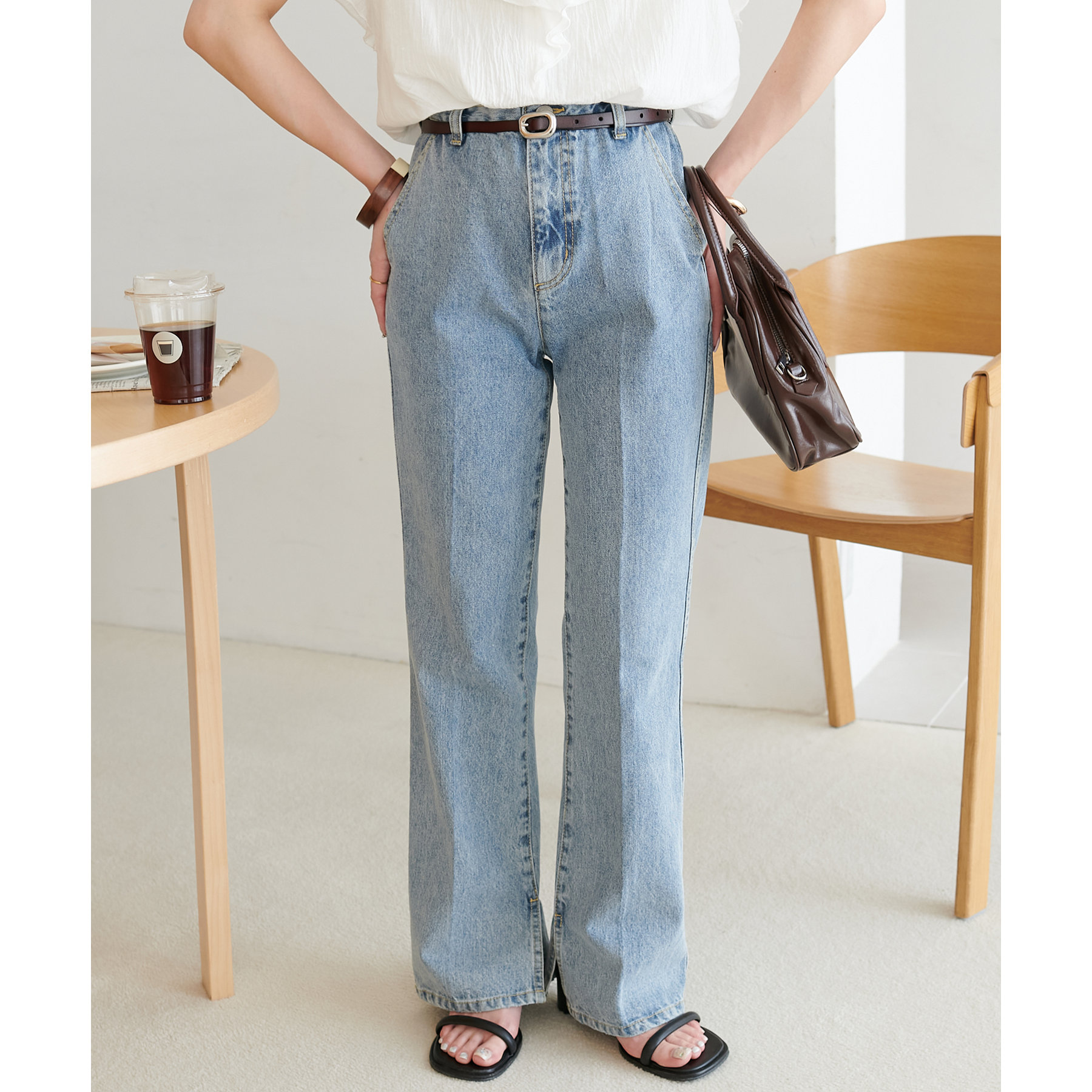 膝下からの程よい広がりとセンタープレスデザインが美脚効果をもたらす秘訣です。カジュアルながらも裾にスリットを入れることにより、抜け感と女性らしさをプラスします。カットオフデザインがなくなったことで、よりスッキリとした印象に。