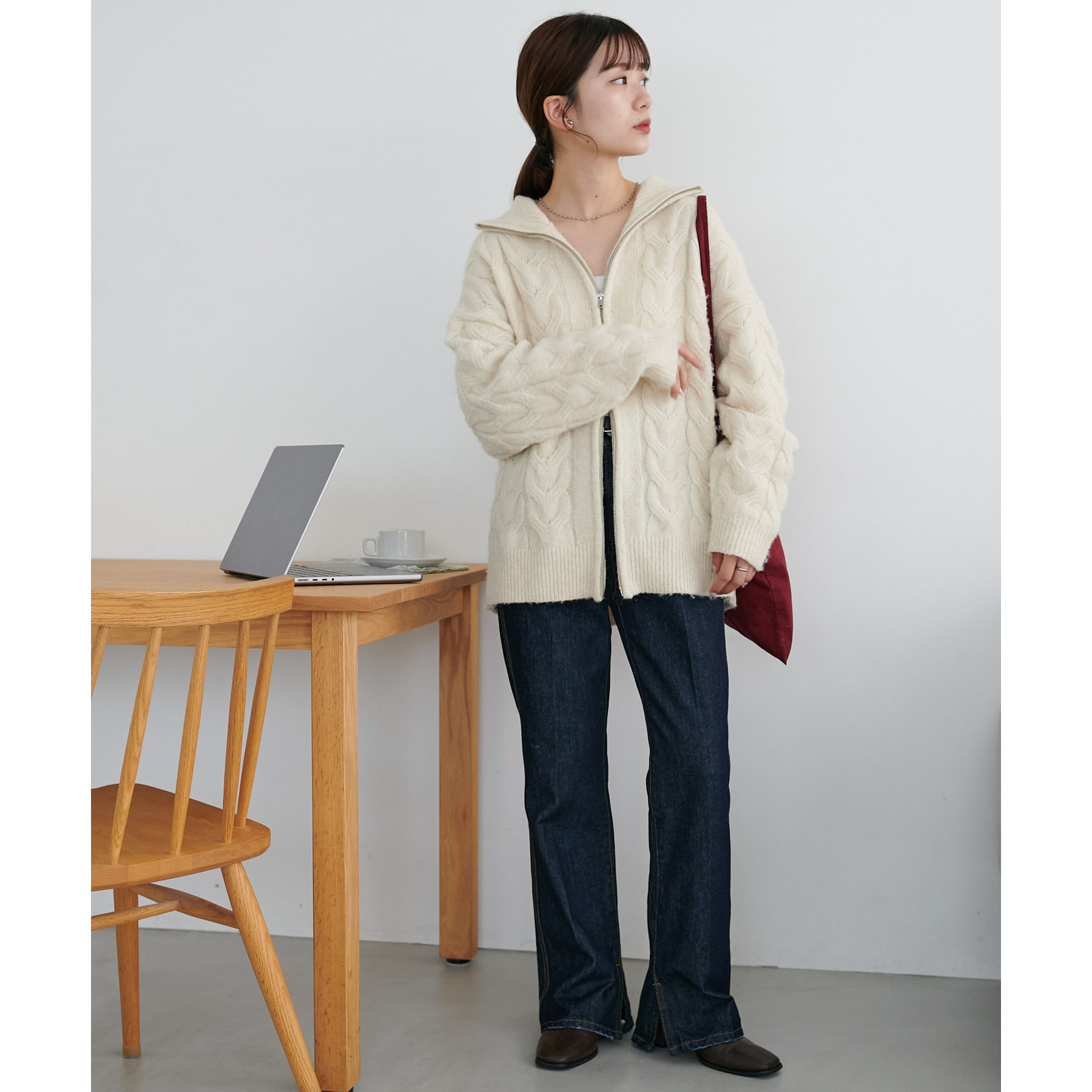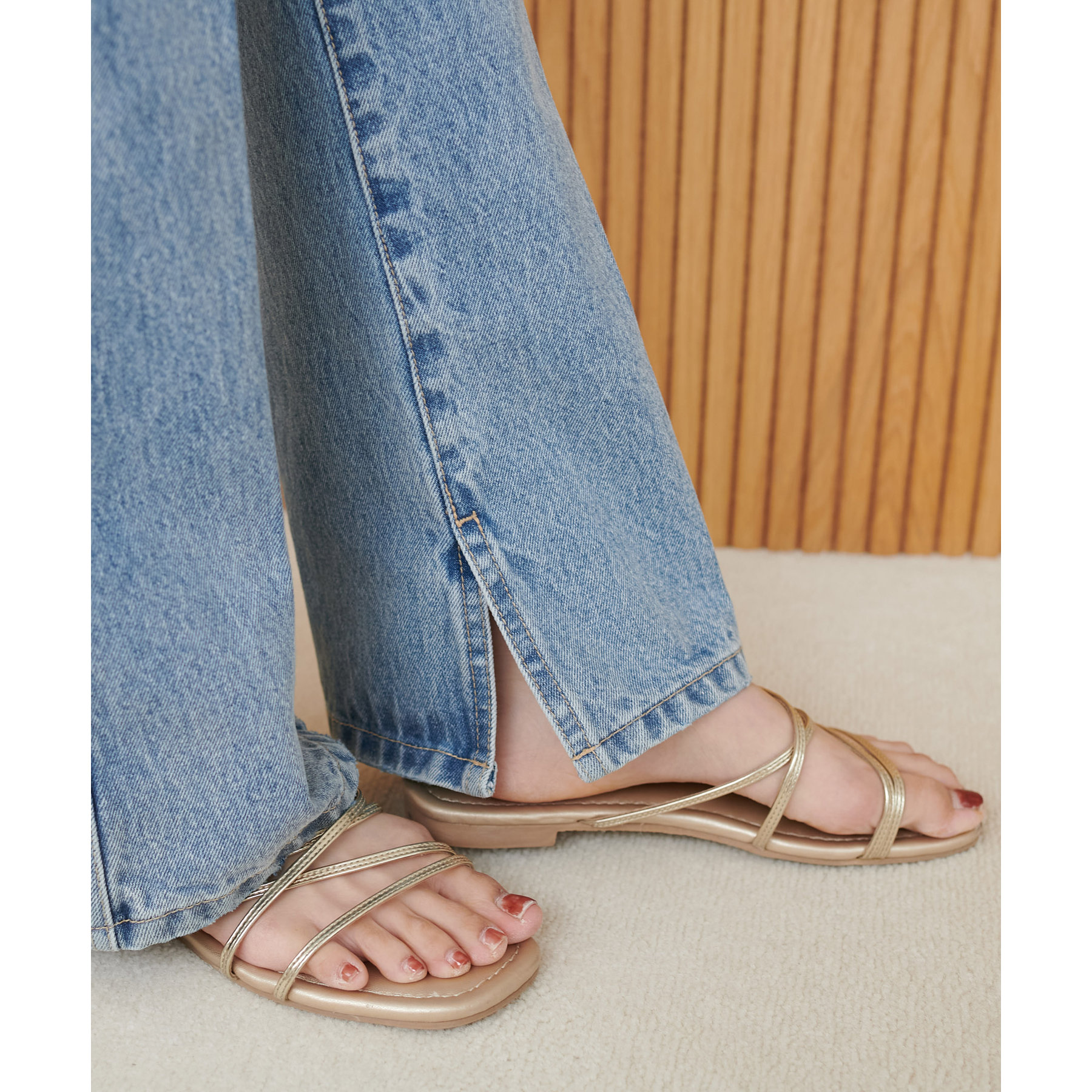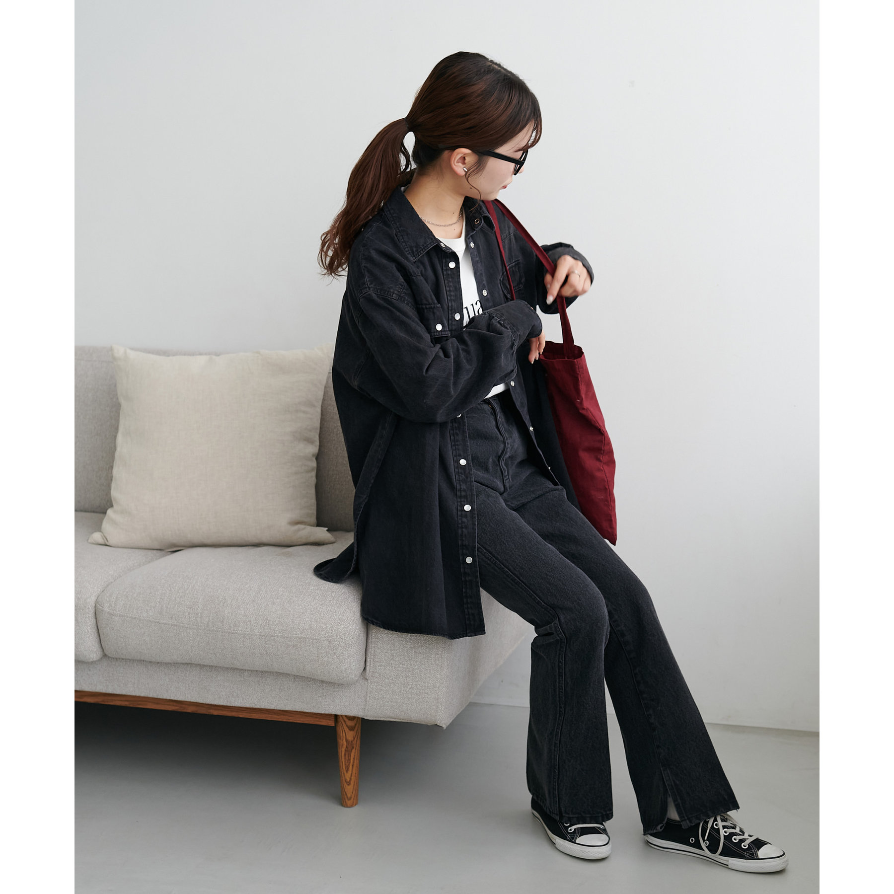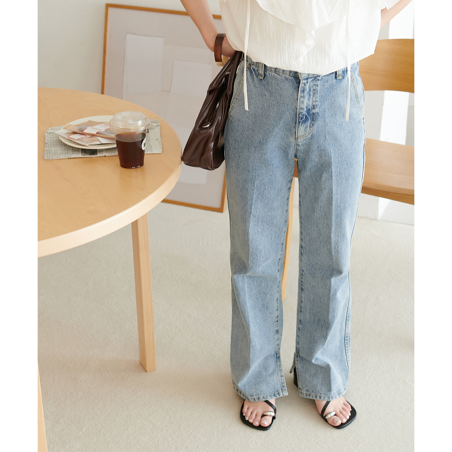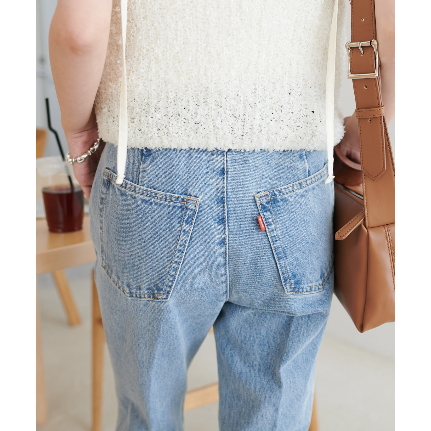 膝下からの程よい広がりとセンタープレスデザインが美脚効果をもたらす秘訣です。カジュアルながらも裾にスリットを入れることにより、抜け感と女性らしさをプラスします。カットオフデザインがなくなったことで、よりスッキリとした印象に。