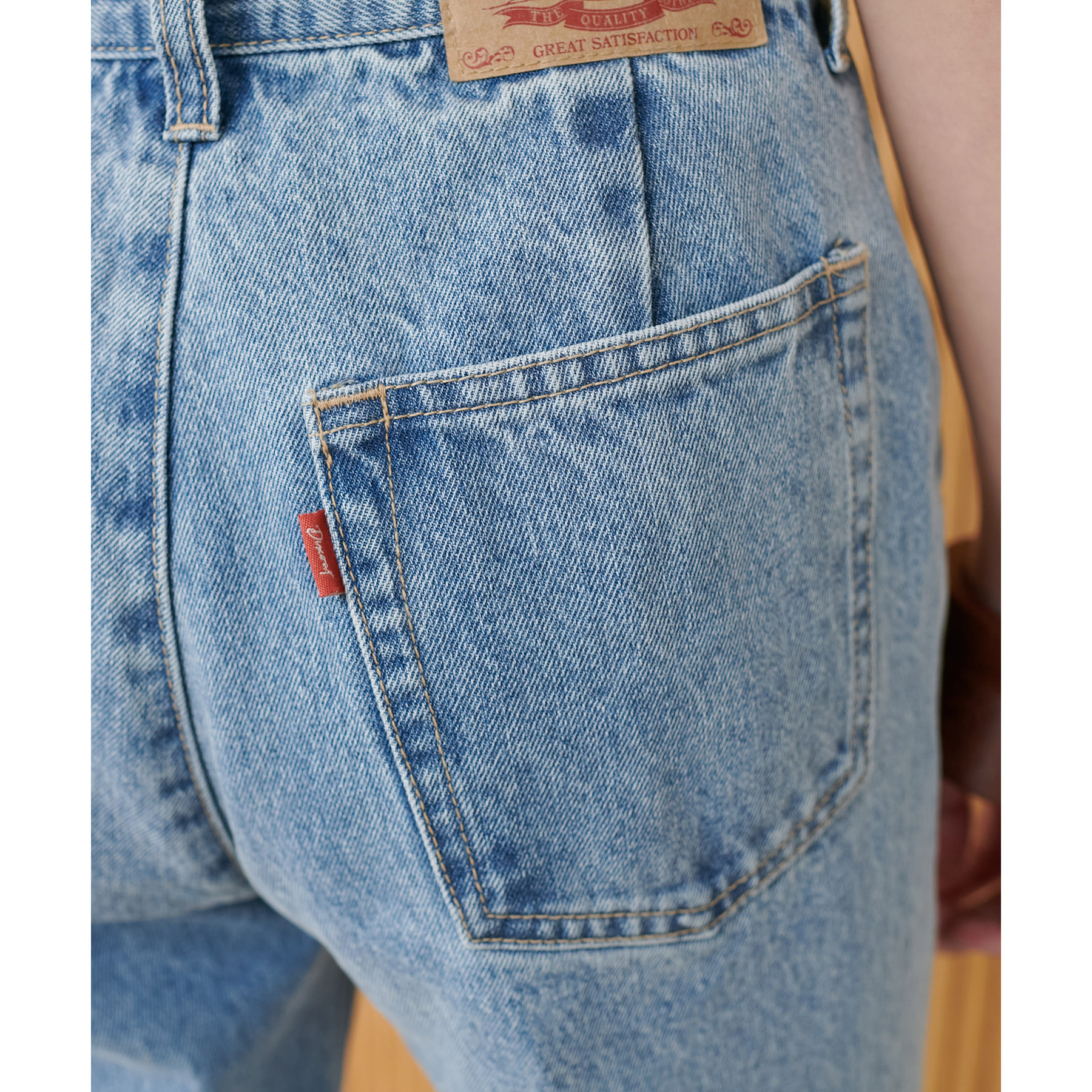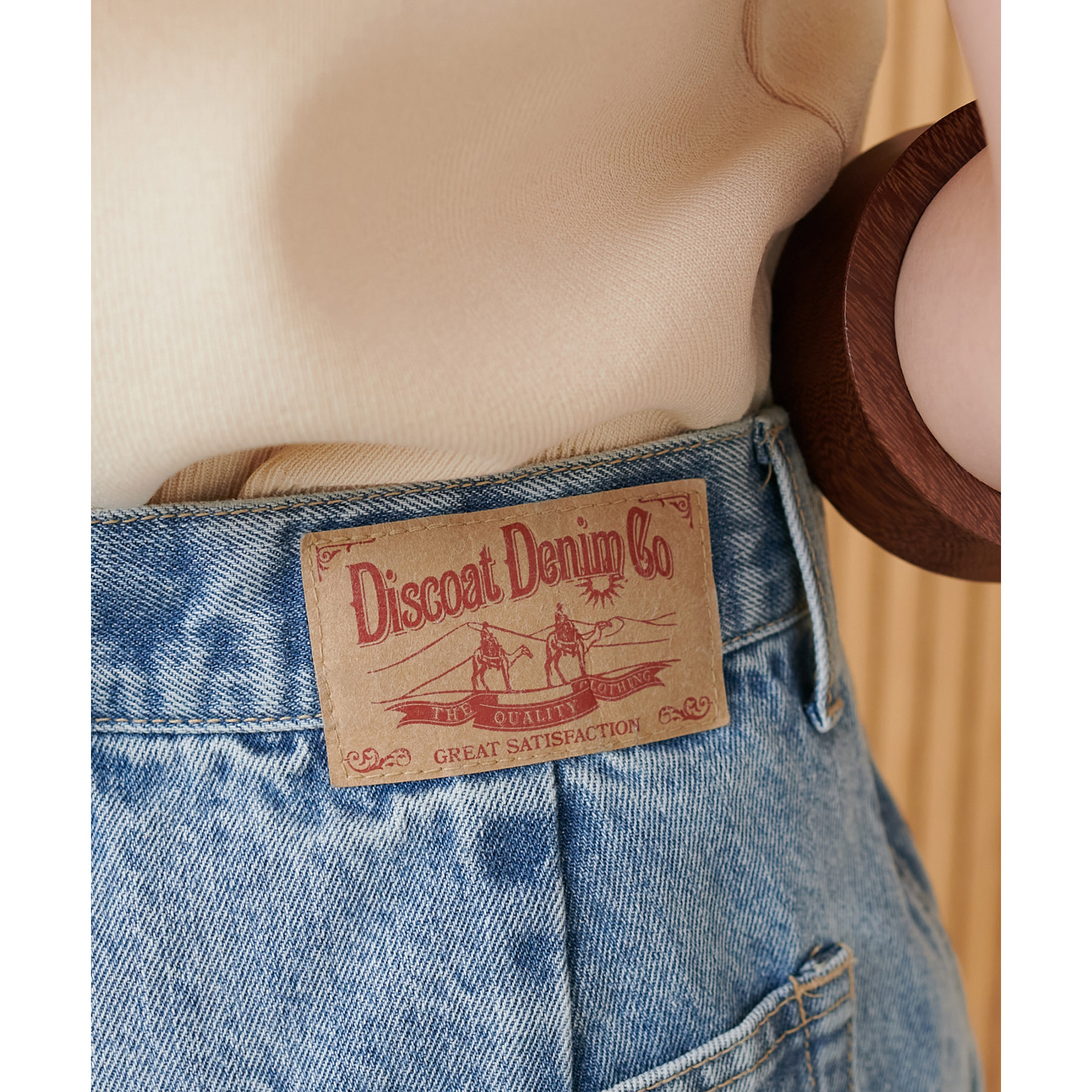 リニューアルデザインは、オリジナルのタック釦を使用し、バックポケットにピスネームをプラス、ポケット部分のボタンにはDISCOATと文字入れをし、生地ごとにカラーを変え細部までこだわりました。サックスブルーにはシルバー、ネイビー・ブラックにはブロンズとなっております。さらにバックウエストにはDISCOATオリジナルの紙パッチが付けられ、洗うたびにシワやカスレが増し、よりヴィンテージライクな雰囲気で着用していただけます。