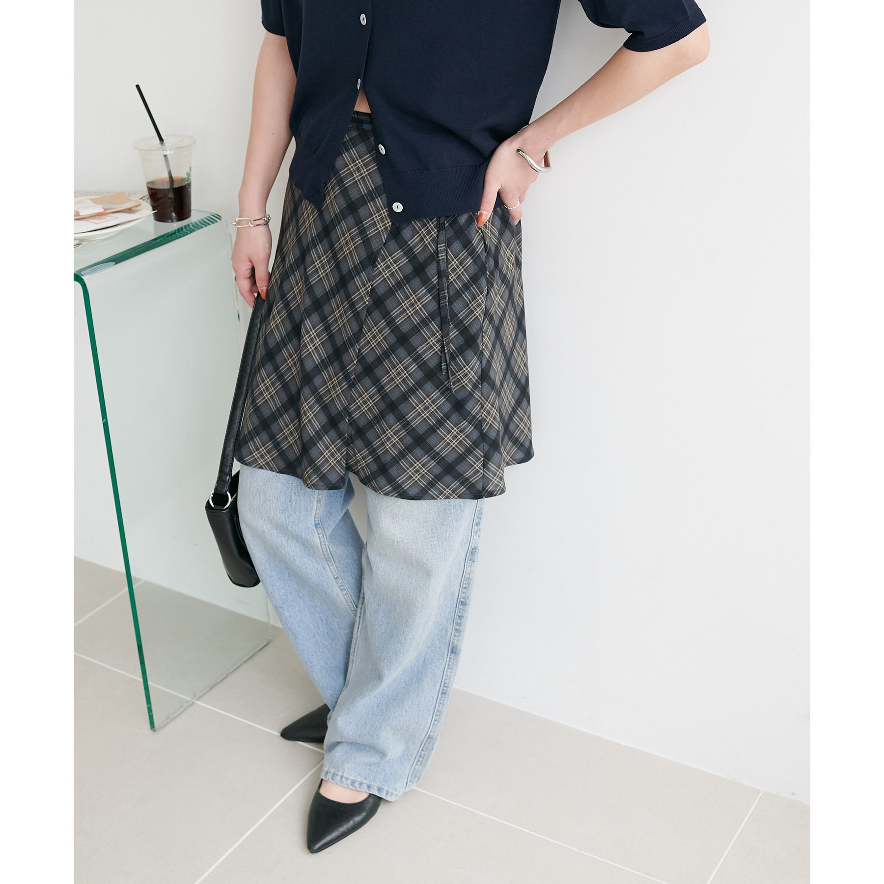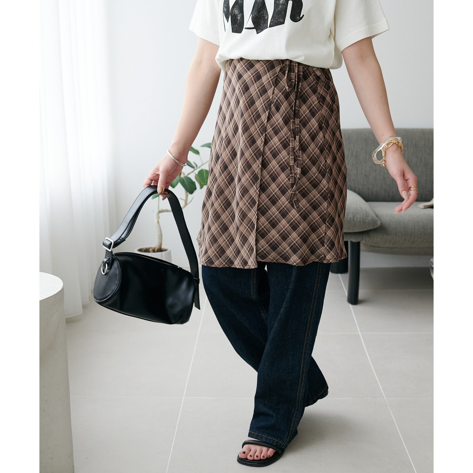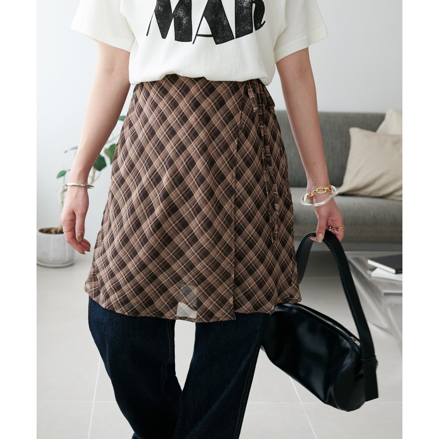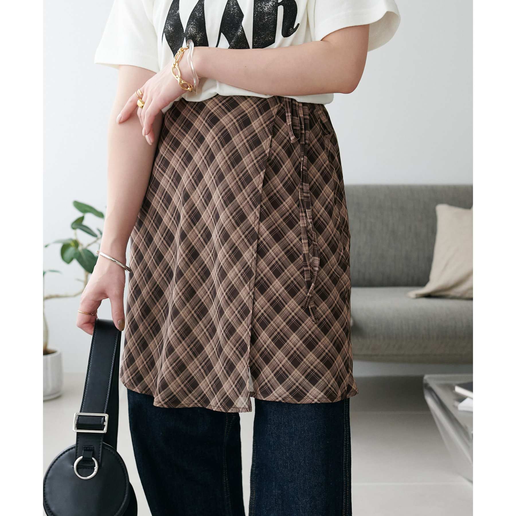 旬のレイヤードスタイルが叶う、チェックラップスカート