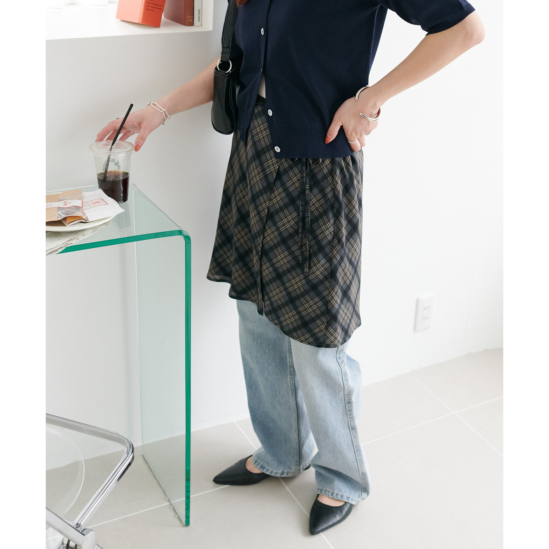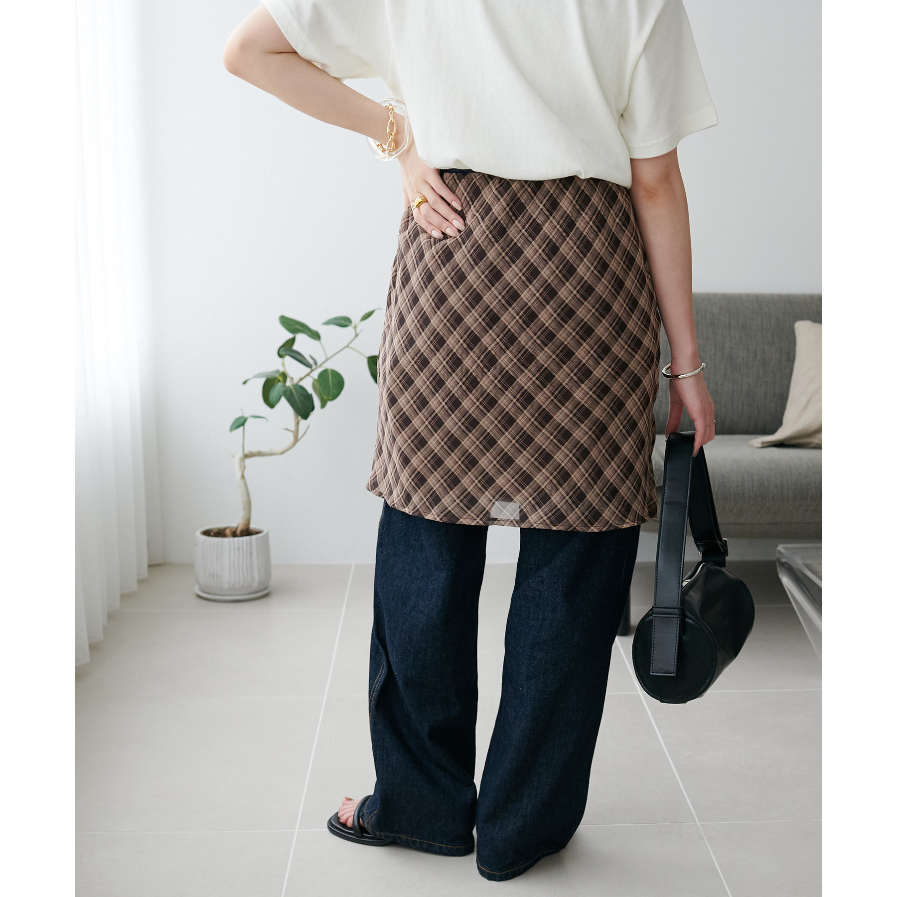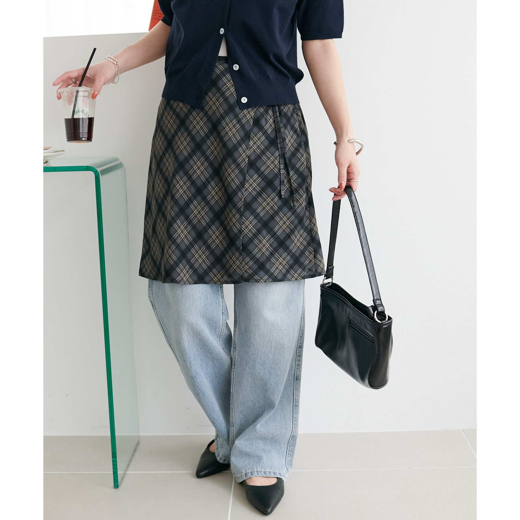 旬のレイヤードスタイルが叶う、チェックラップスカート