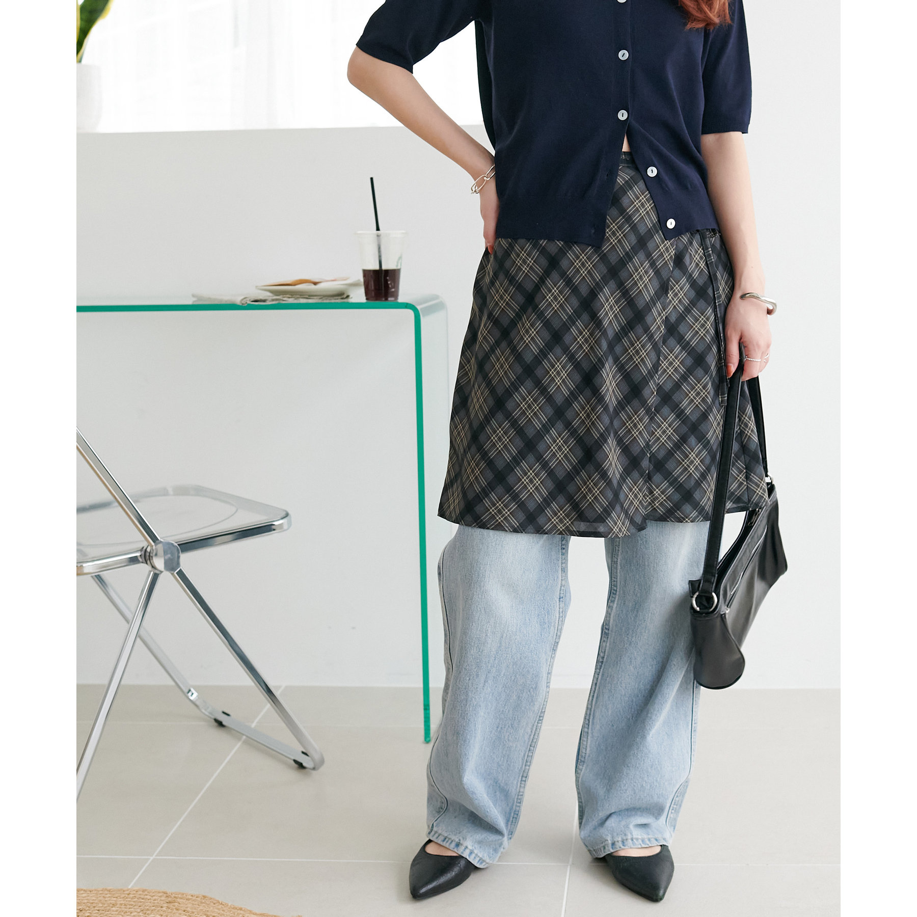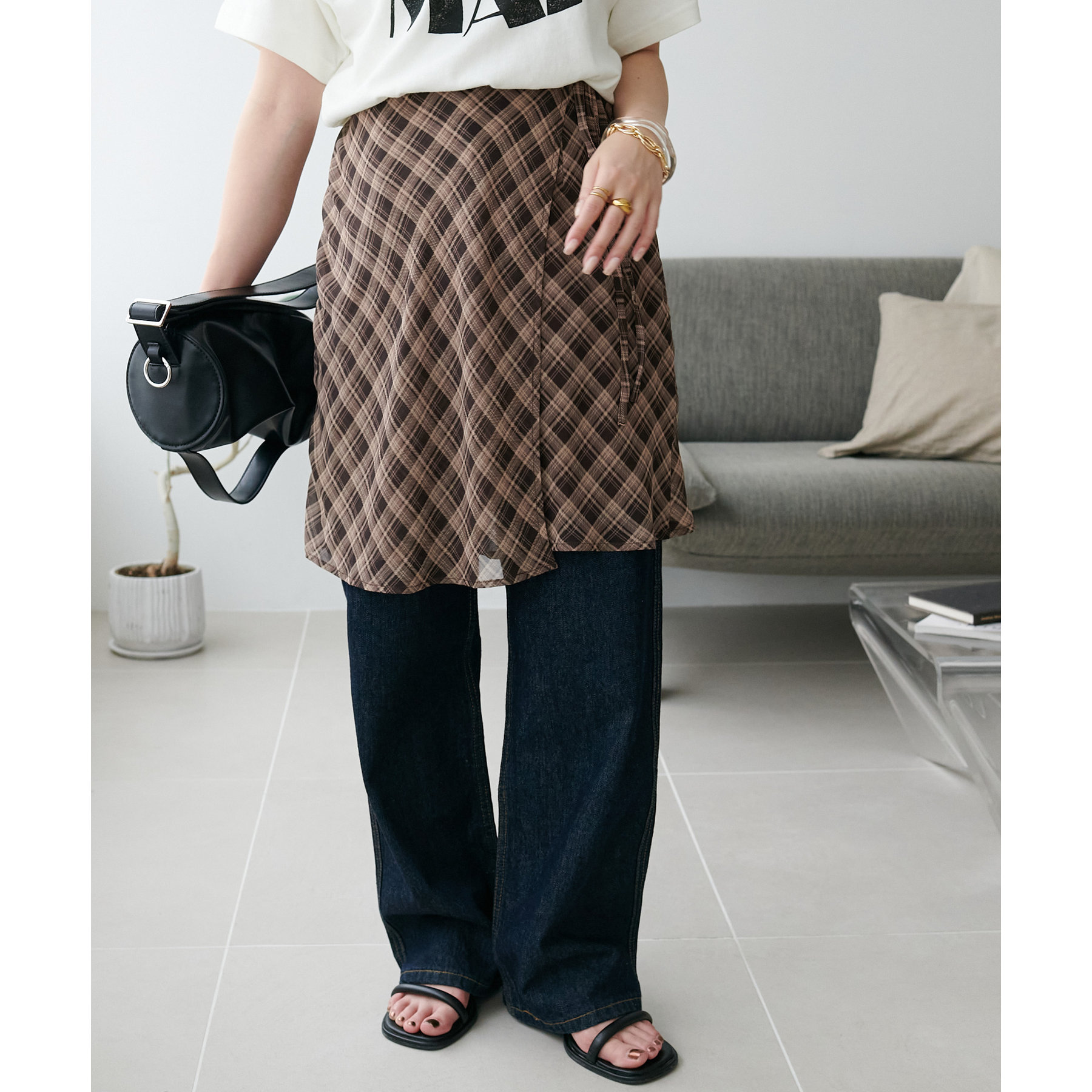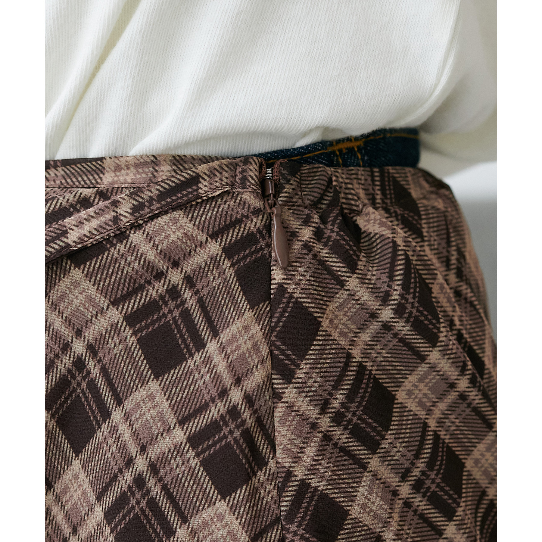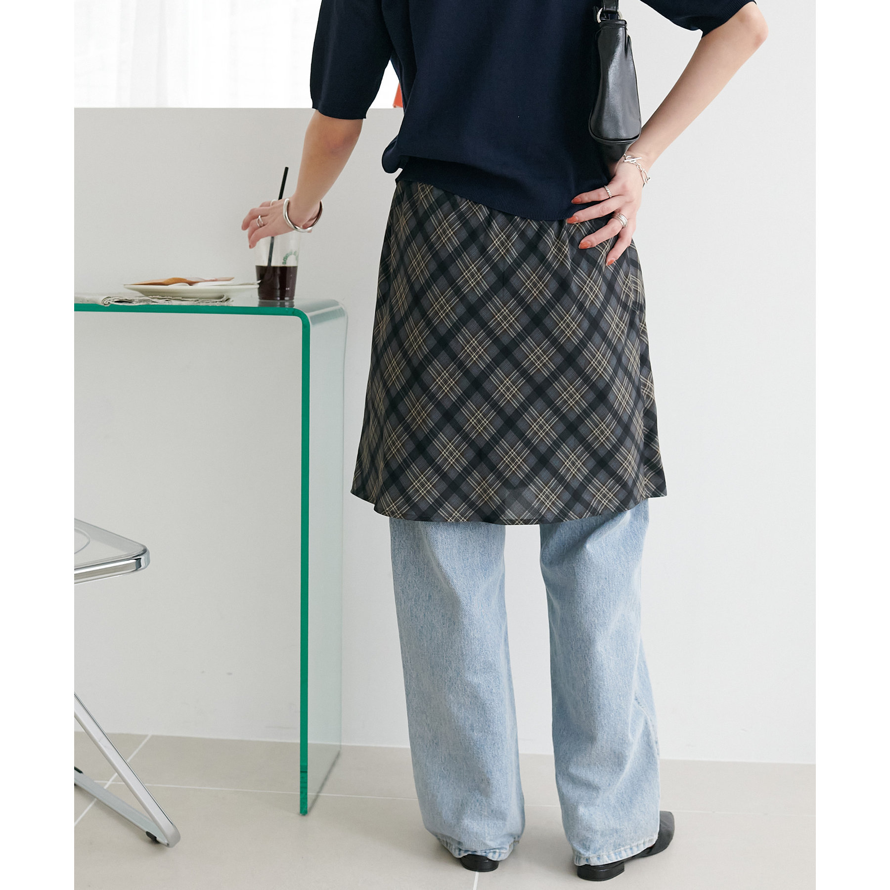 旬のレイヤードスタイルが叶う、チェックラップスカート