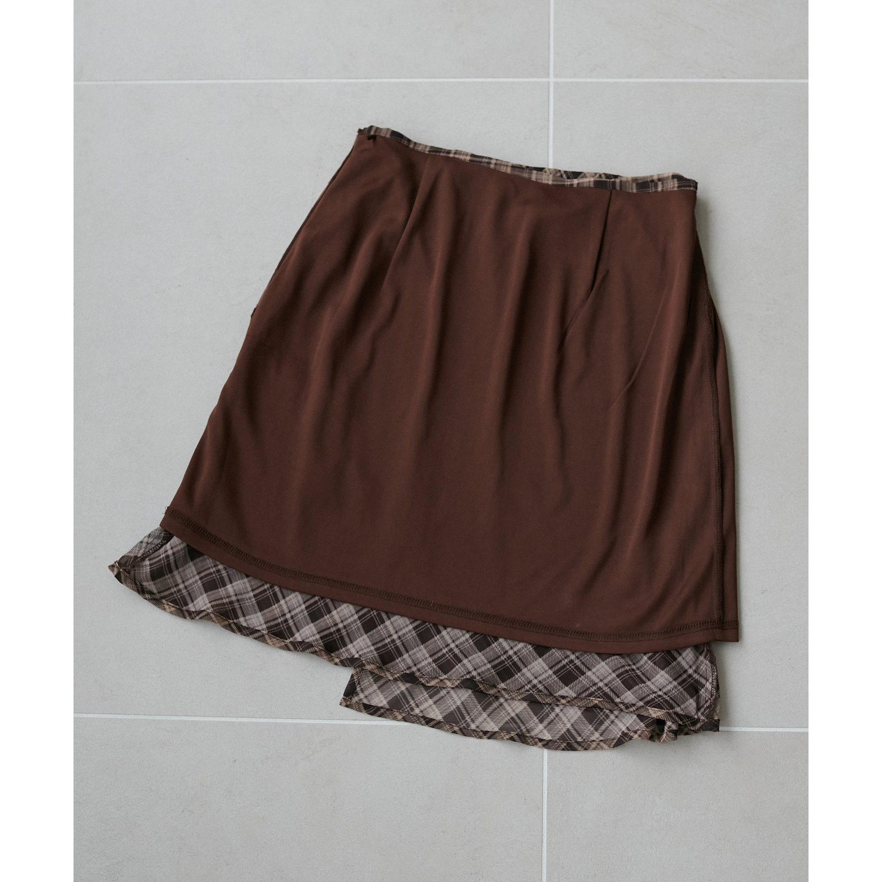 チェックレイヤード風ラップスカート