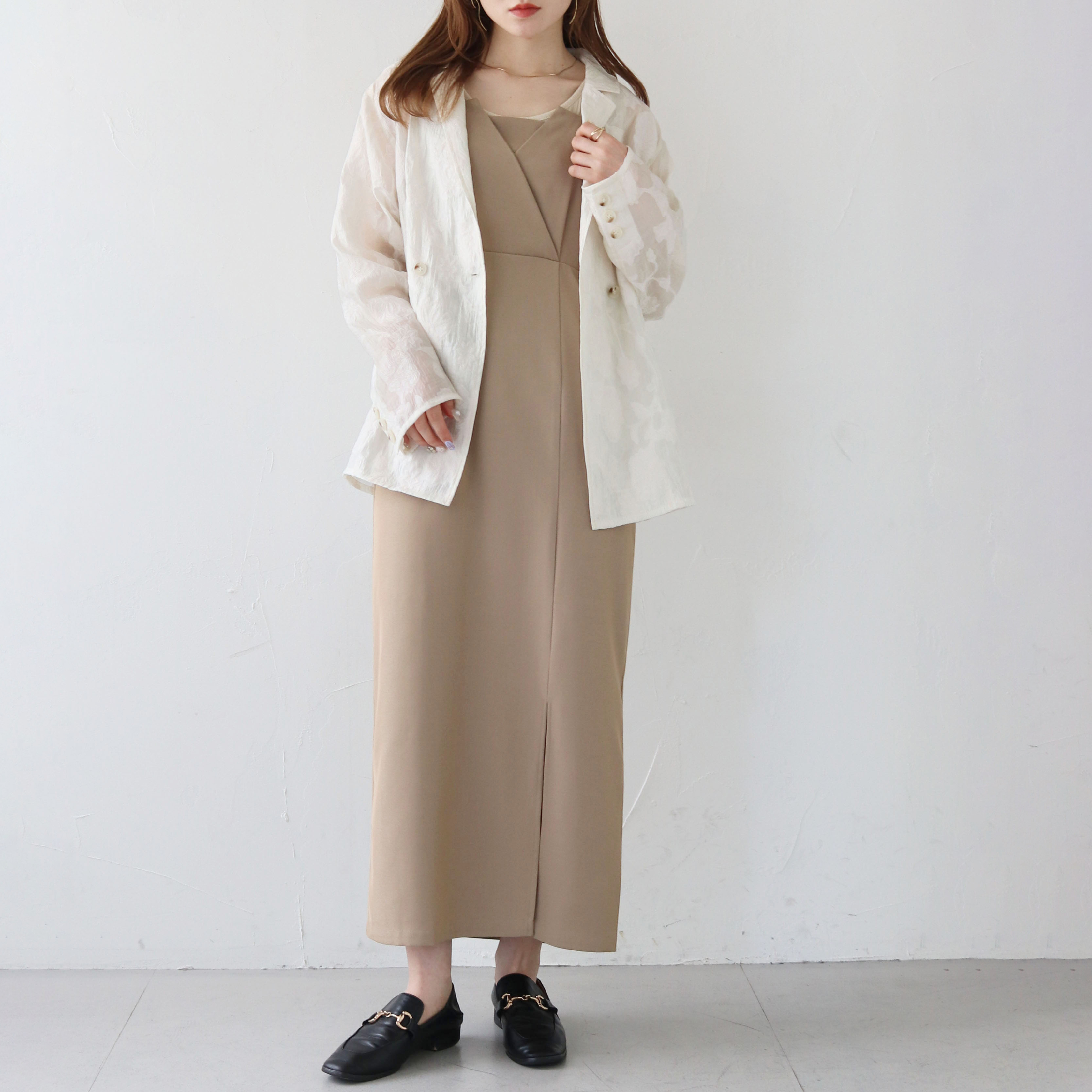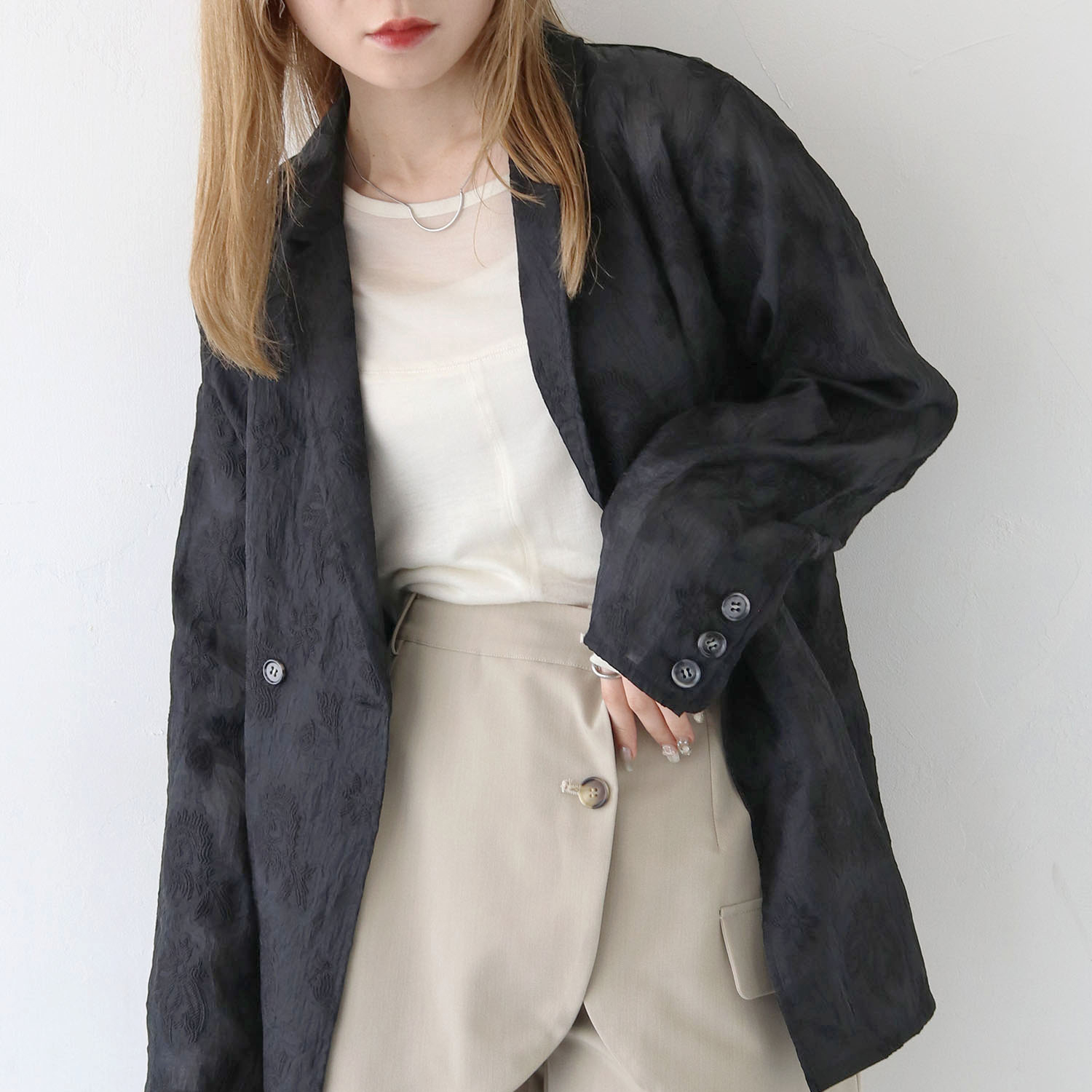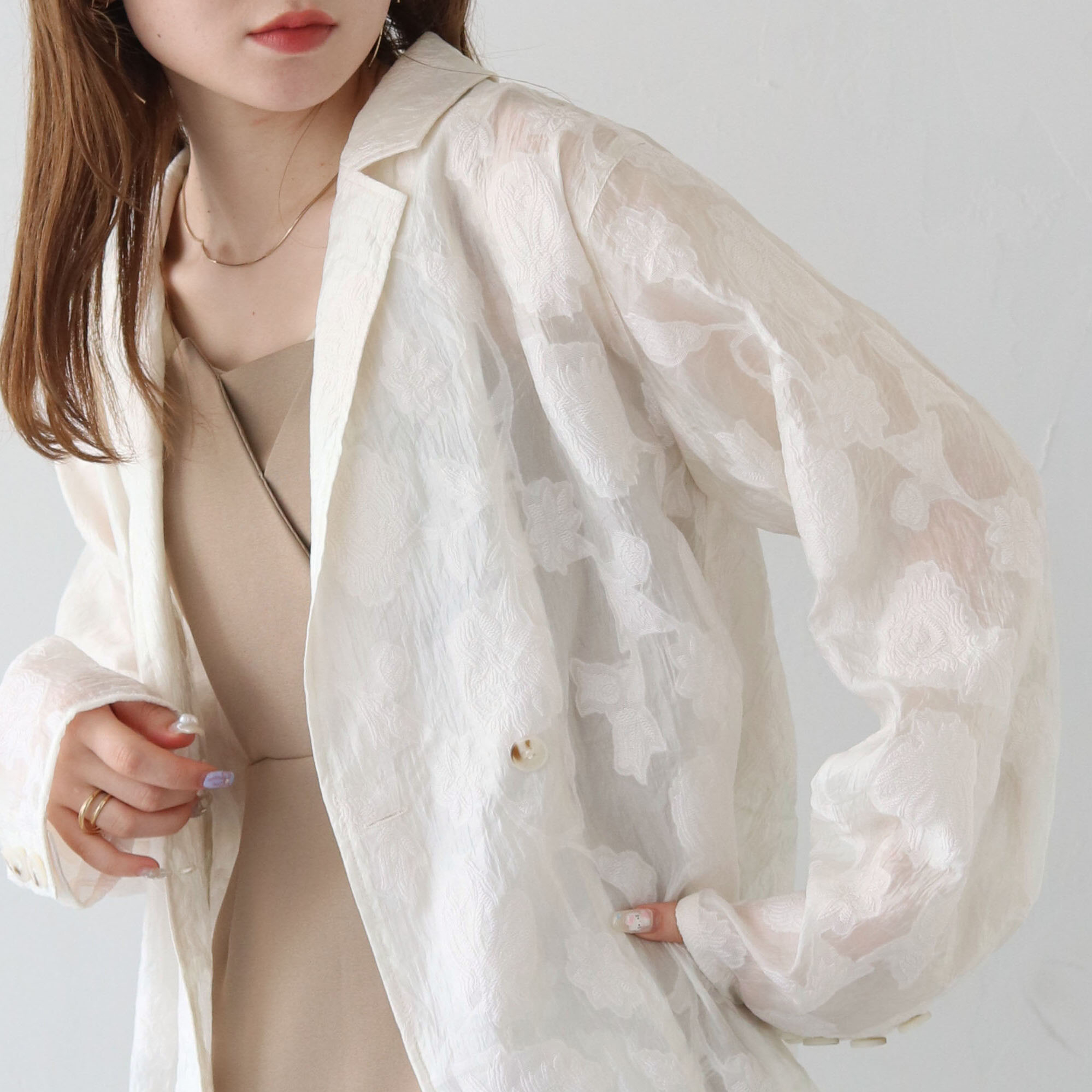 シアー花柄ジャガードテーラードジャケット(948-12609)