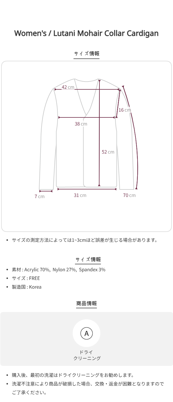 HEIGHT 170cm / BUST 81cm / WAIST 62cm / HIP 90cm